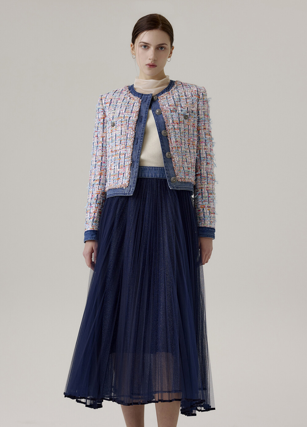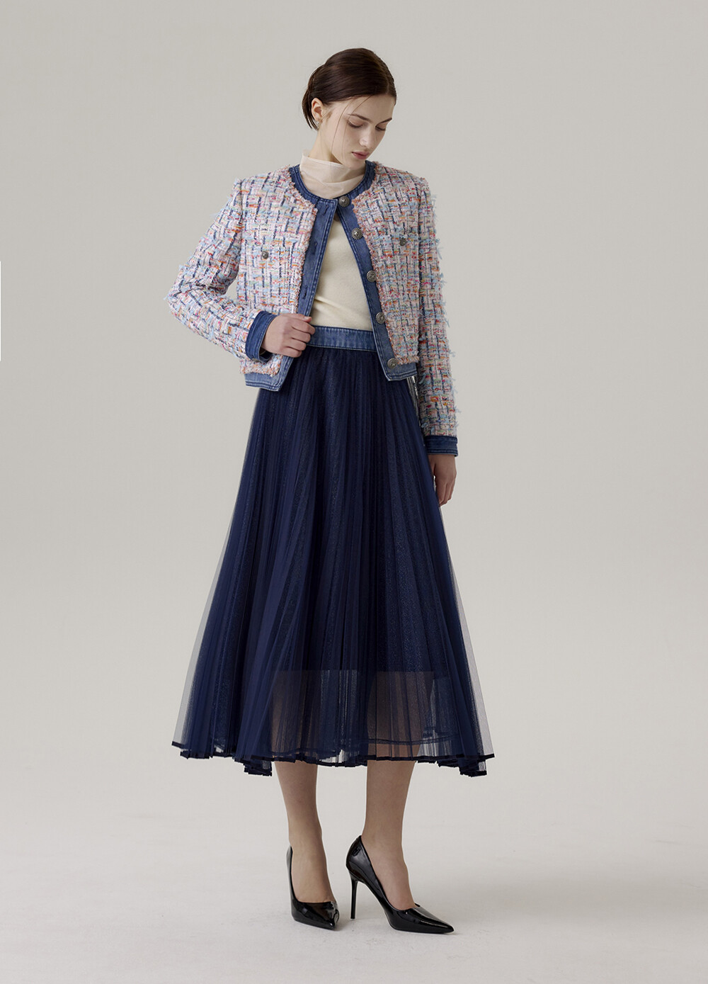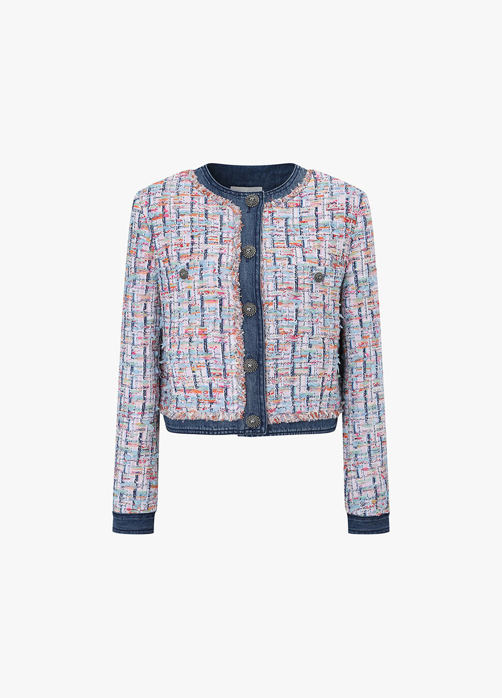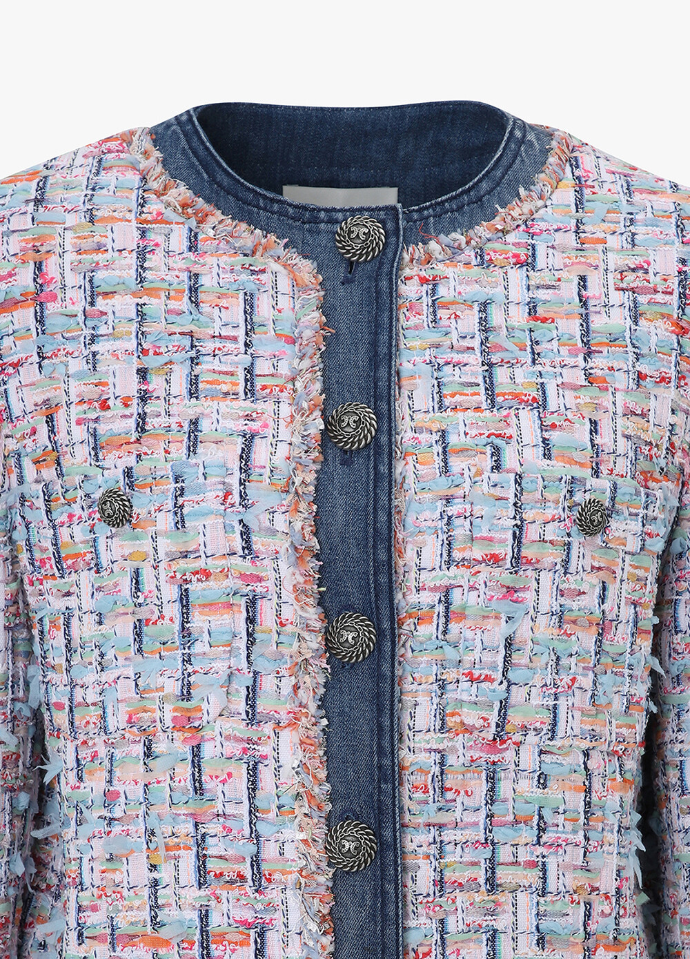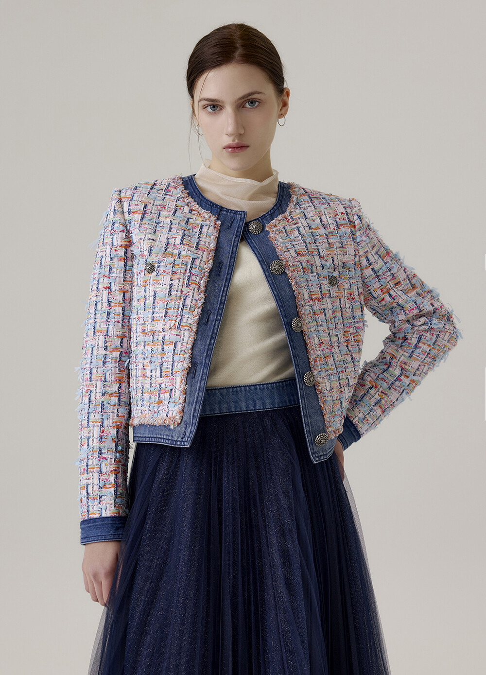 프론트, 소매·밑단에 데님 트리밍을 더해