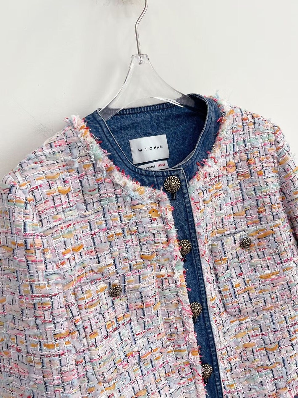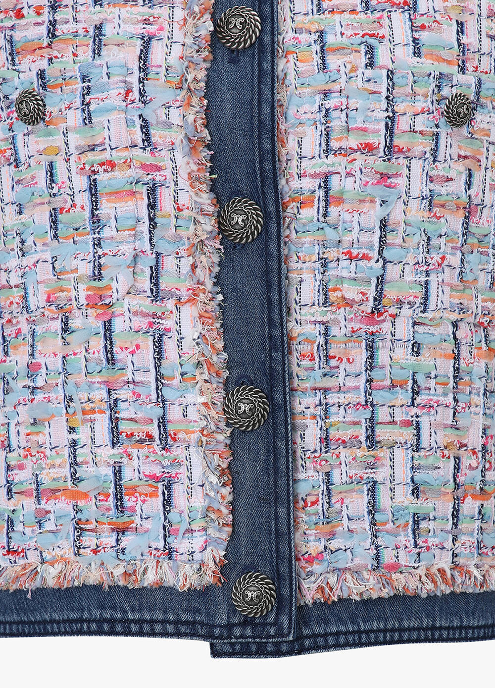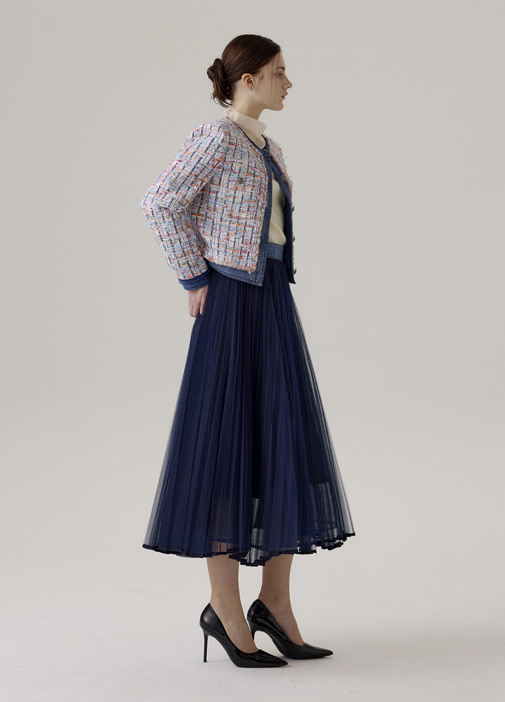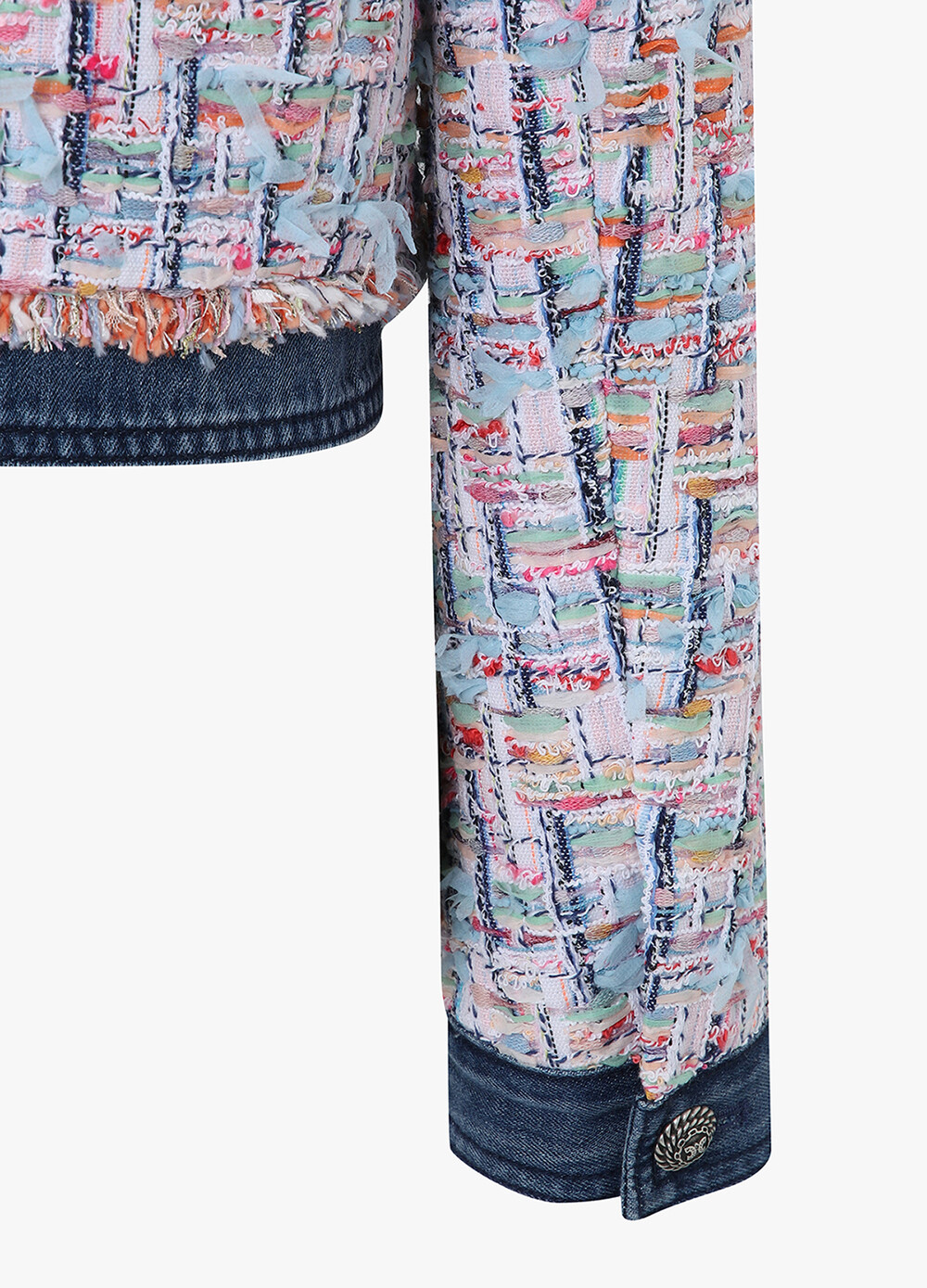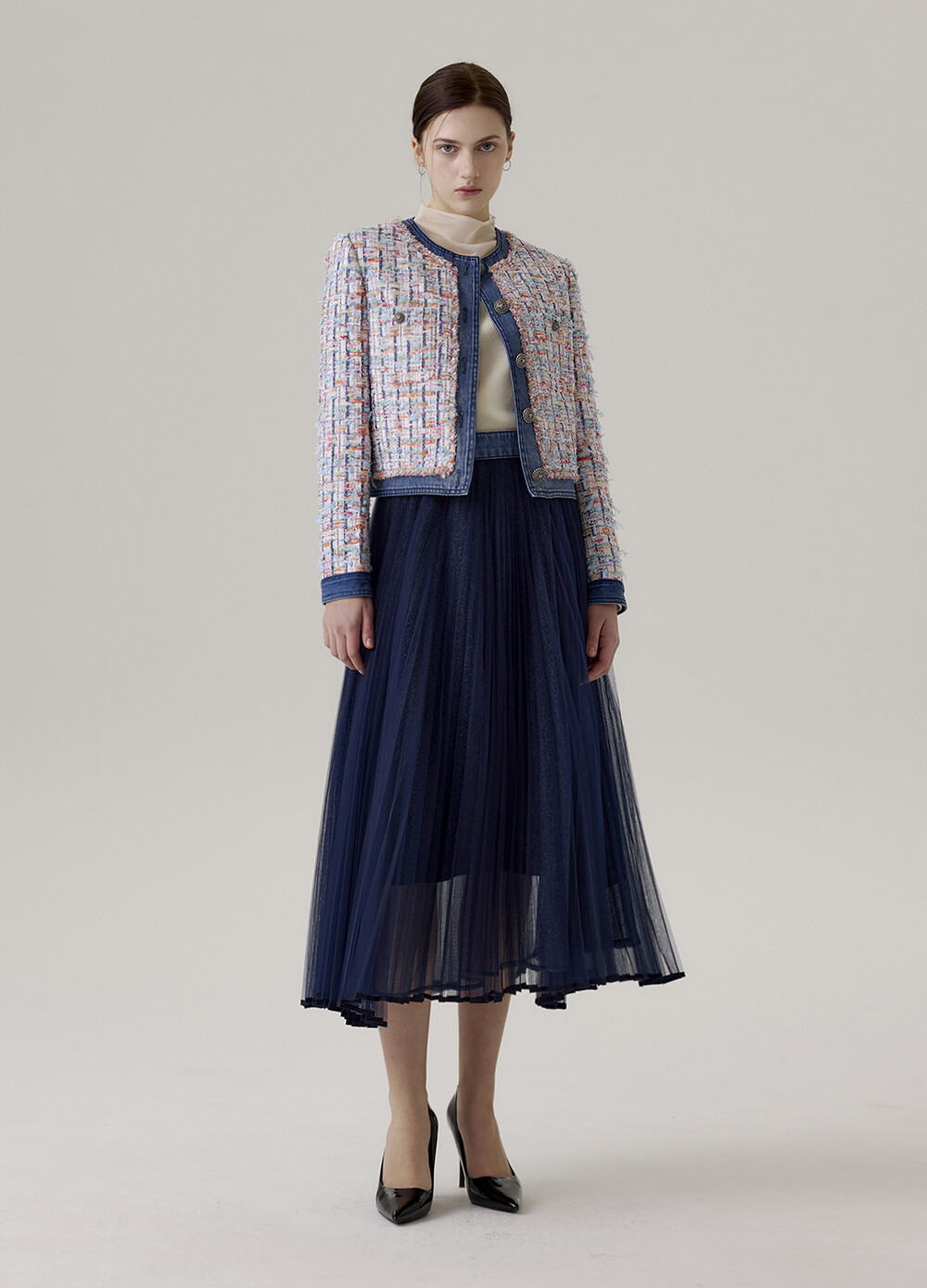 프론트, 소매·밑단에 데님 트리밍을 더해