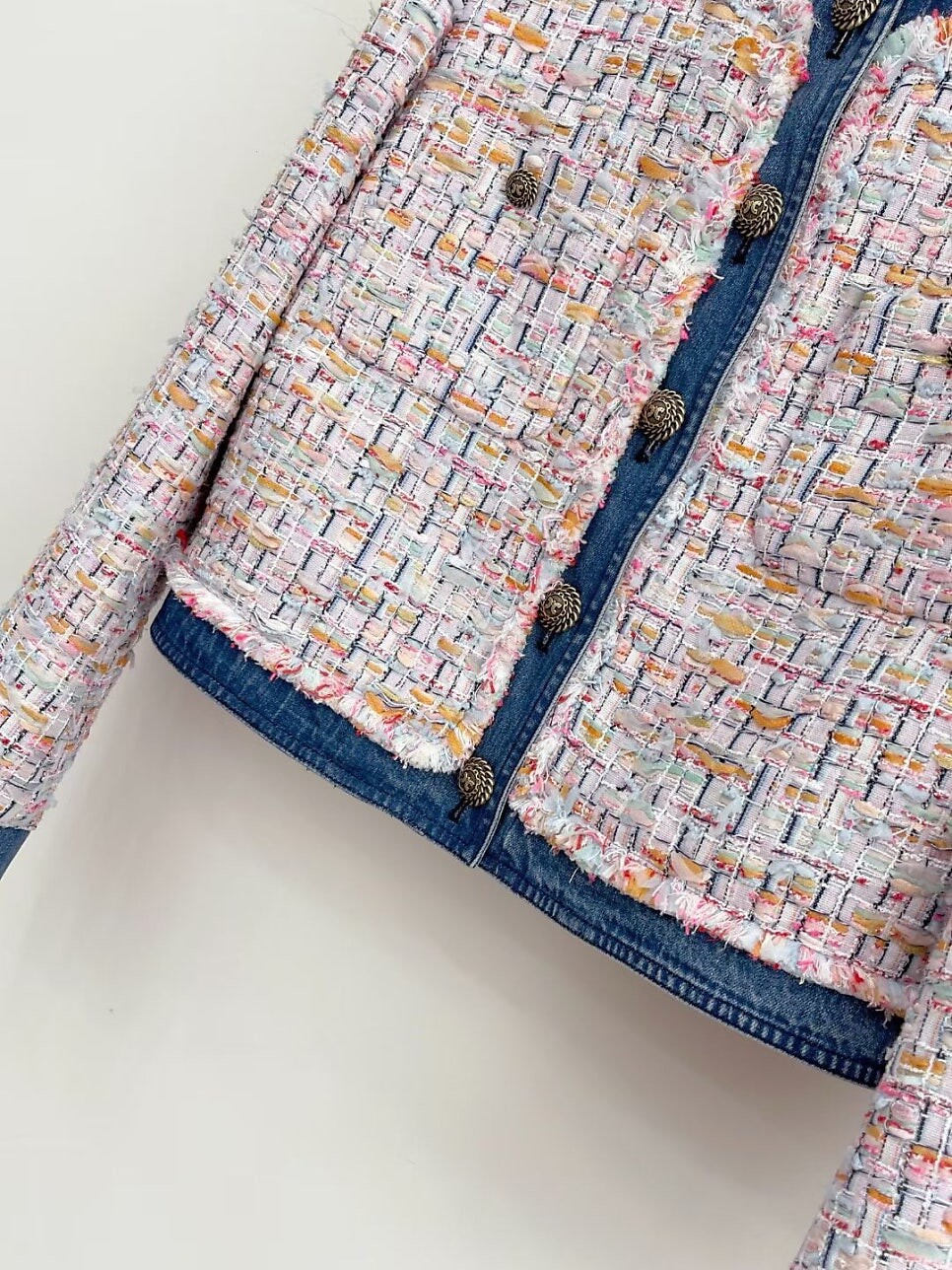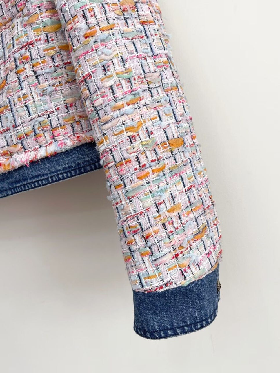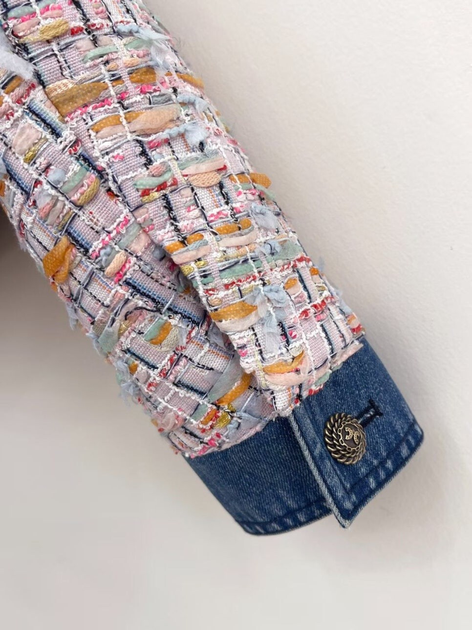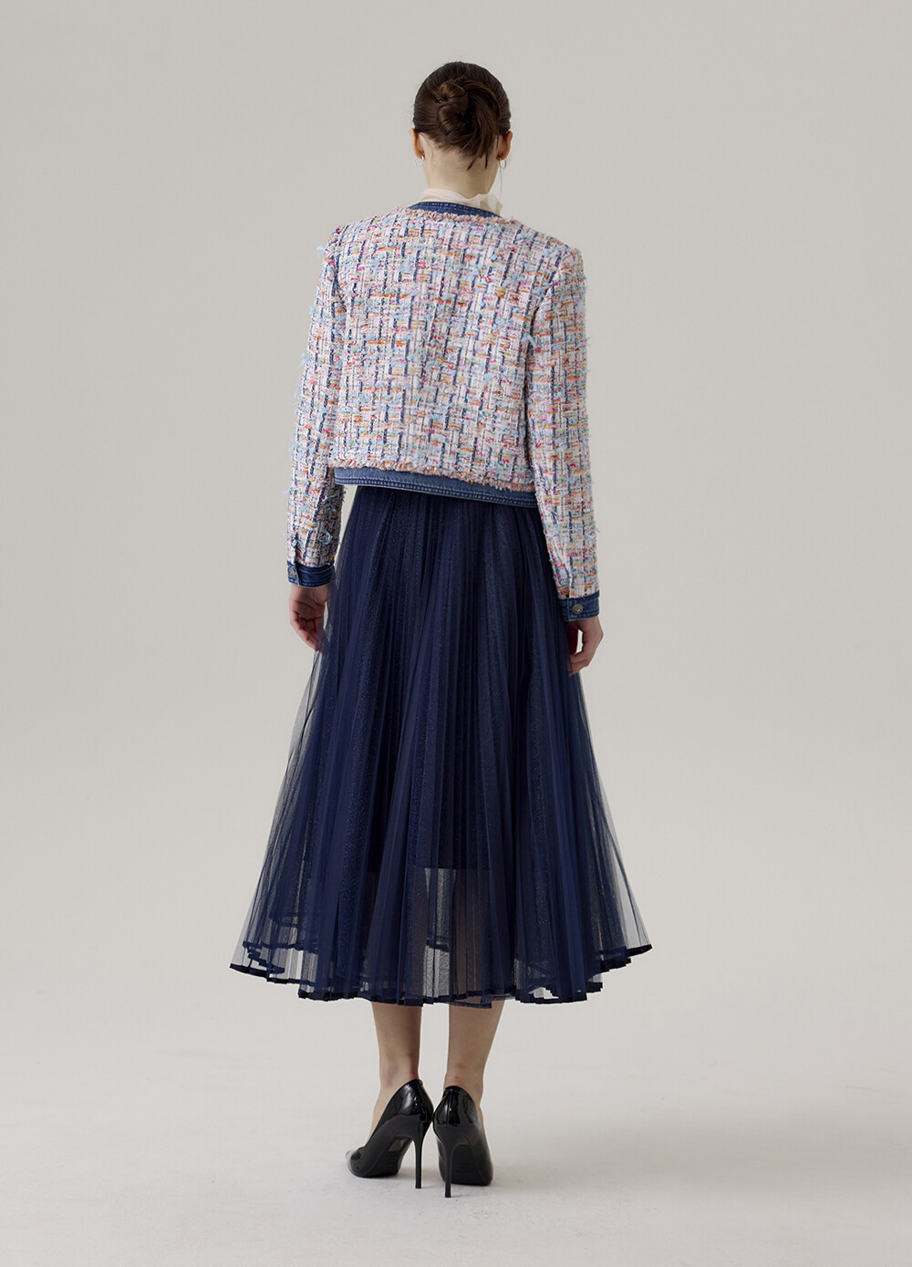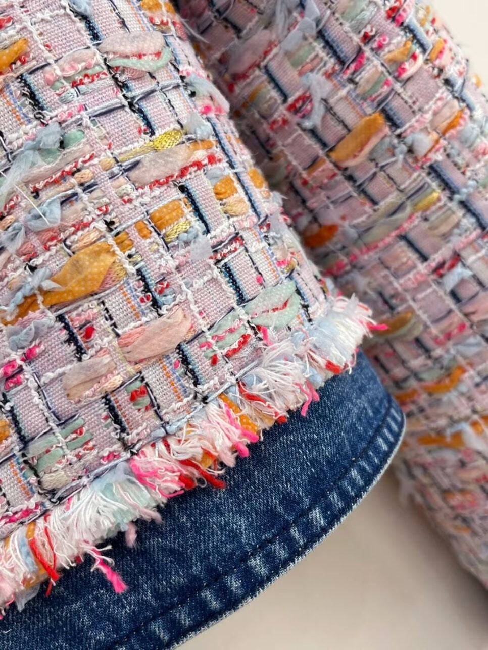 프론트, 소매·밑단에 데님 트리밍을 더해