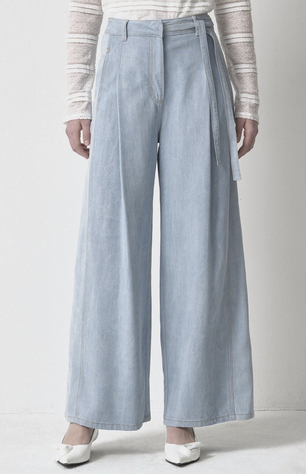 MINE. Belted Pin Tuck Wide Pants