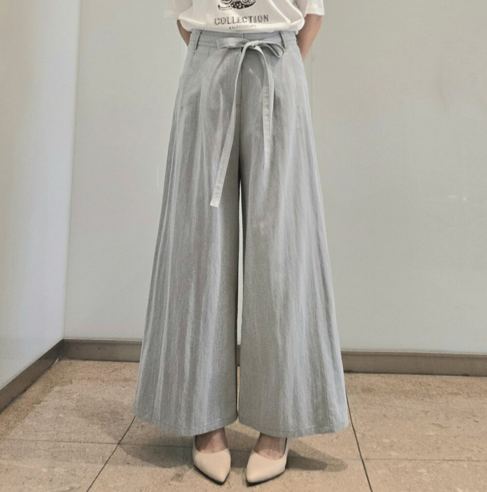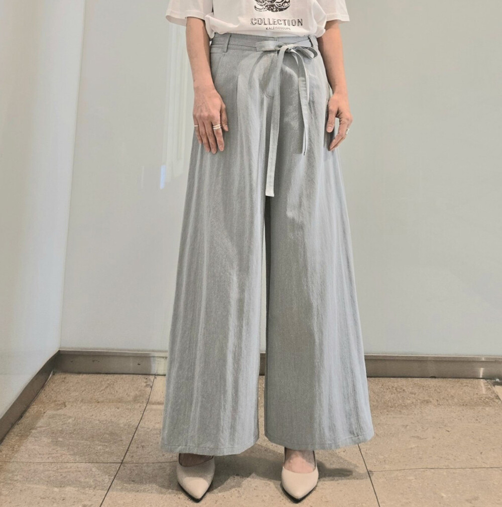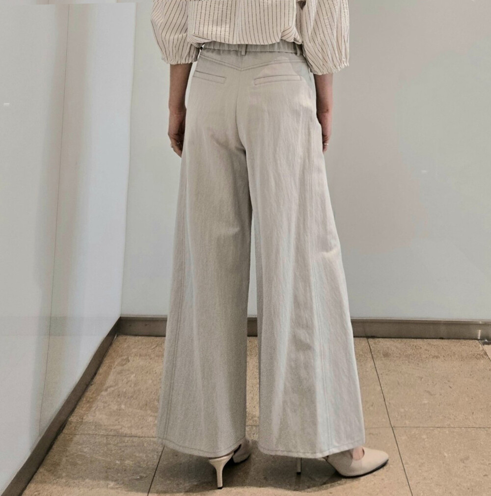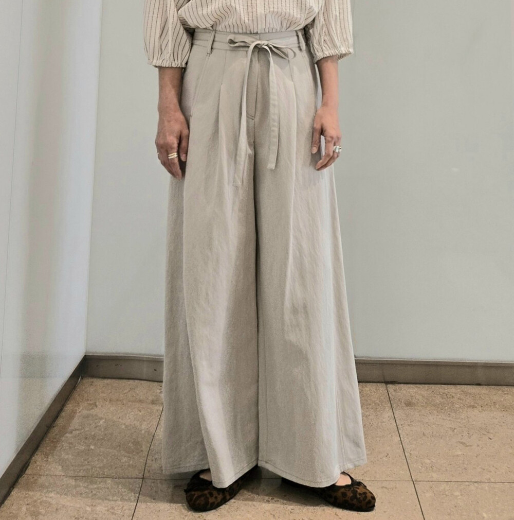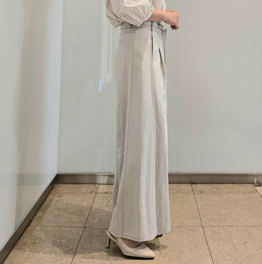 M. 벨티드 핀턱 와이드 팬츠