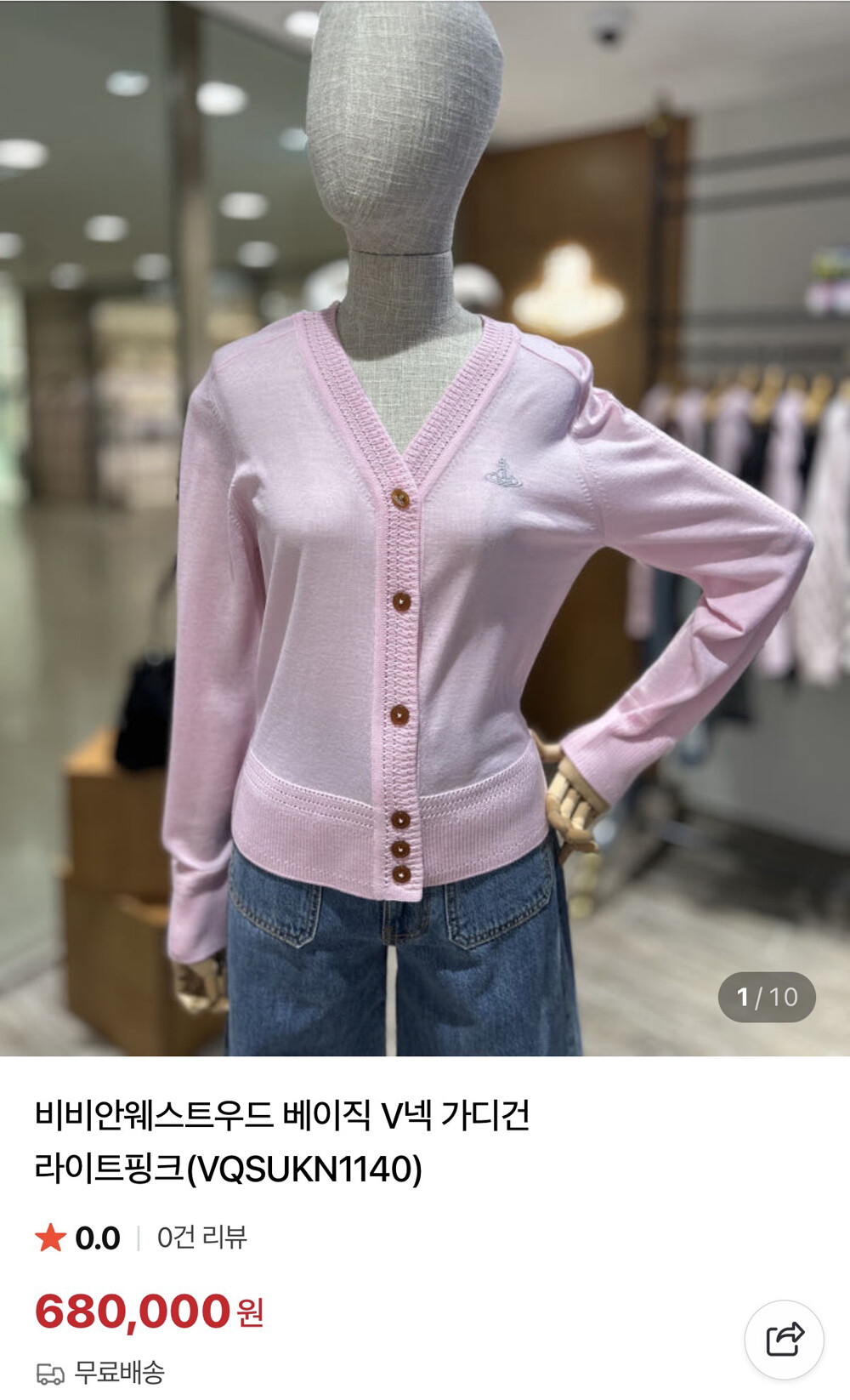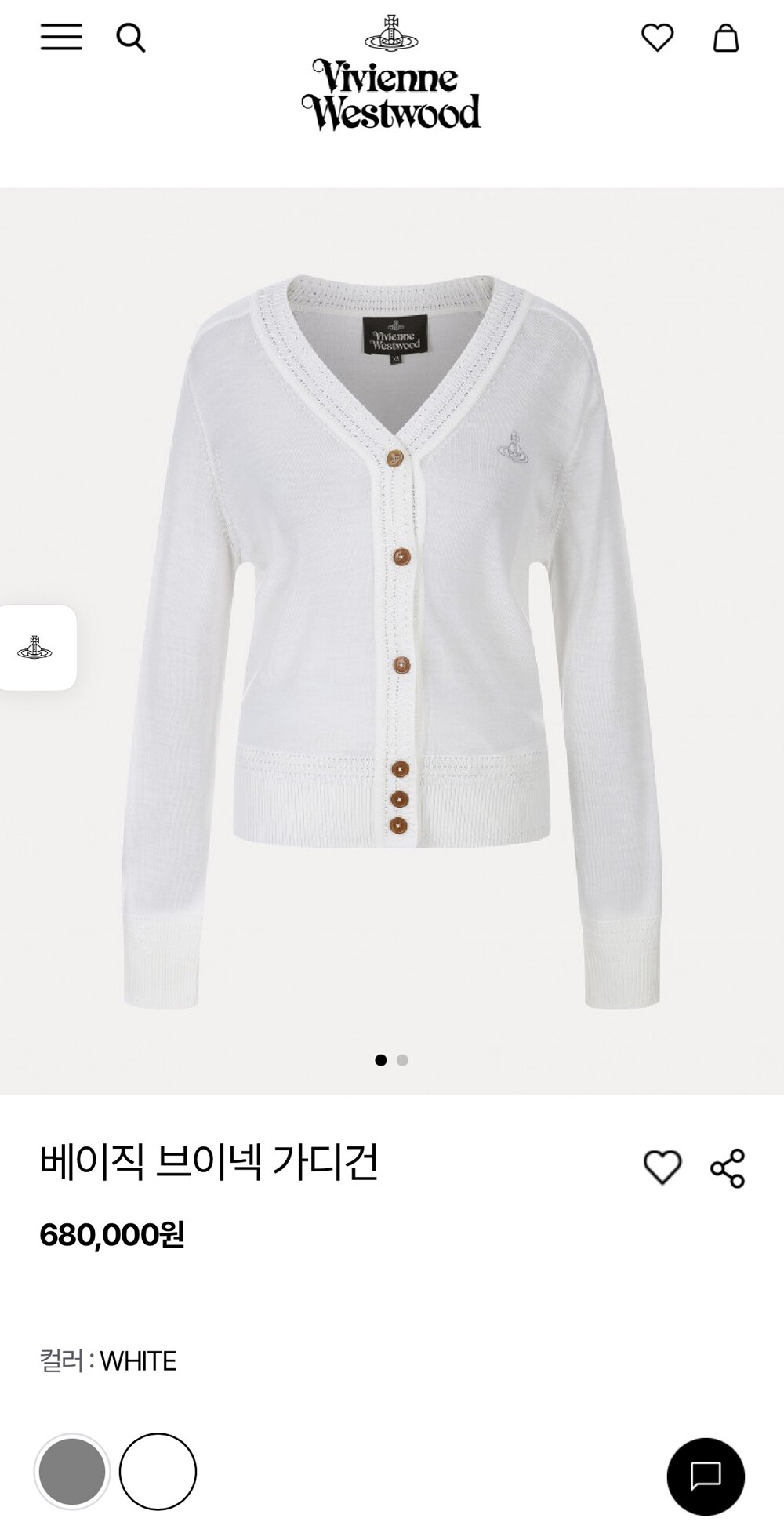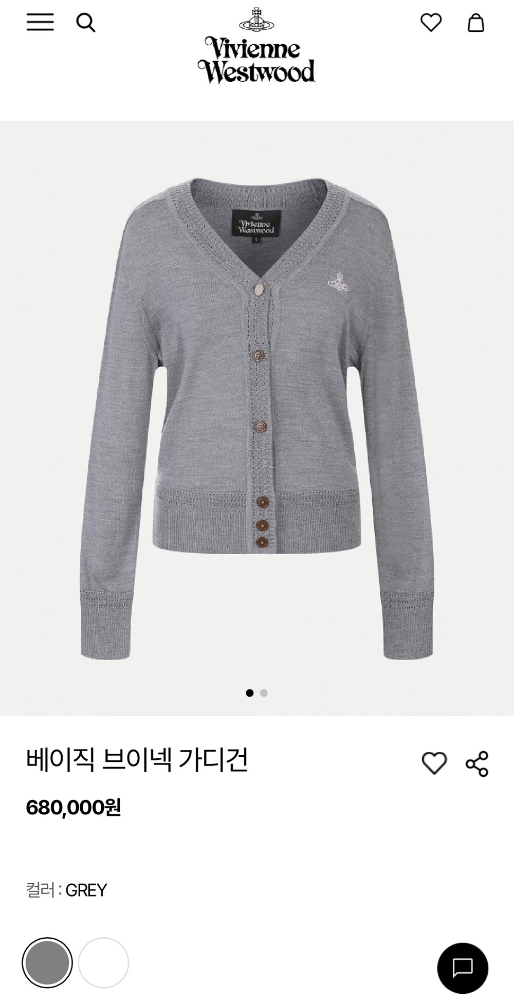 비비안웨스트우드 베이직 브이넥 가디건