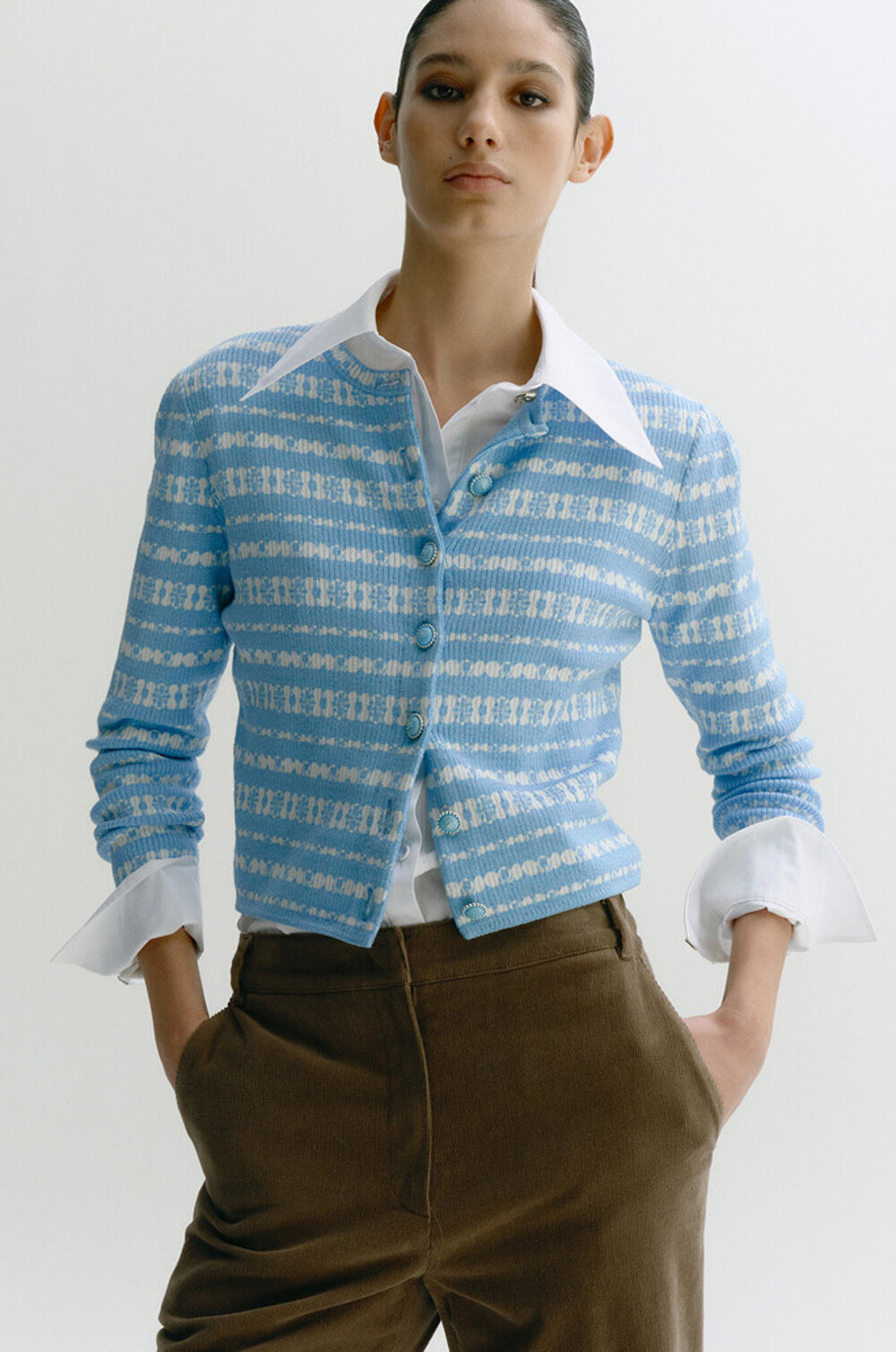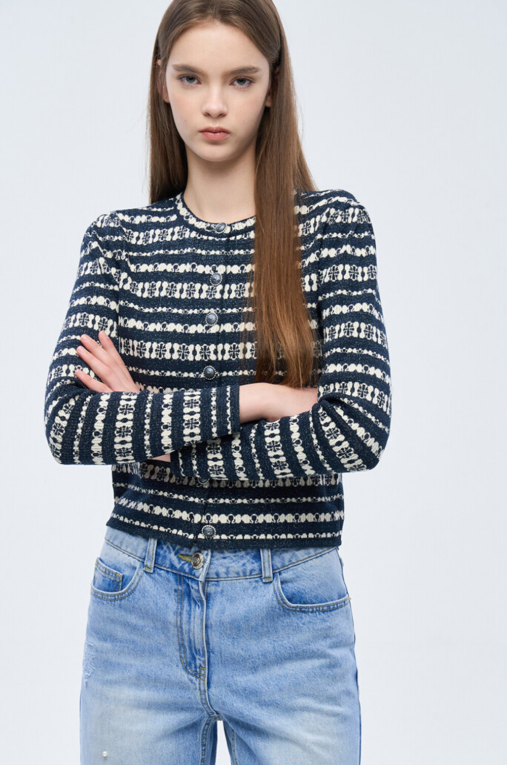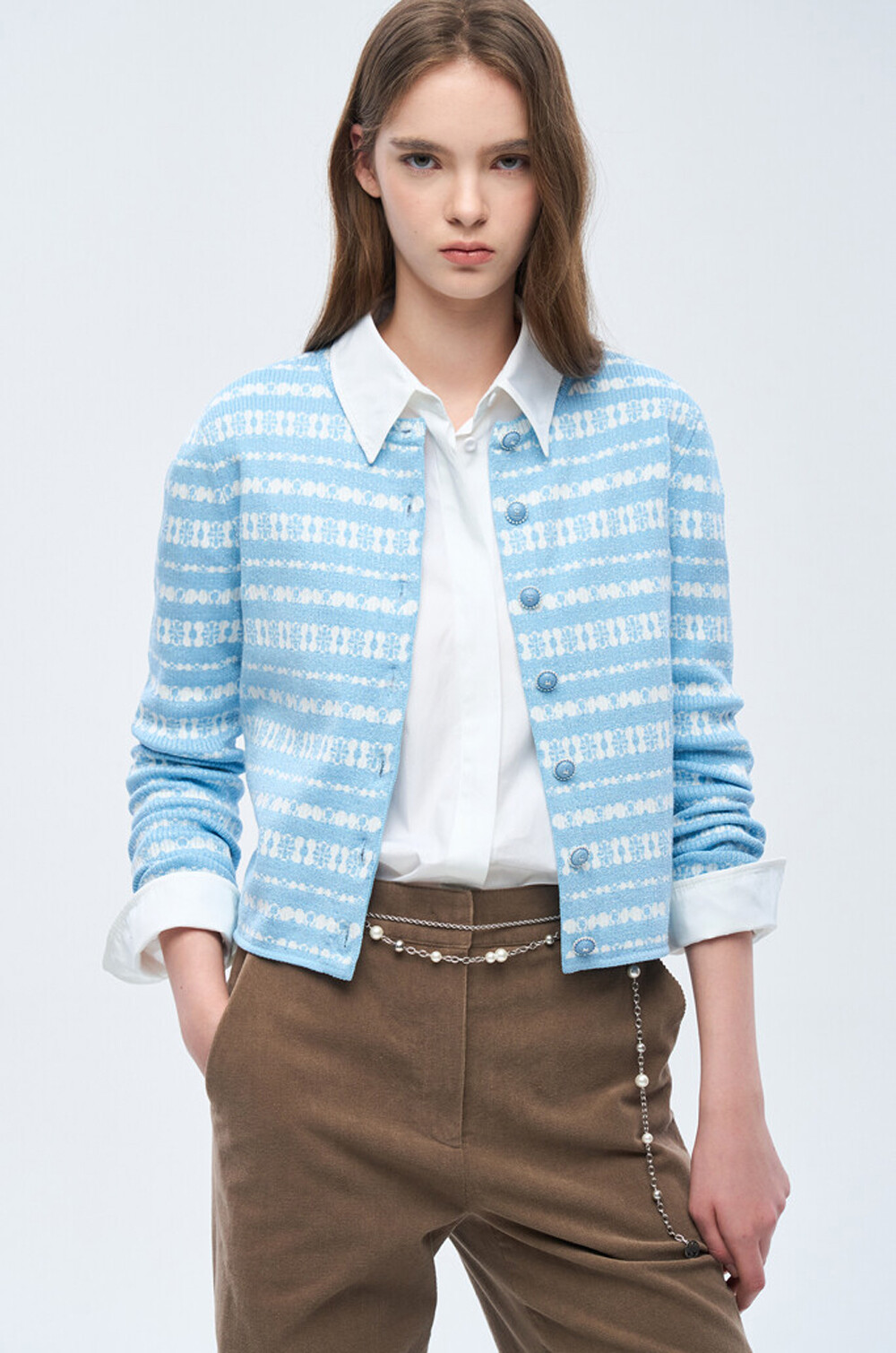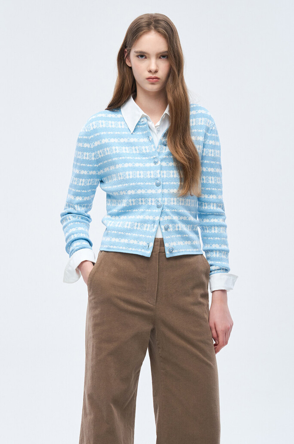 돋보이는 니트 가디건입니다.