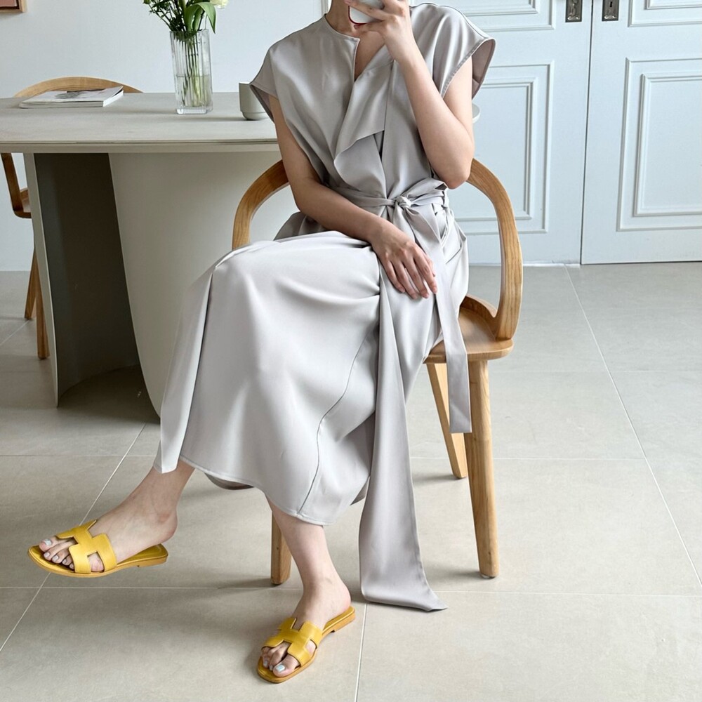 맨션의 패널 벨티드 드레스예요.