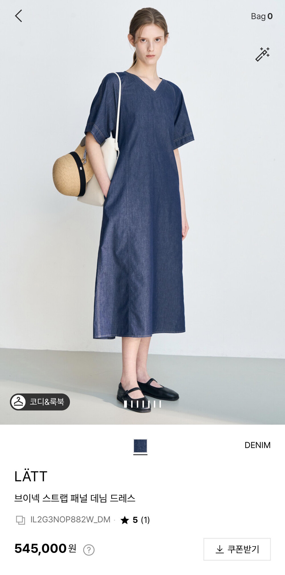 래트 브이넥 스트랩 패널 데님 드레스