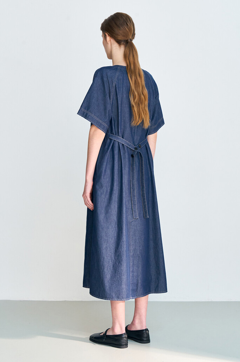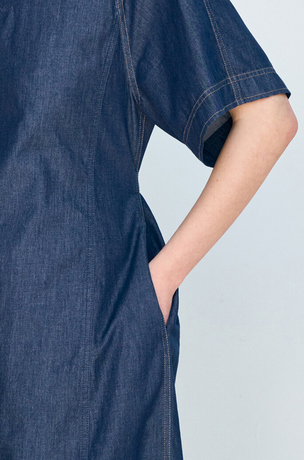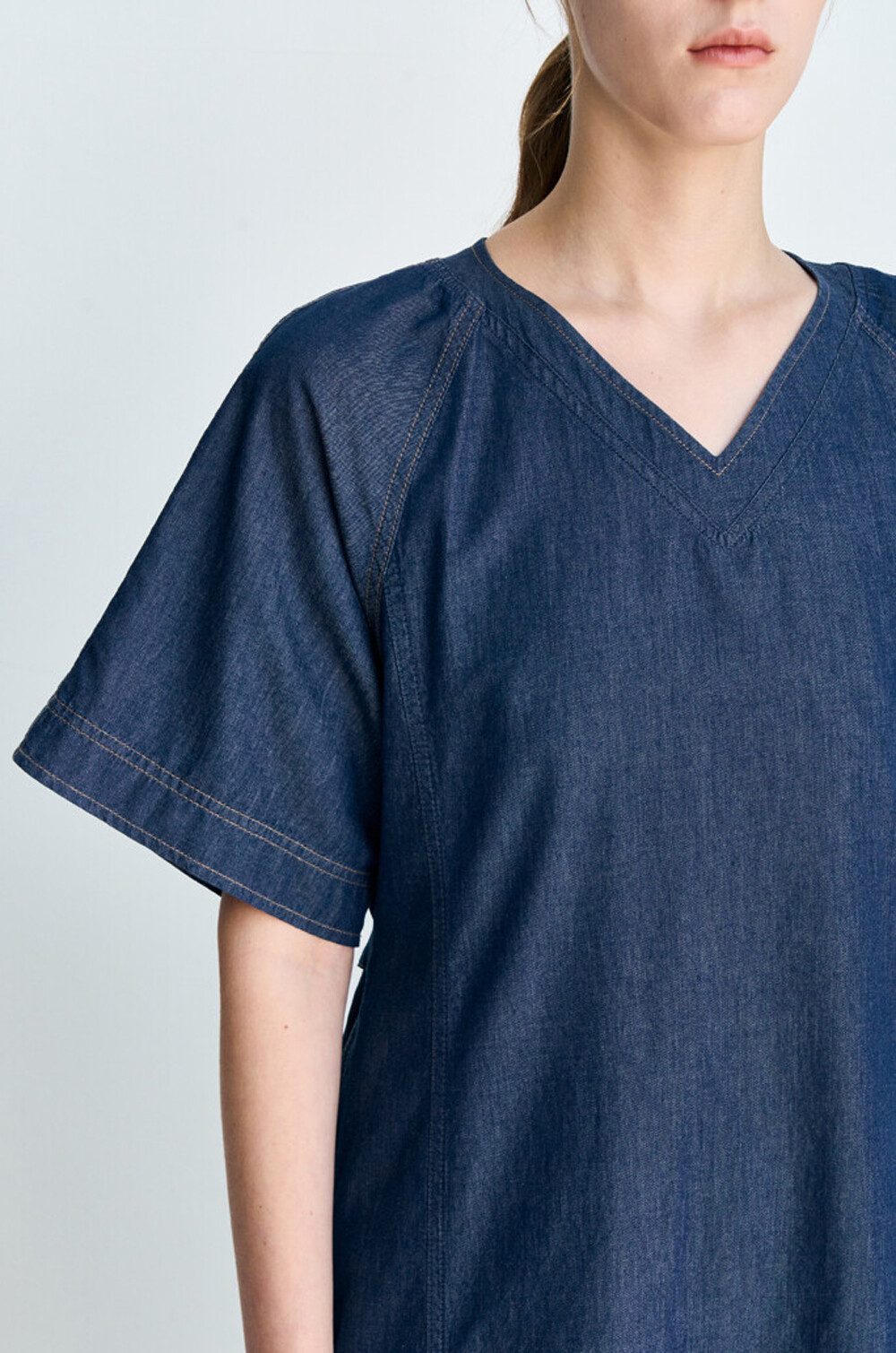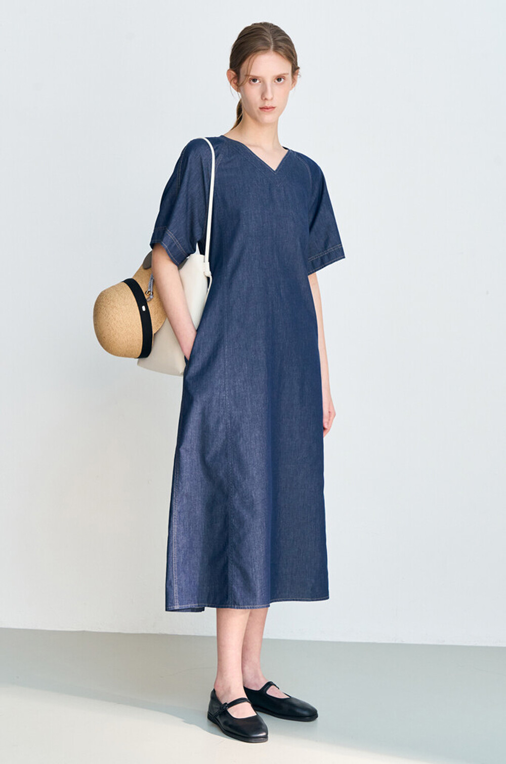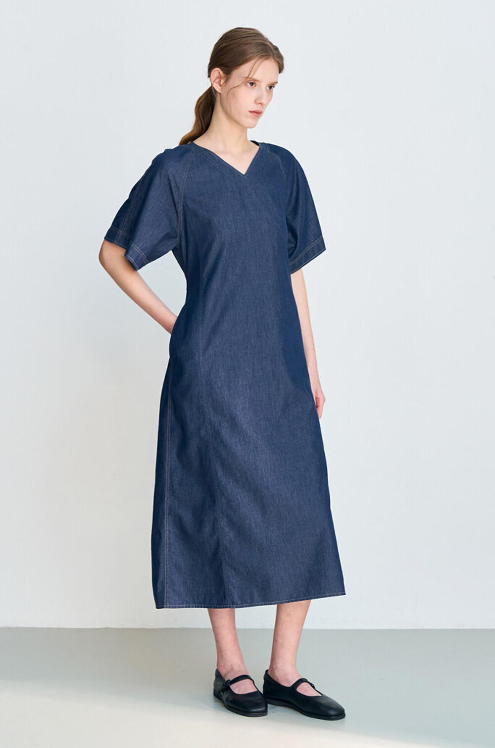 브이넥 데님 드레스입니다.