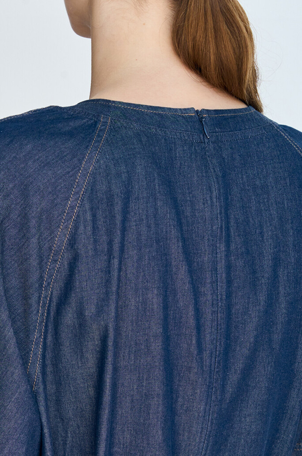 - 넥라인 뒷면에 후크와 지퍼 클로징
