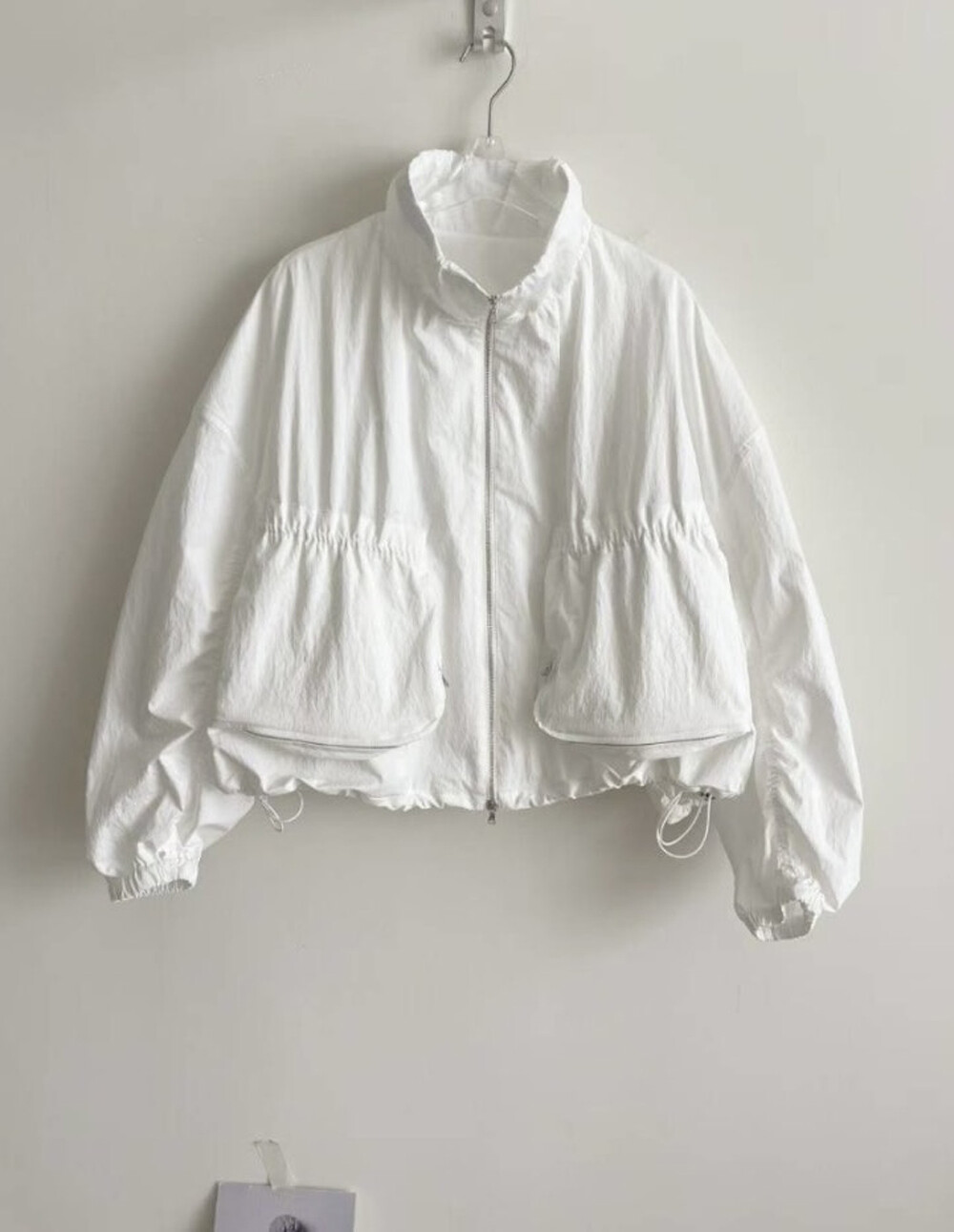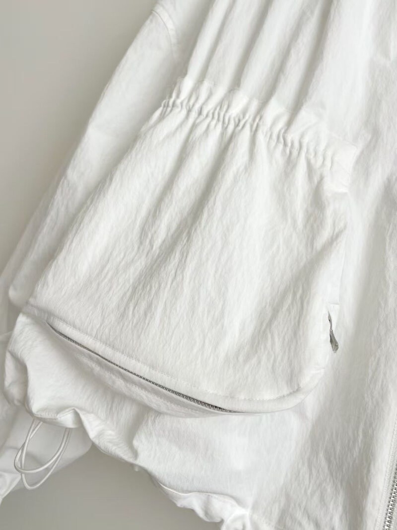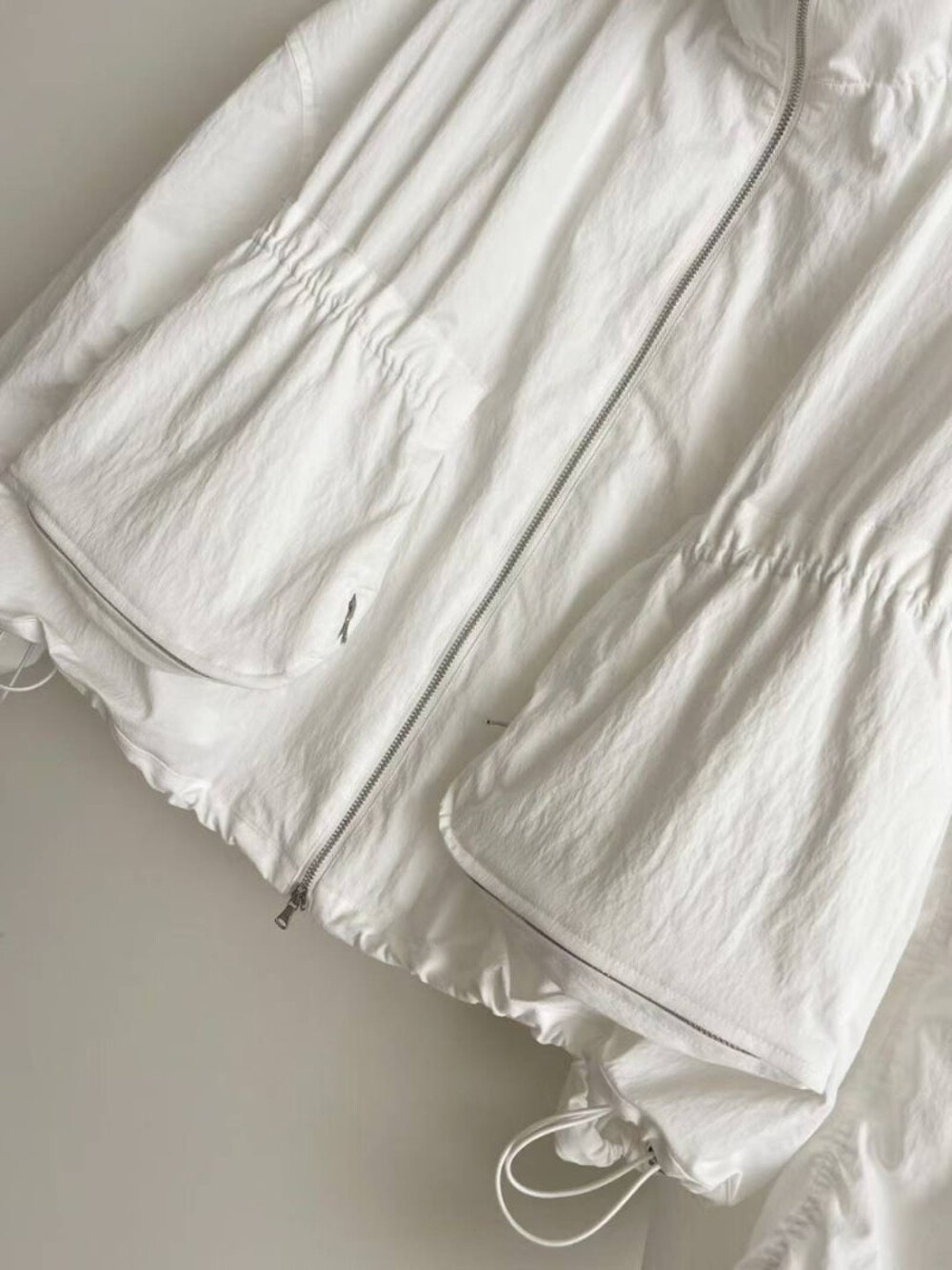 타임 실크 블렌드 크링클 드로우스트링 집업 점퍼