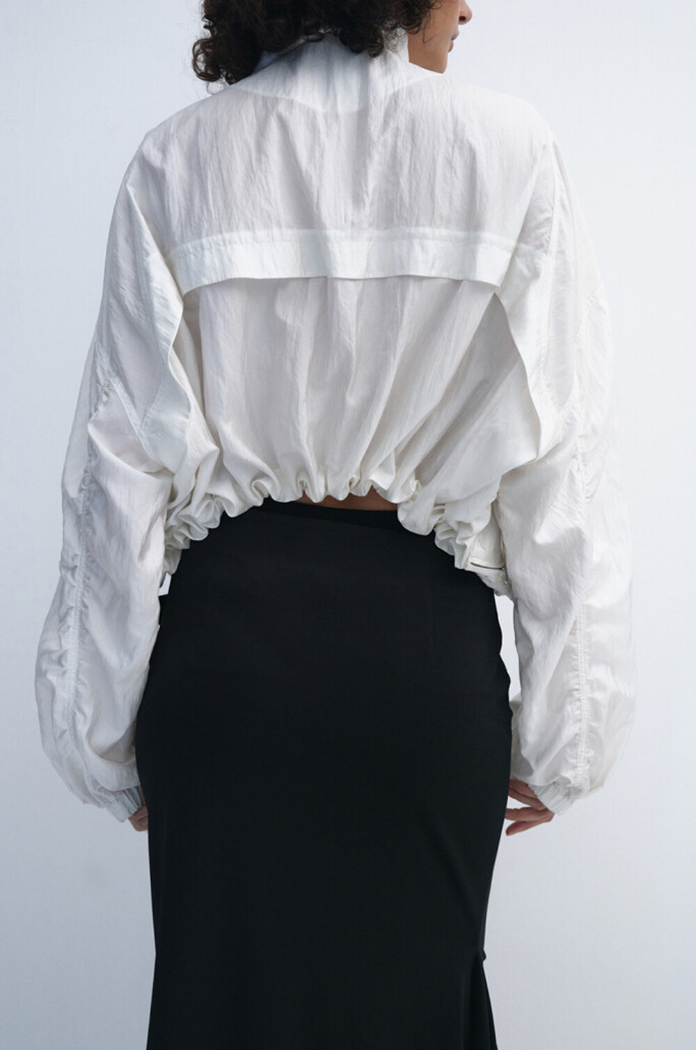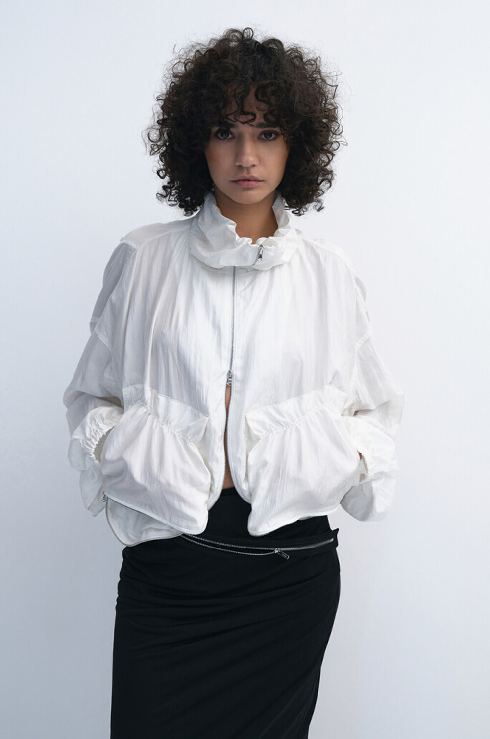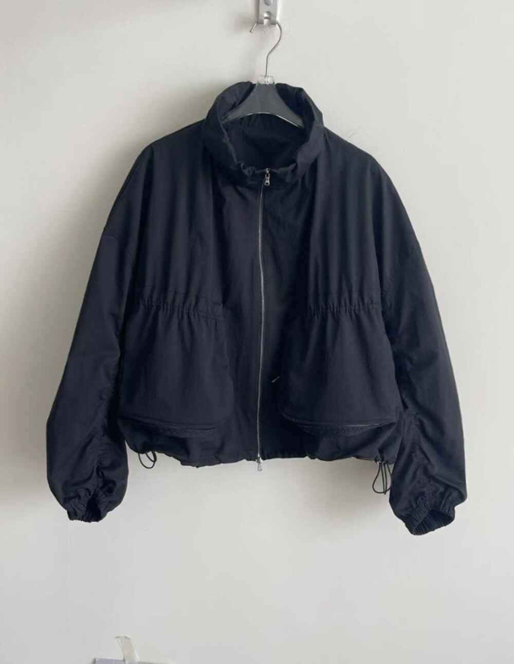 타임 실크 블렌드 크링클 드로우스트링 집업 점퍼