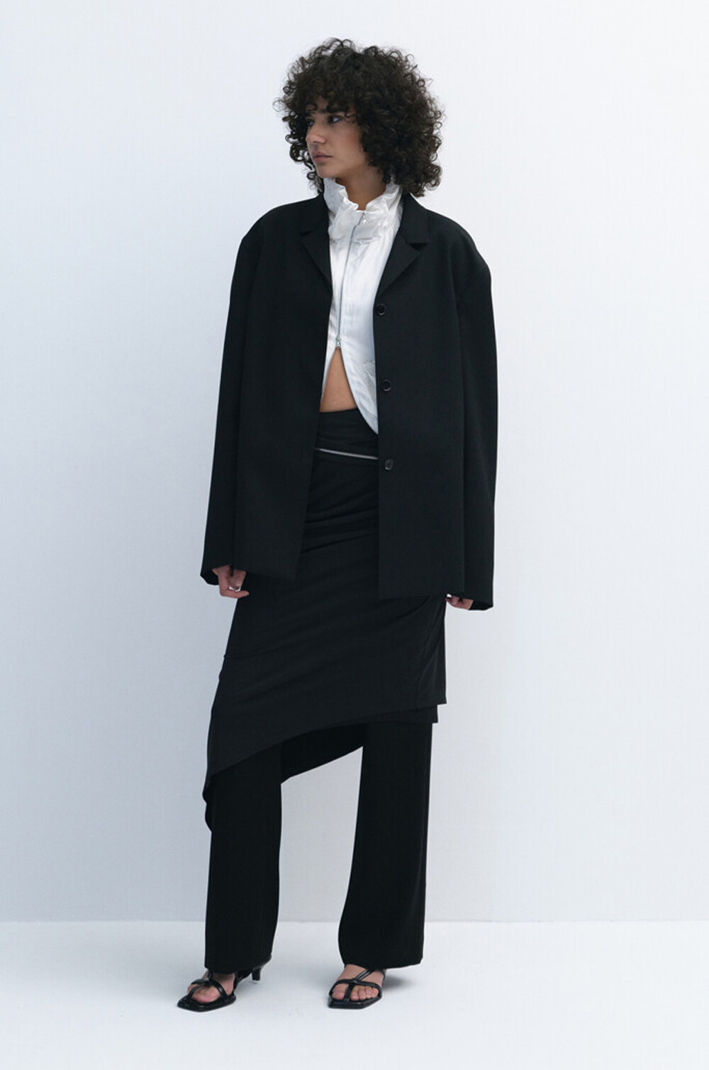 TIME. Silk Blend Crinkle Drawstring Zip Up Jumper