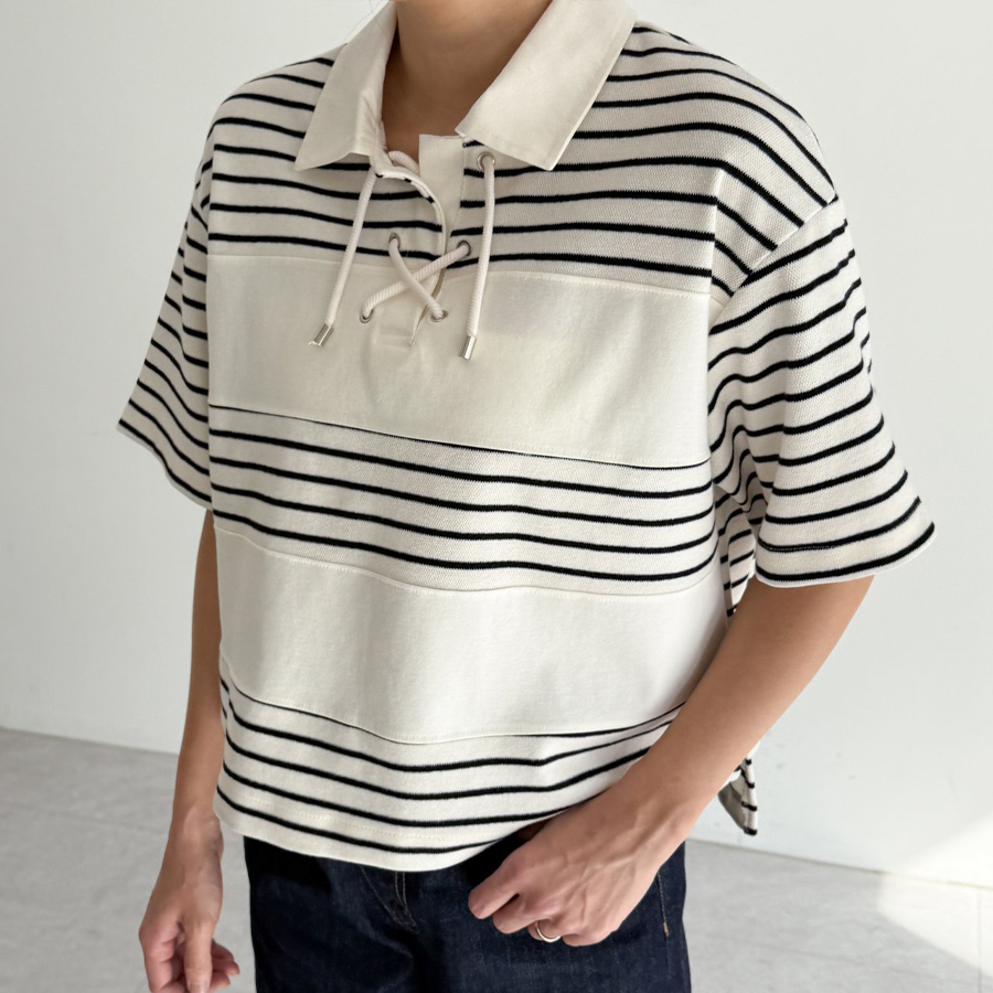 스트라이프 칼라 티셔츠