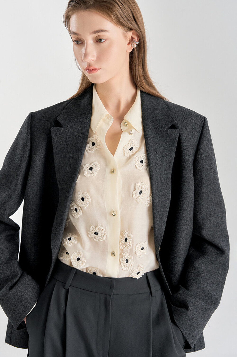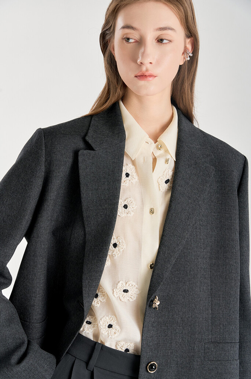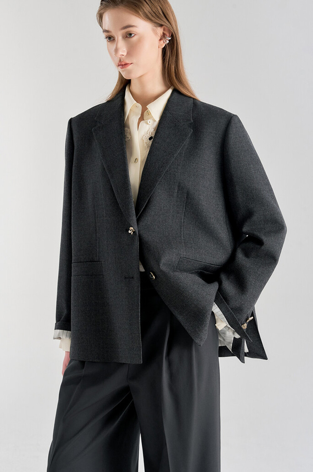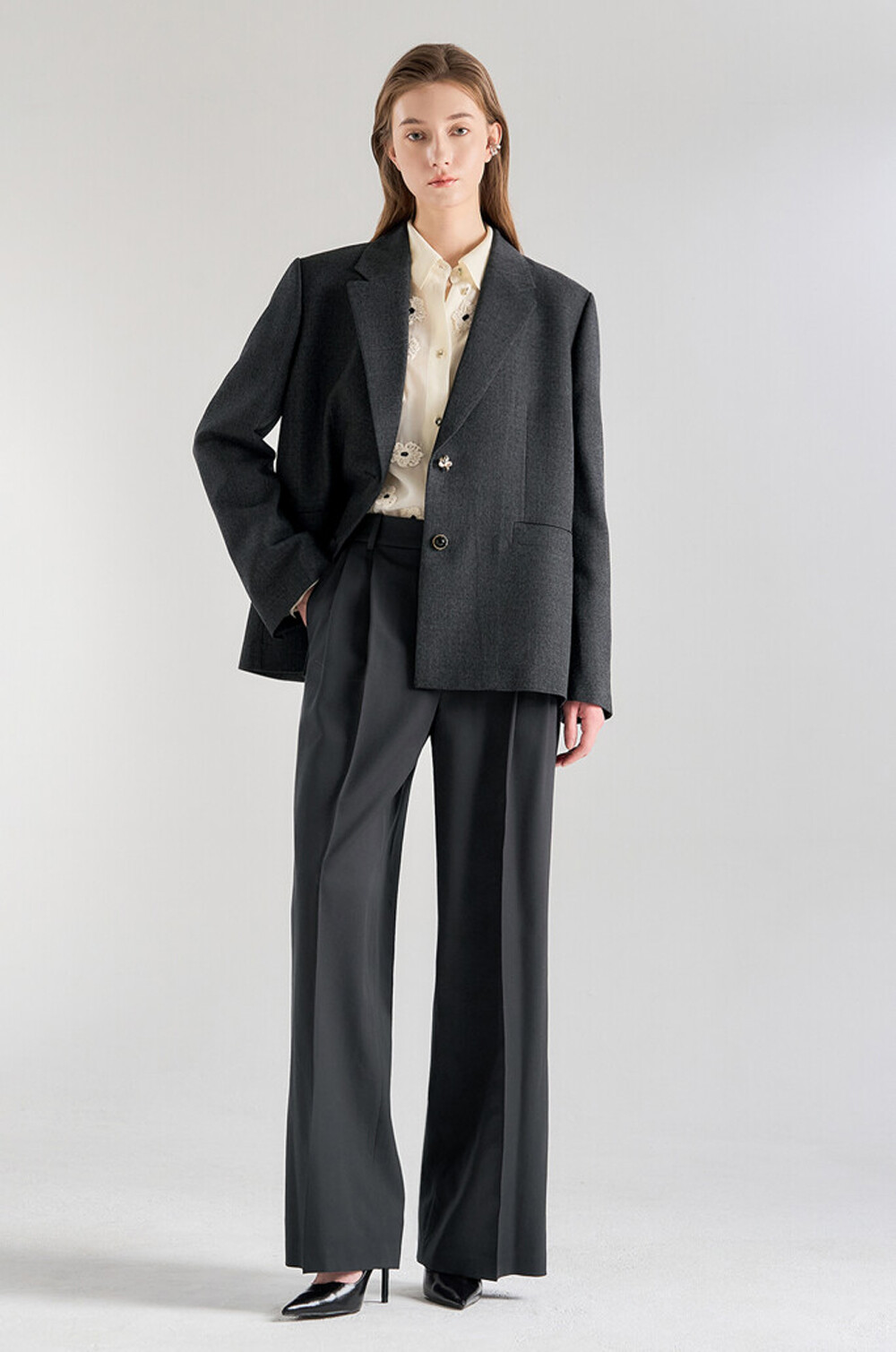 랑방컬렉션 울 블렌드 믹스 버튼 테일러드 자켓