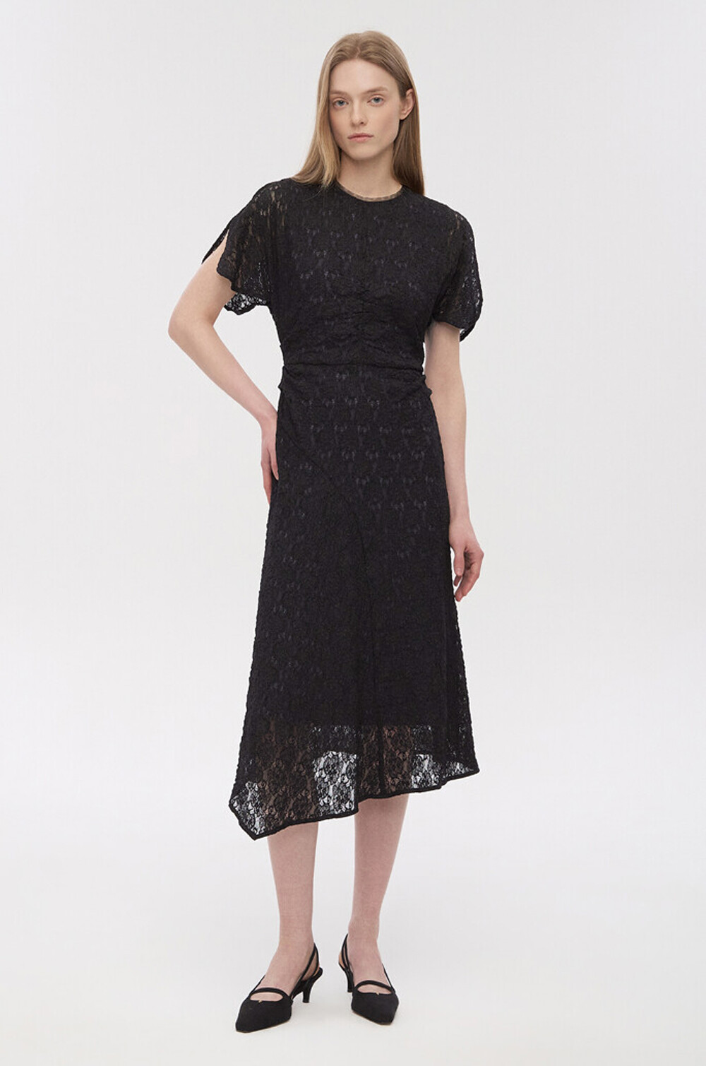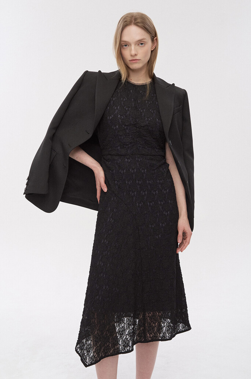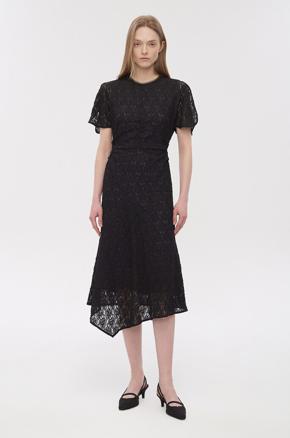 타임 플로럴 레이스 언밸런스 헴 드레스
