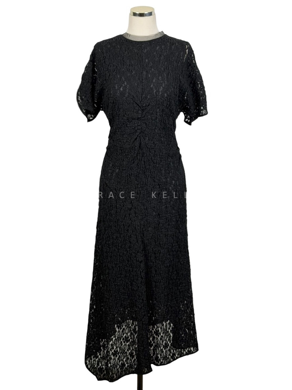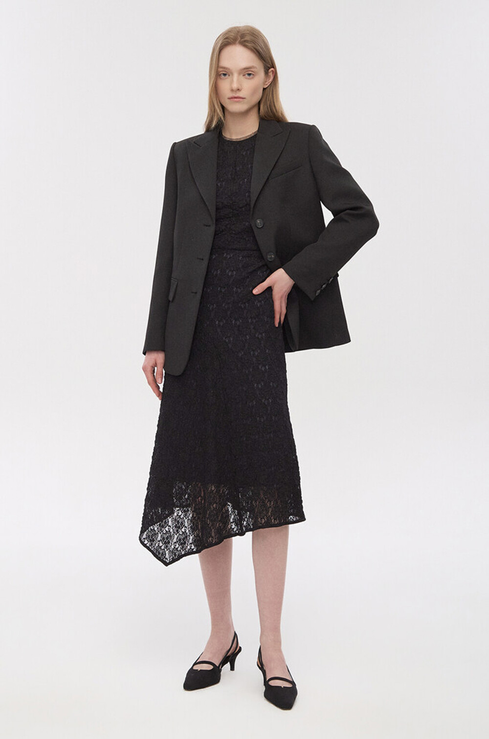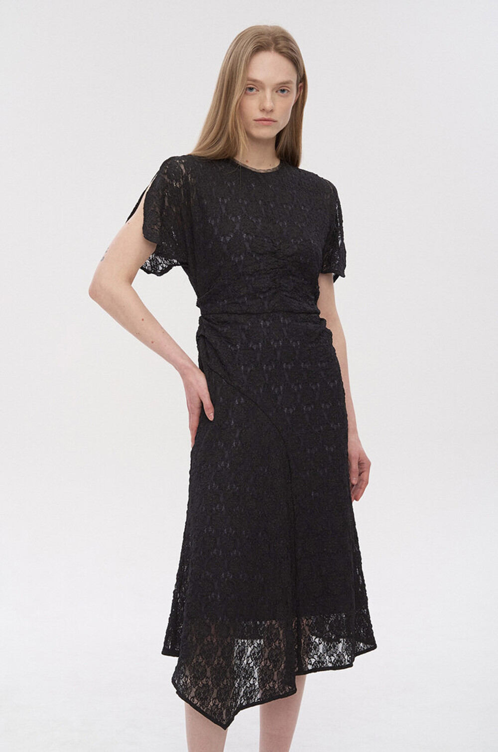 타임 플로럴 레이스 언밸런스 헴 드레스