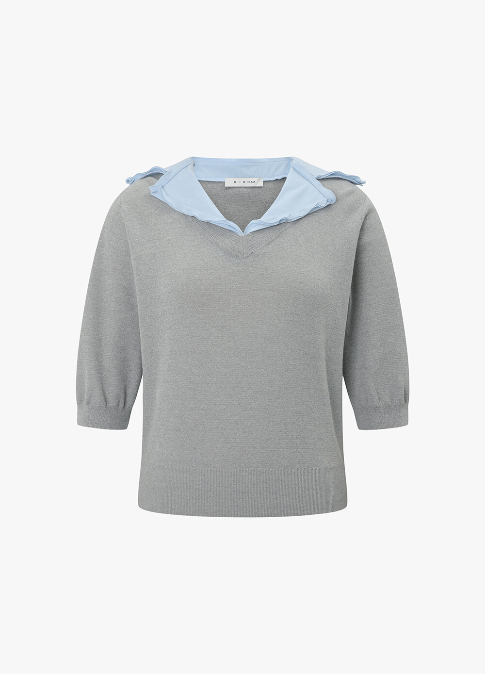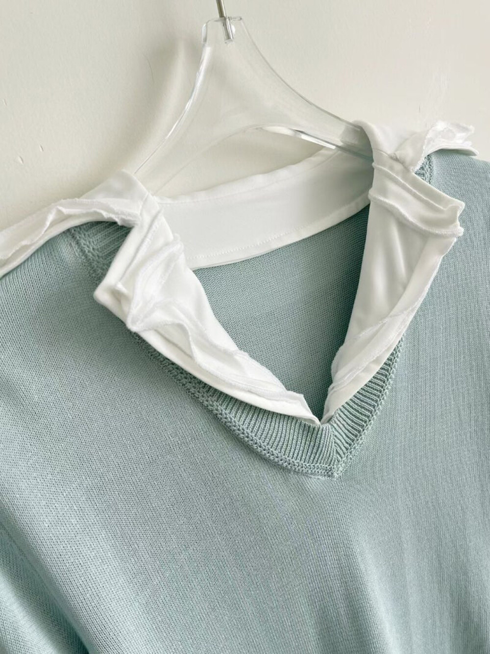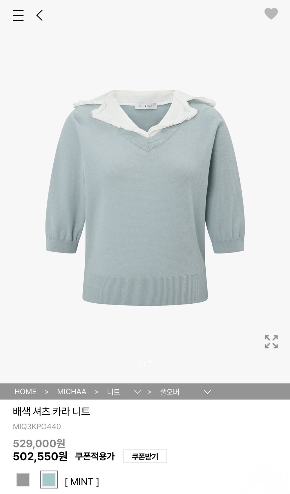 미샤 배색 셔츠 카라 니트
