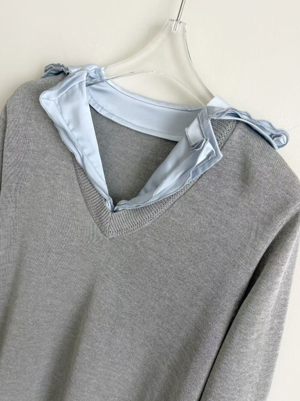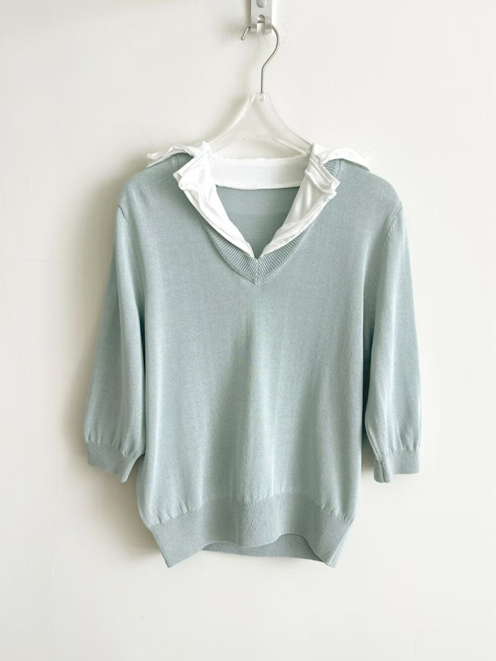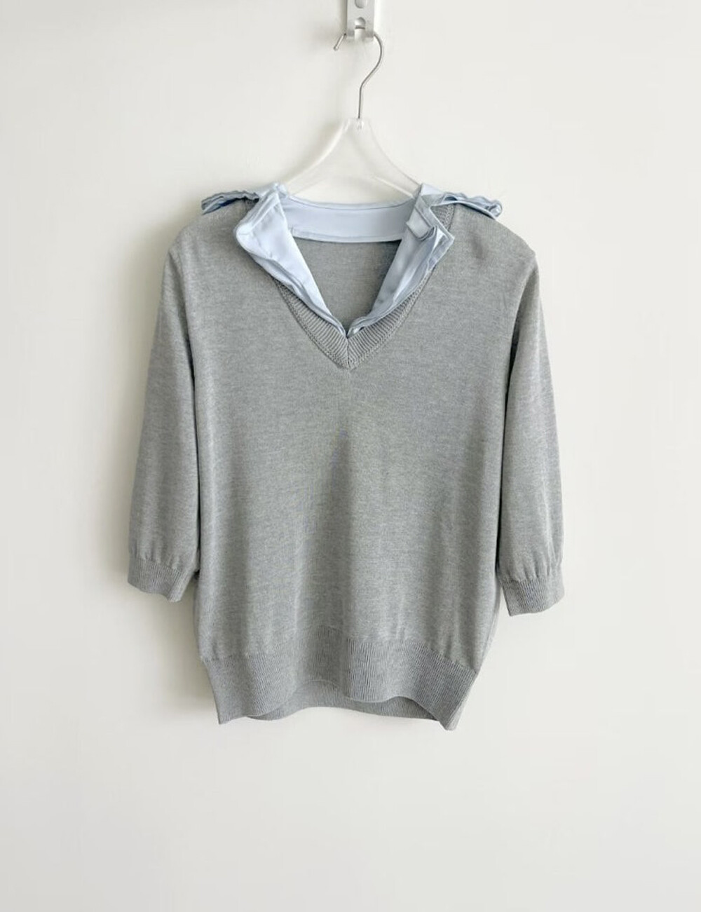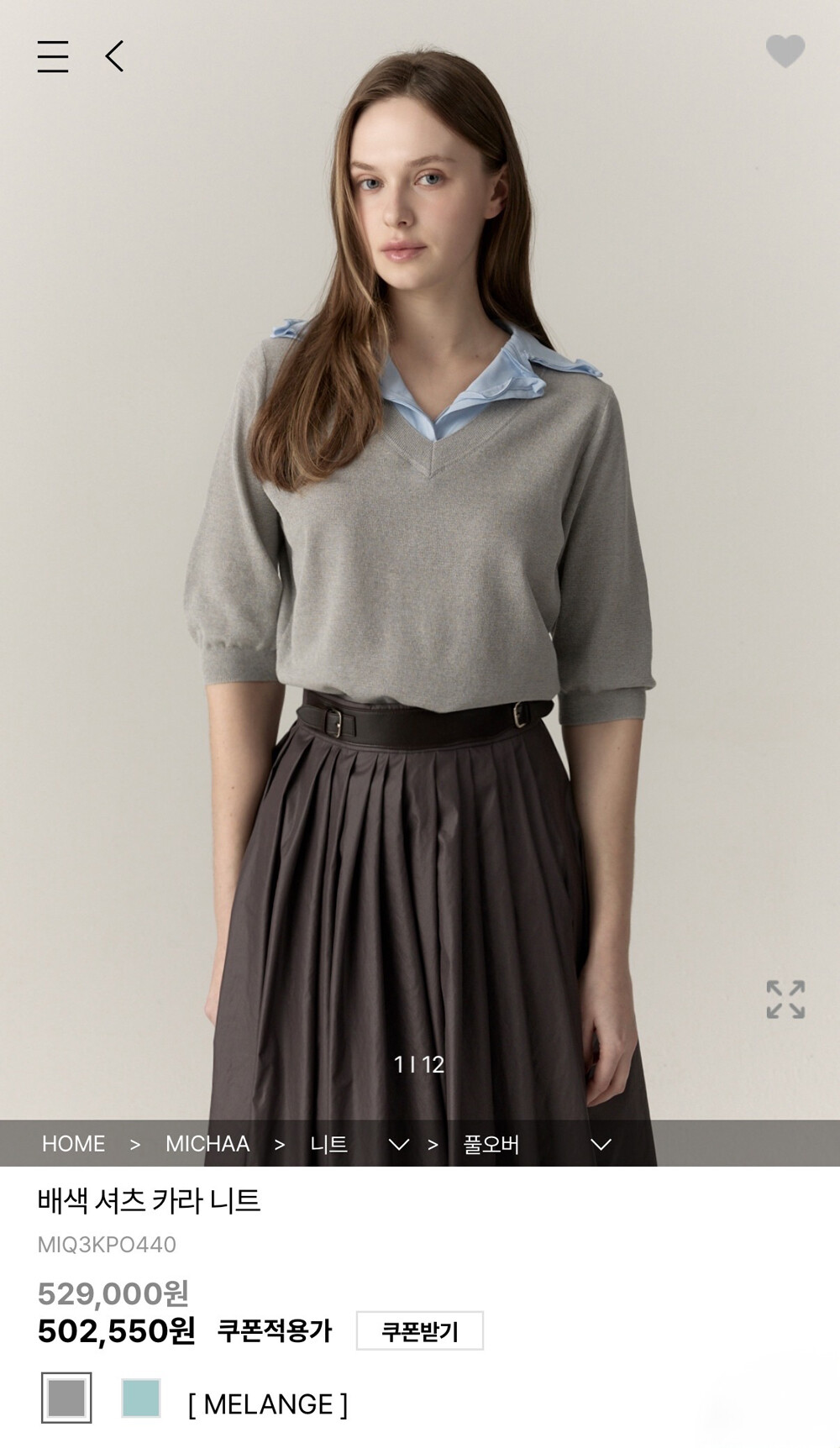 미샤 배색 셔츠 카라 니트