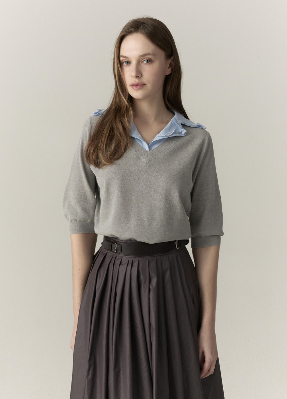 셔츠 카라가 어우러져