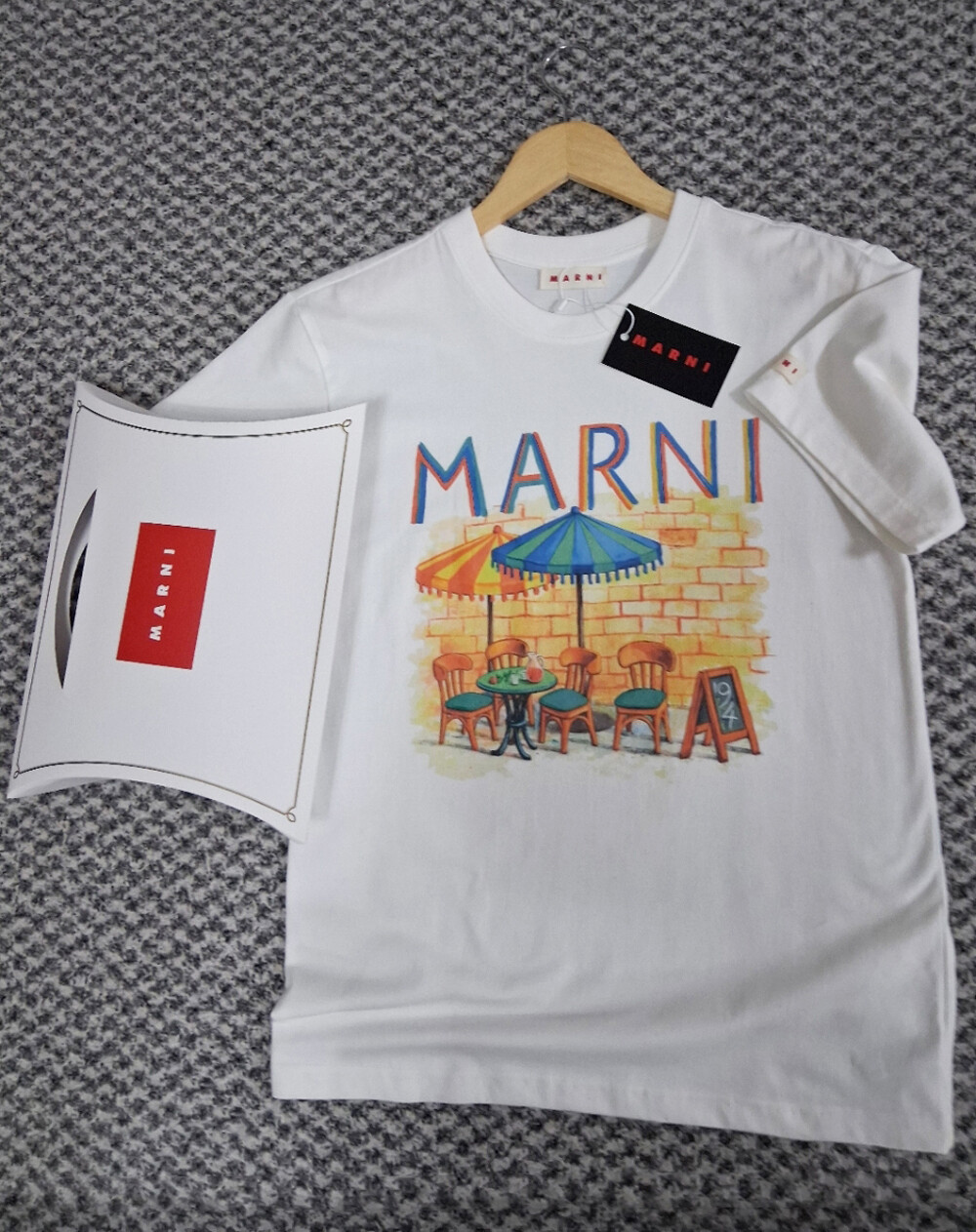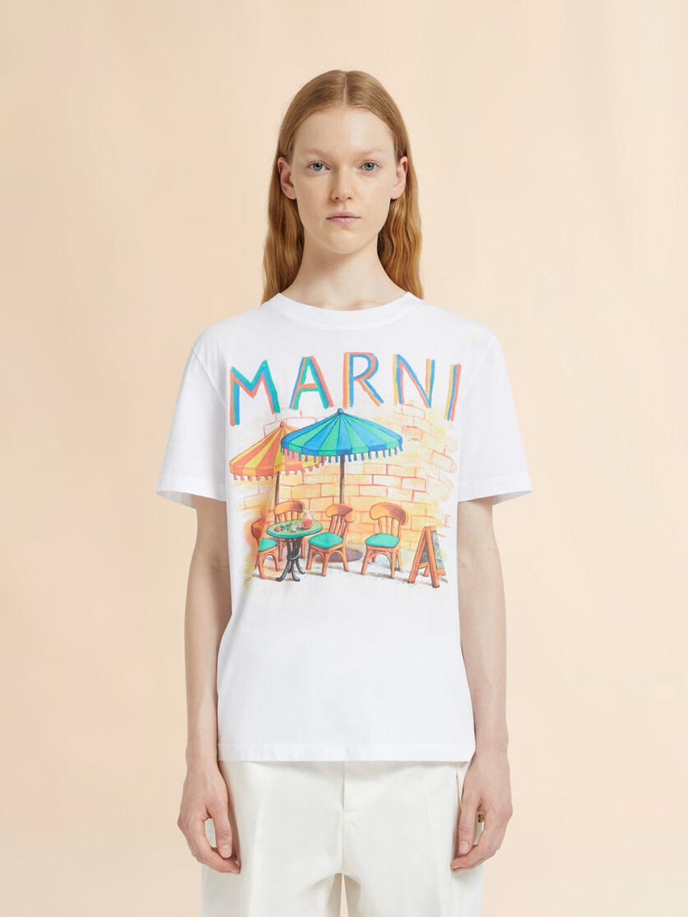 마르니. 포스트카드 프린트 코튼 티셔츠