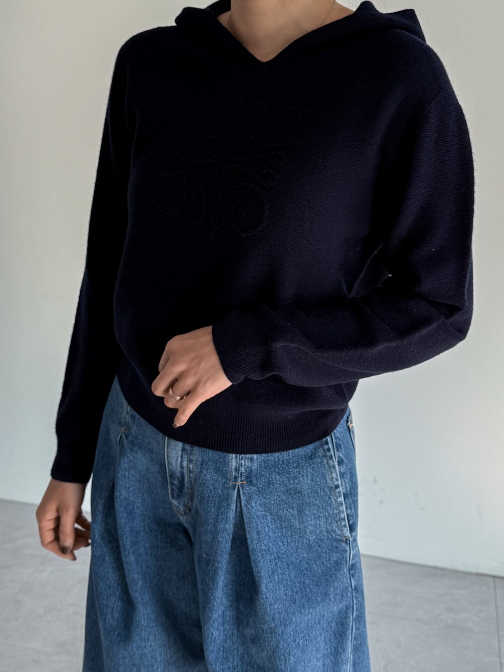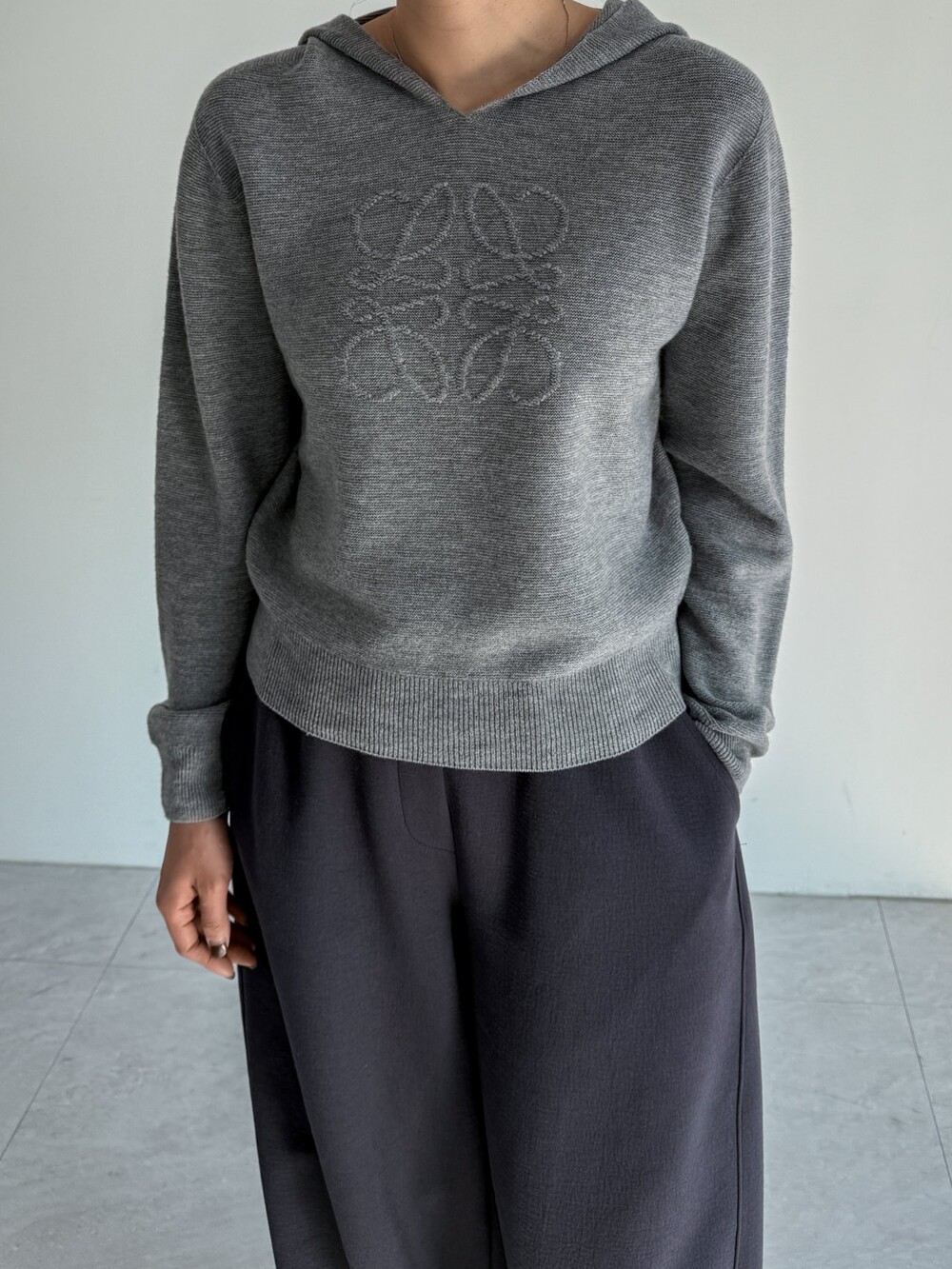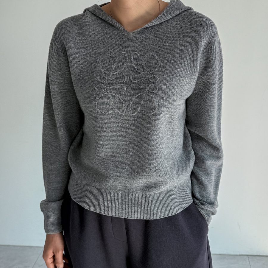 로에 울 후드 니트 탑