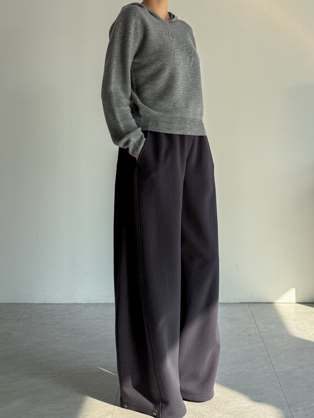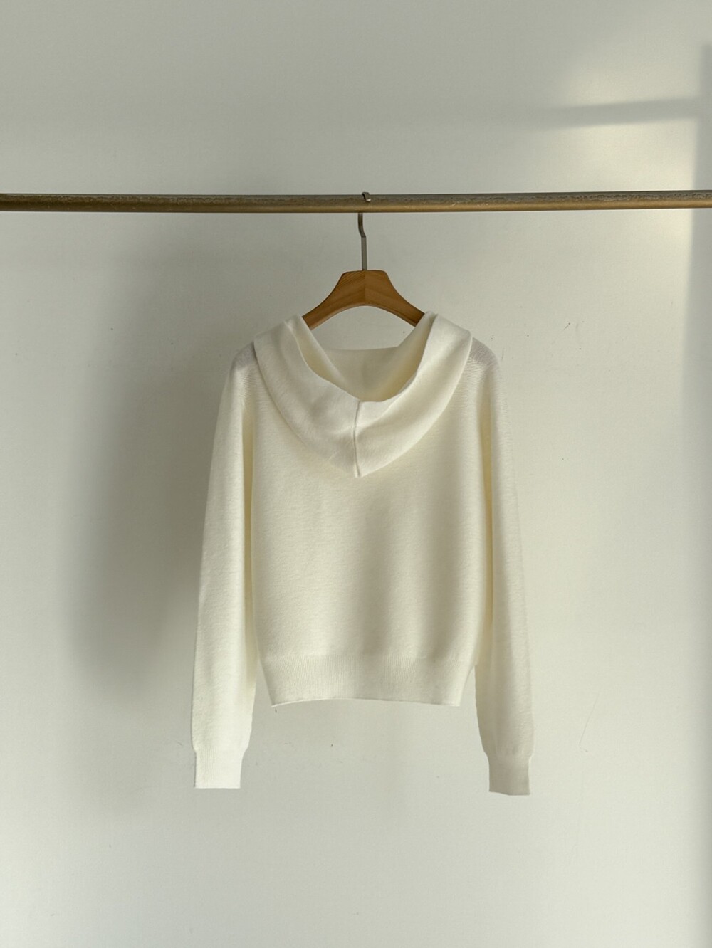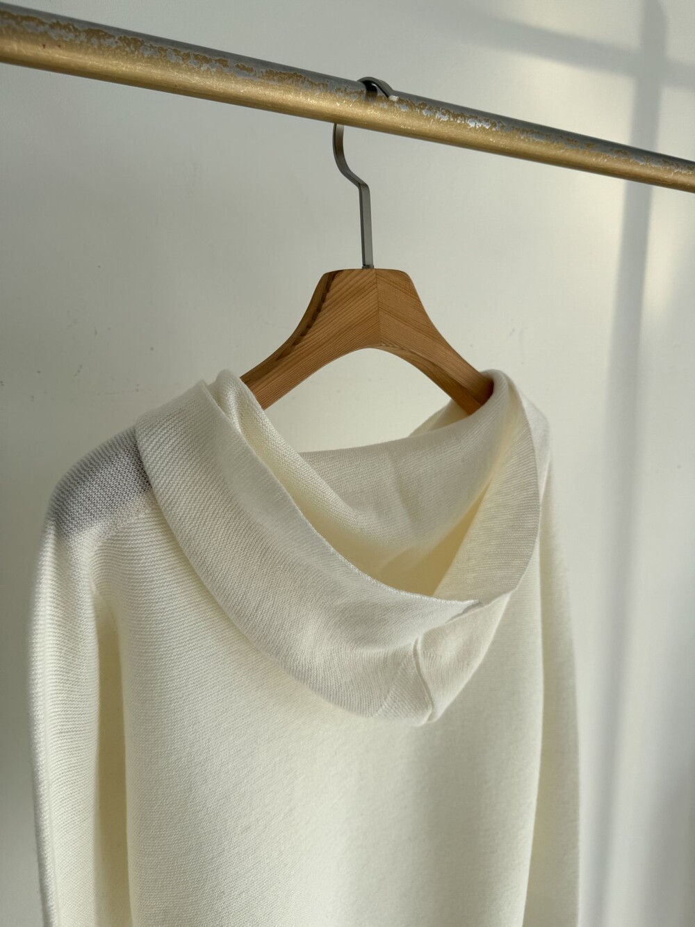 울 100% 원사로 완성한 후드 탑으로,