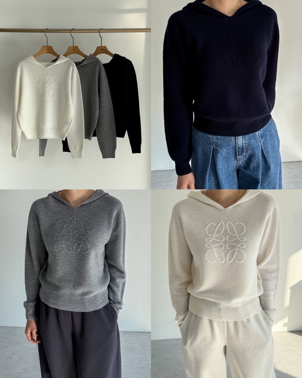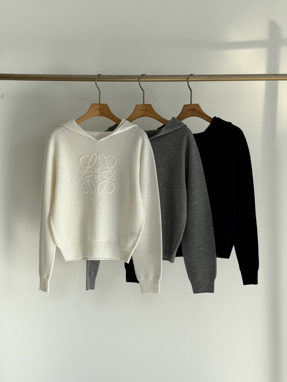 제이코코. 로에 울 후드 니트 탑