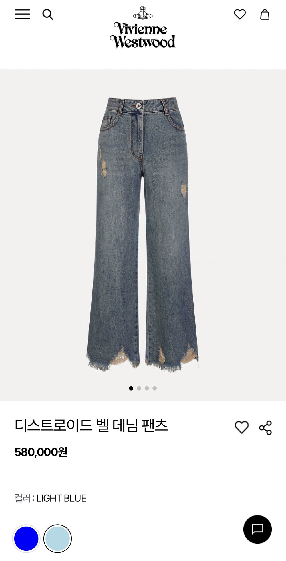비비안웨스트우드 디스트로이드 벨 데님 팬츠