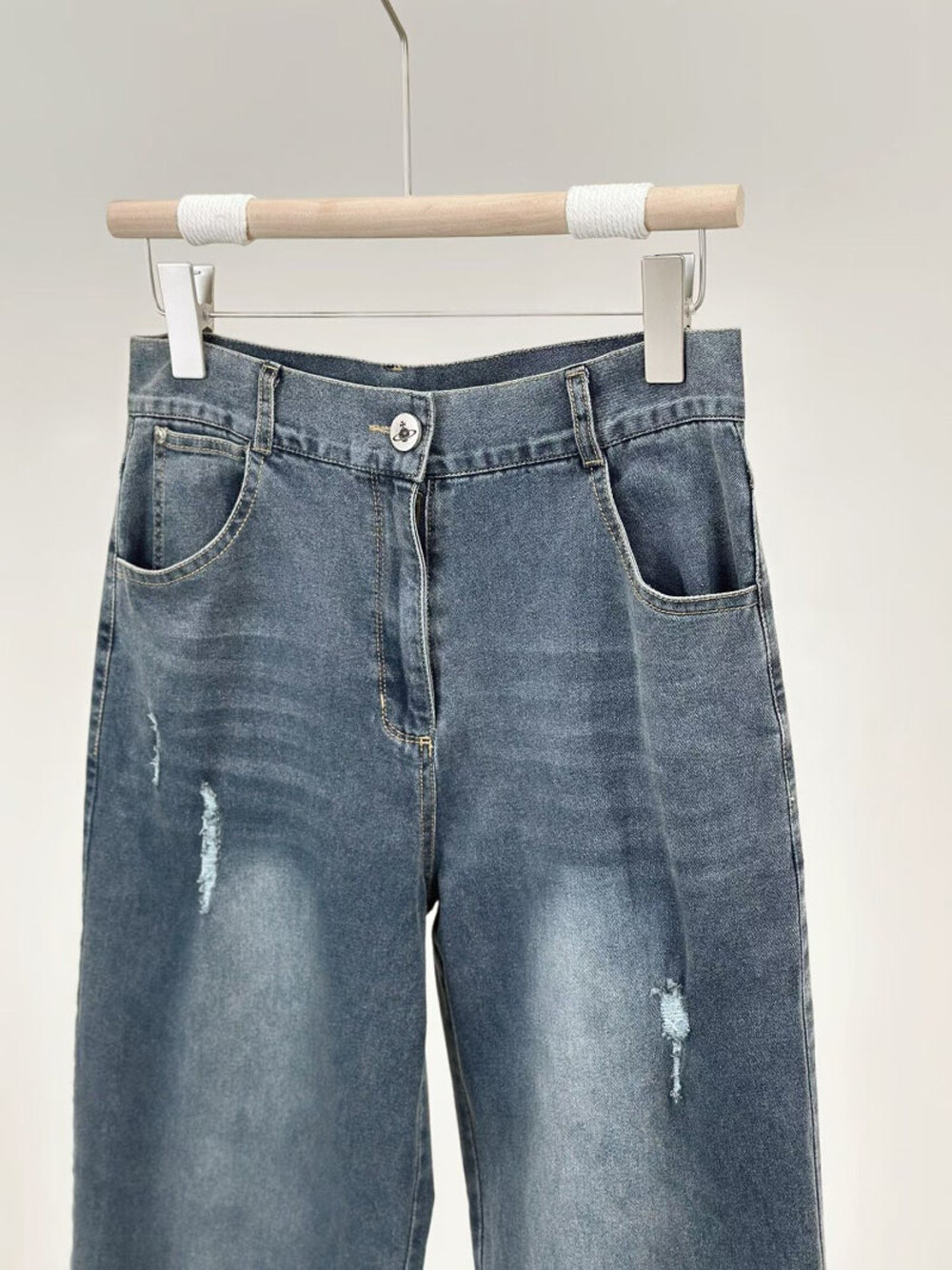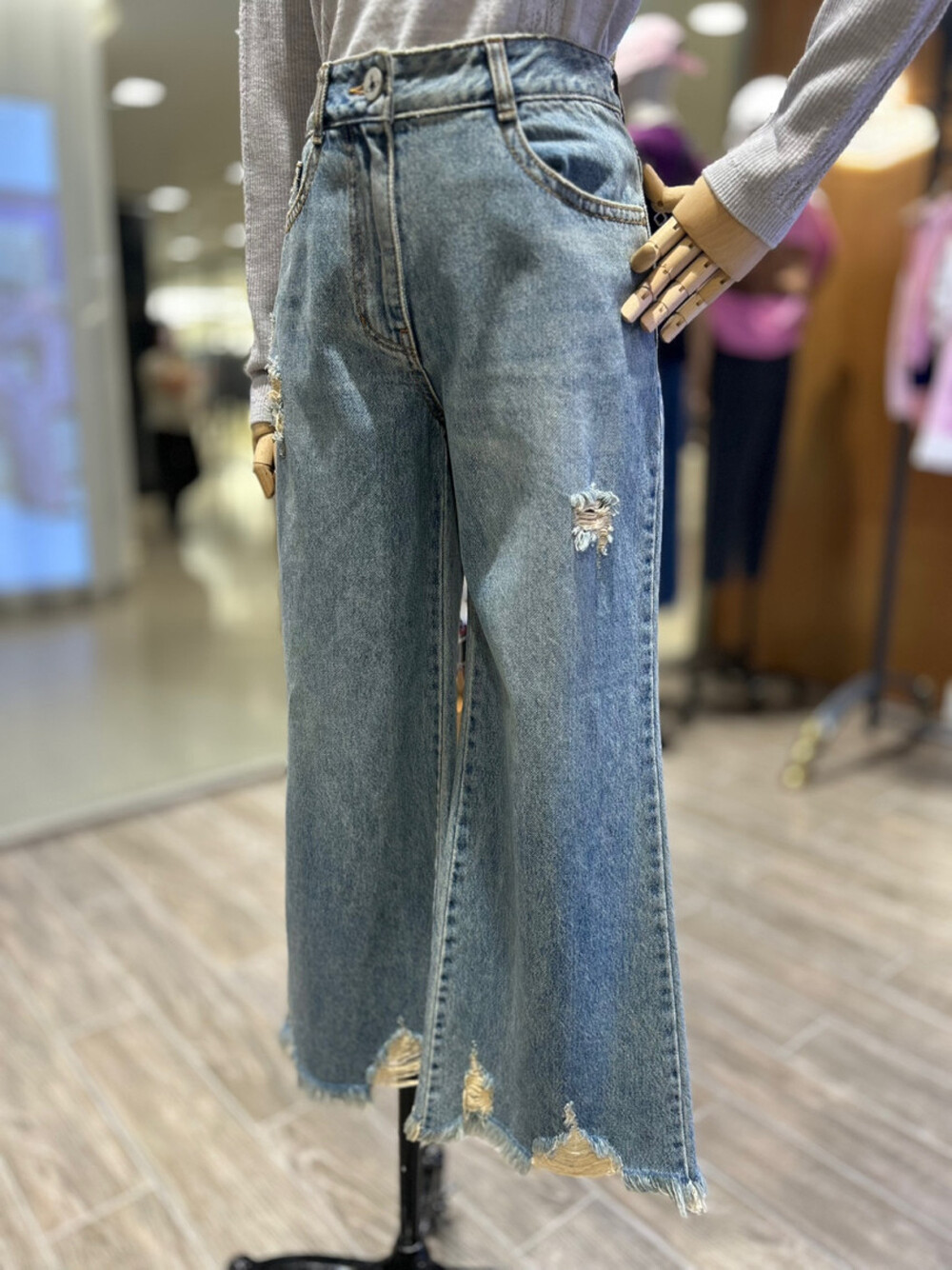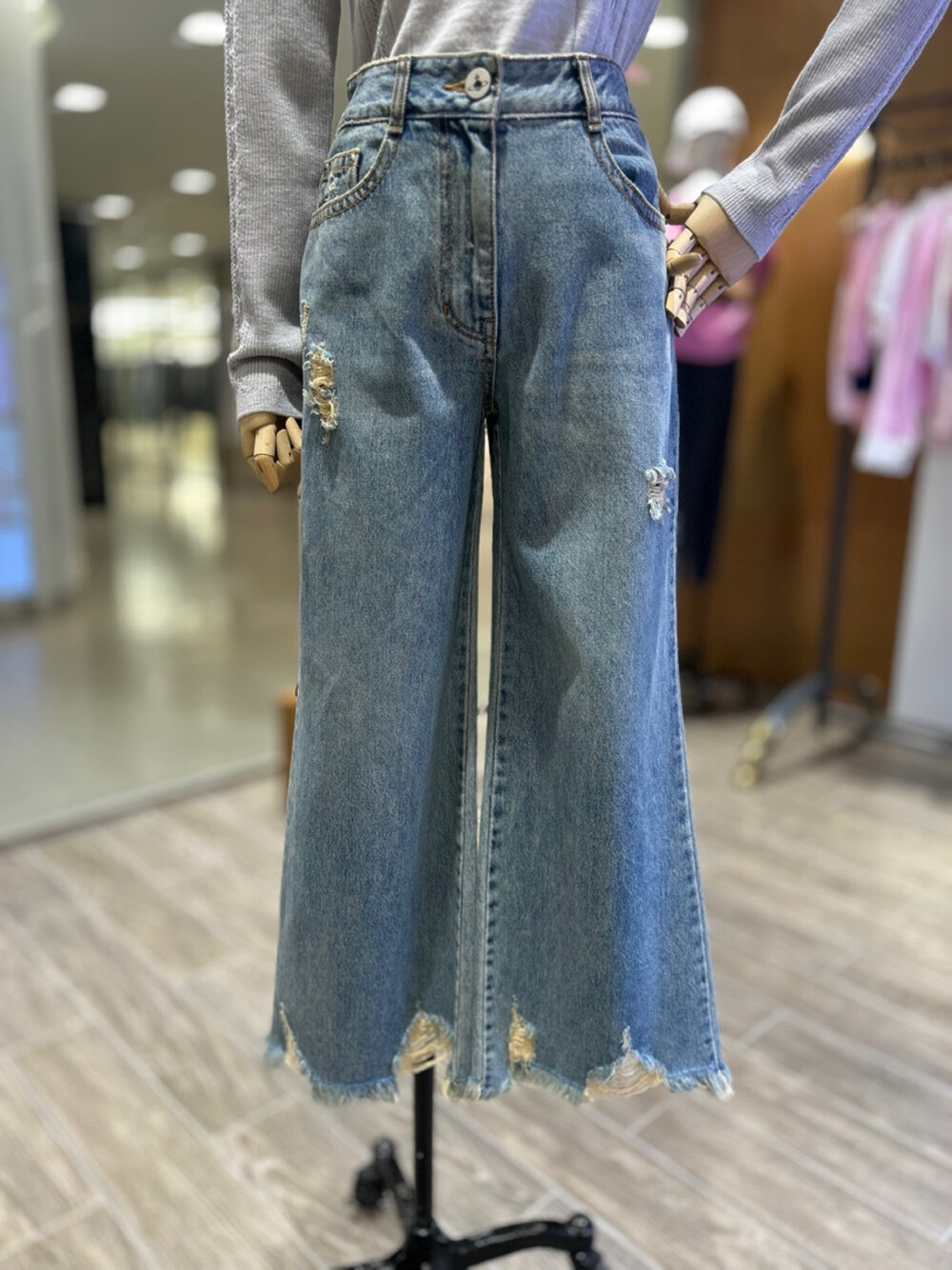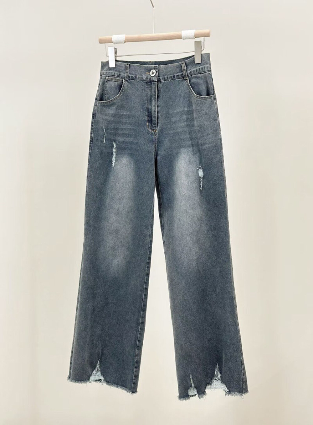 - 고급 순면으로 제작된 디스트로이드 벨 데님 팬츠