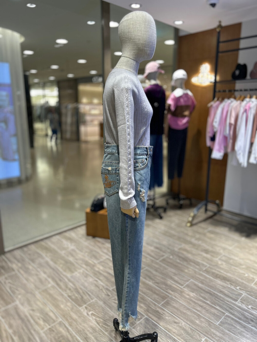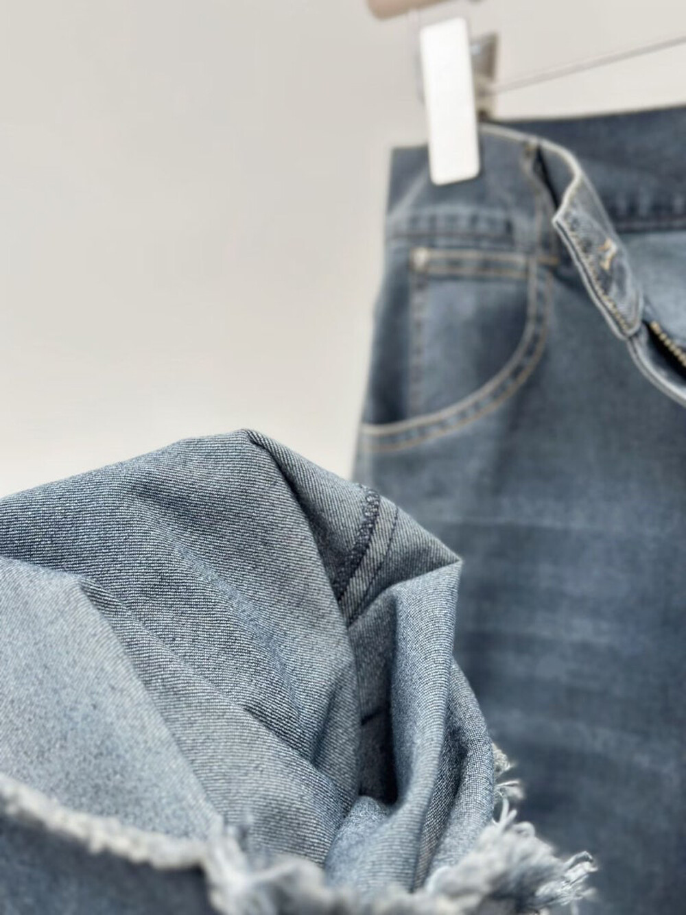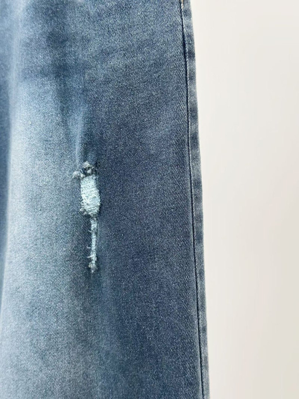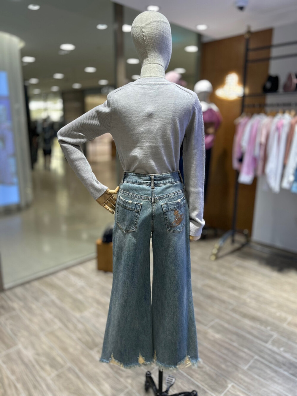 - 고급 순면으로 제작된 디스트로이드 벨 데님 팬츠
