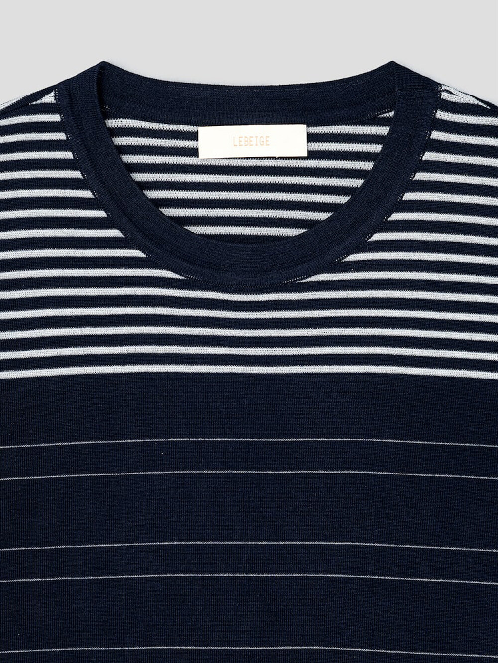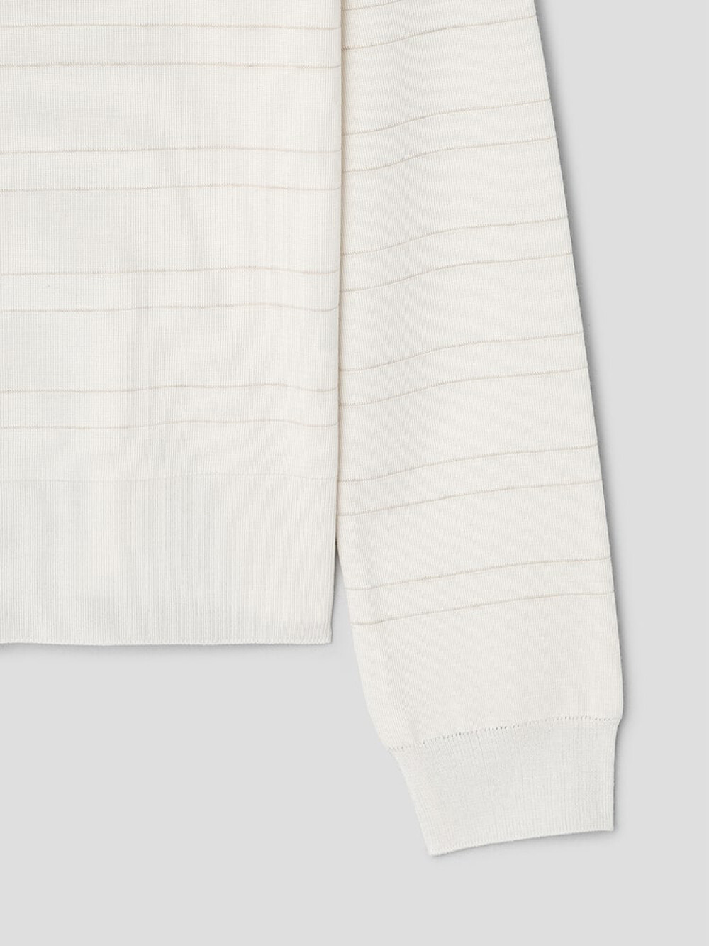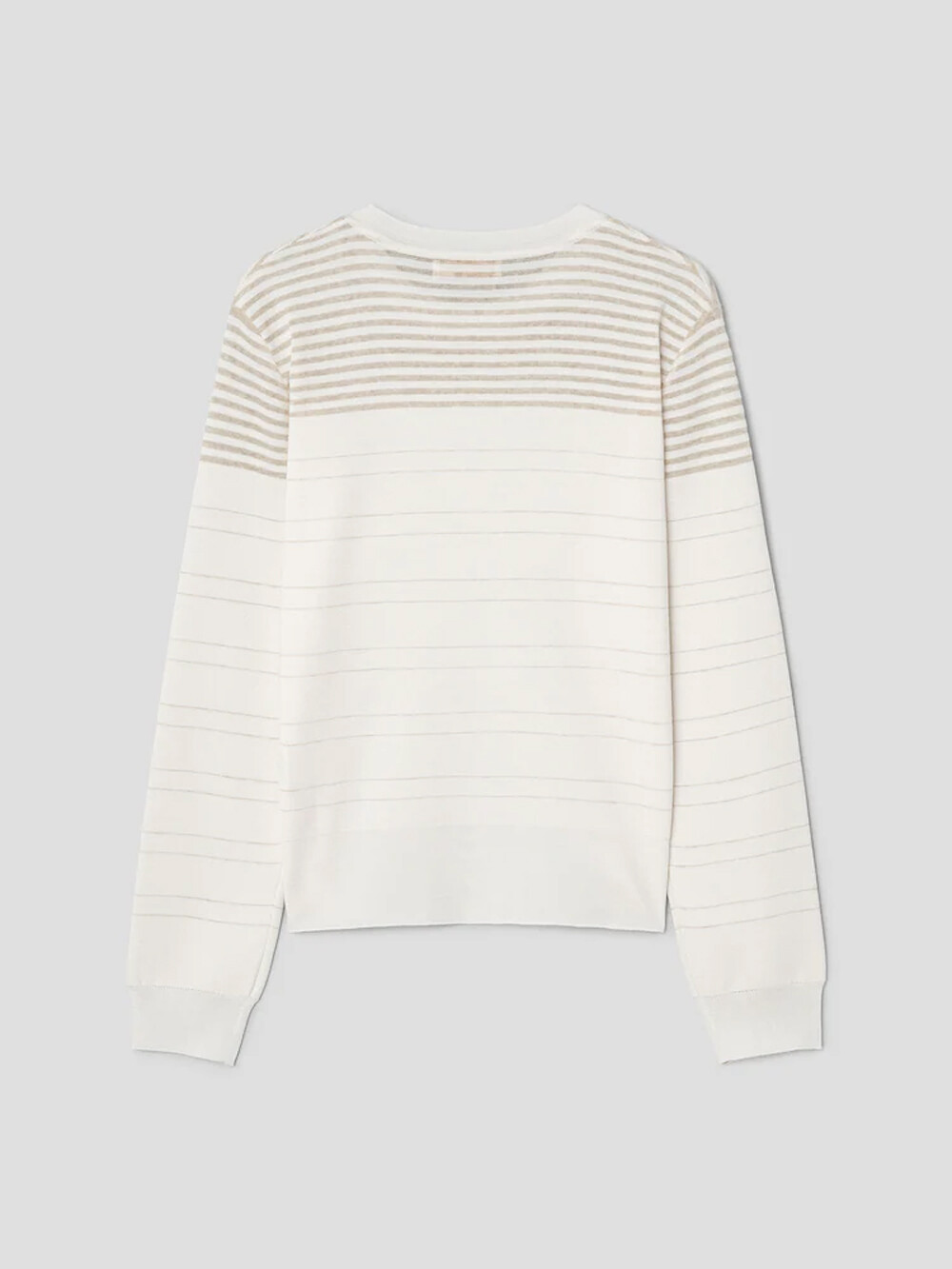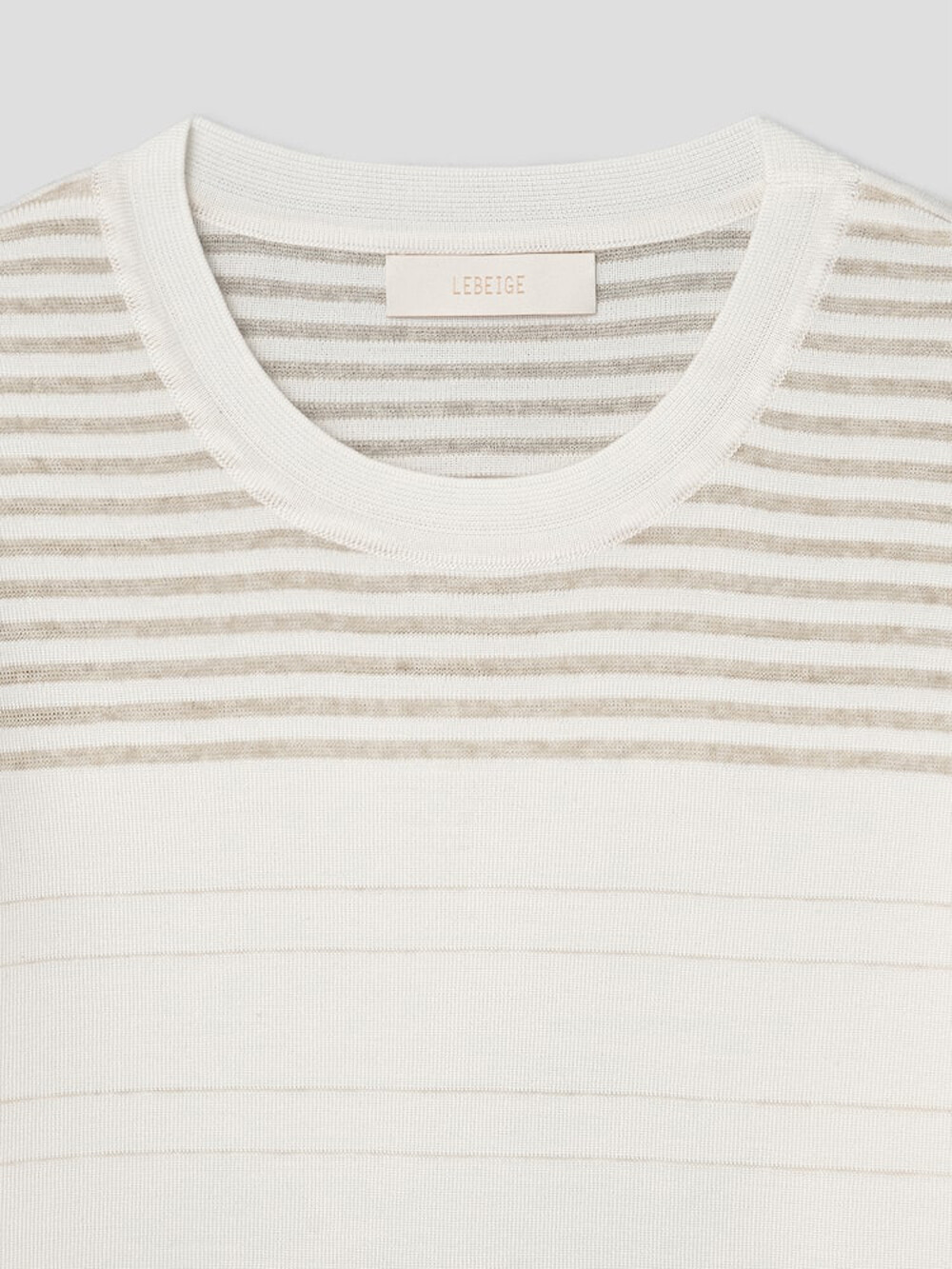 르베이지 울 실크 스트라이프 크루넥 스웨터