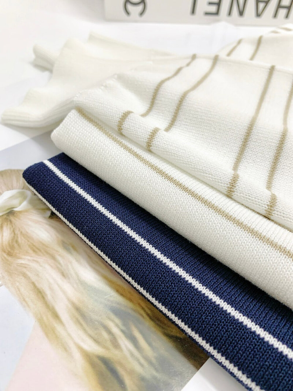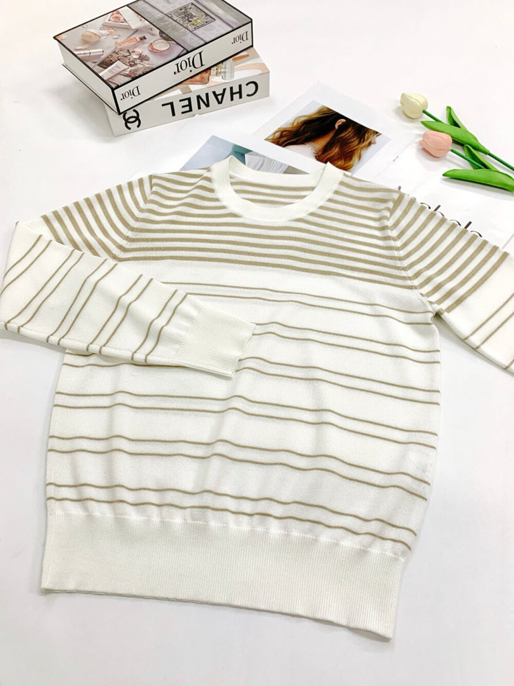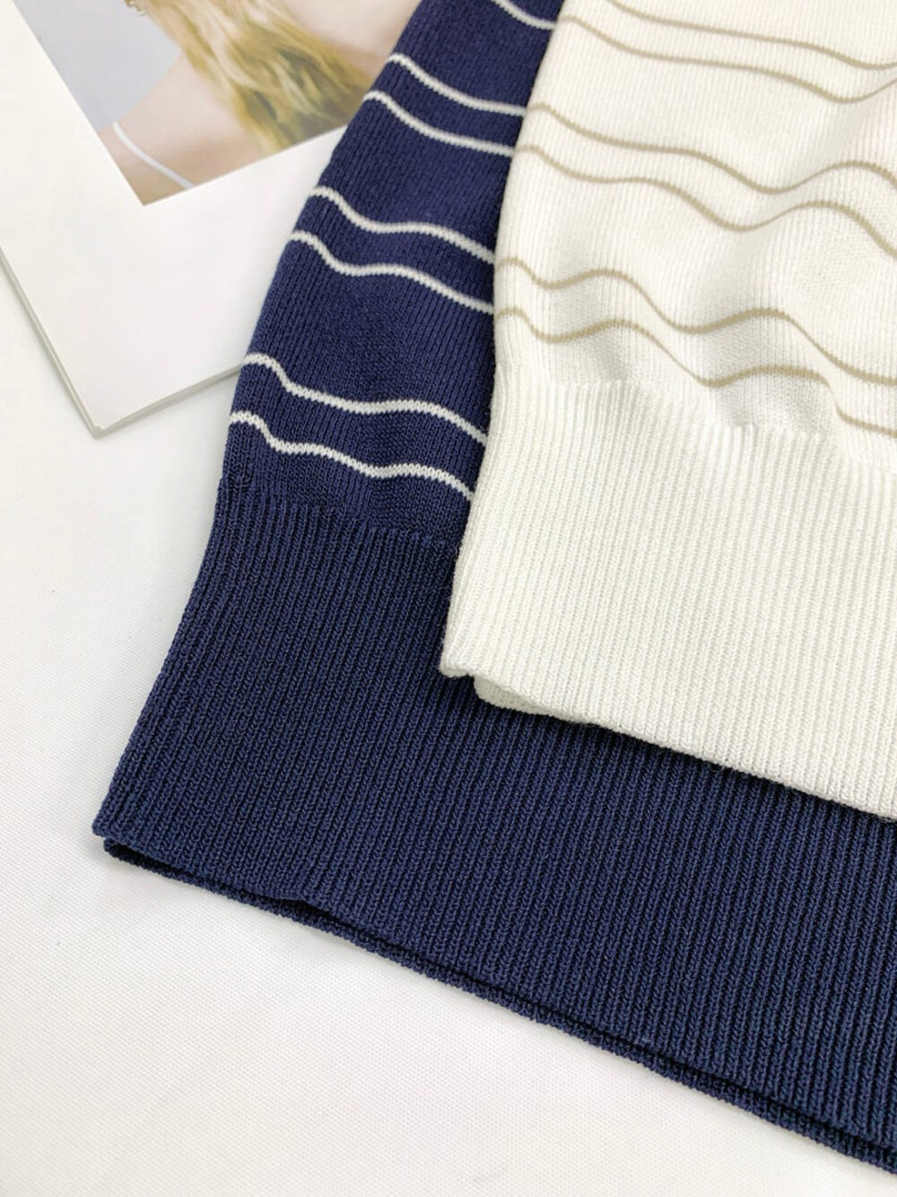 스트라이프 패턴의 스웨터입니다.