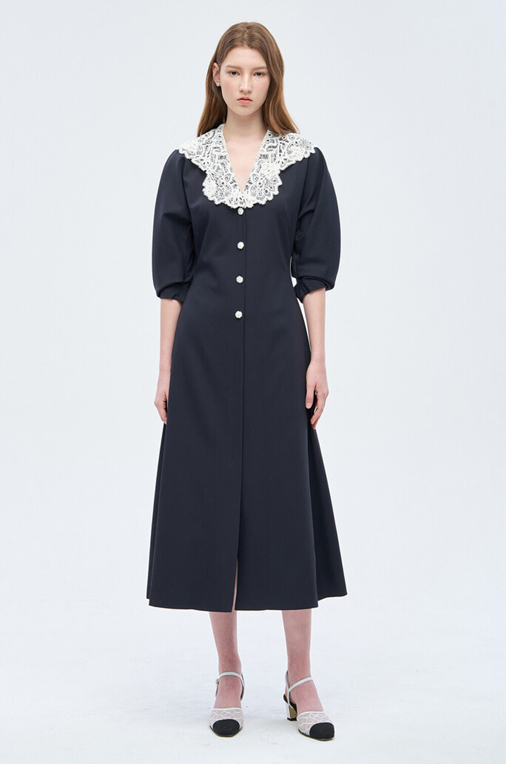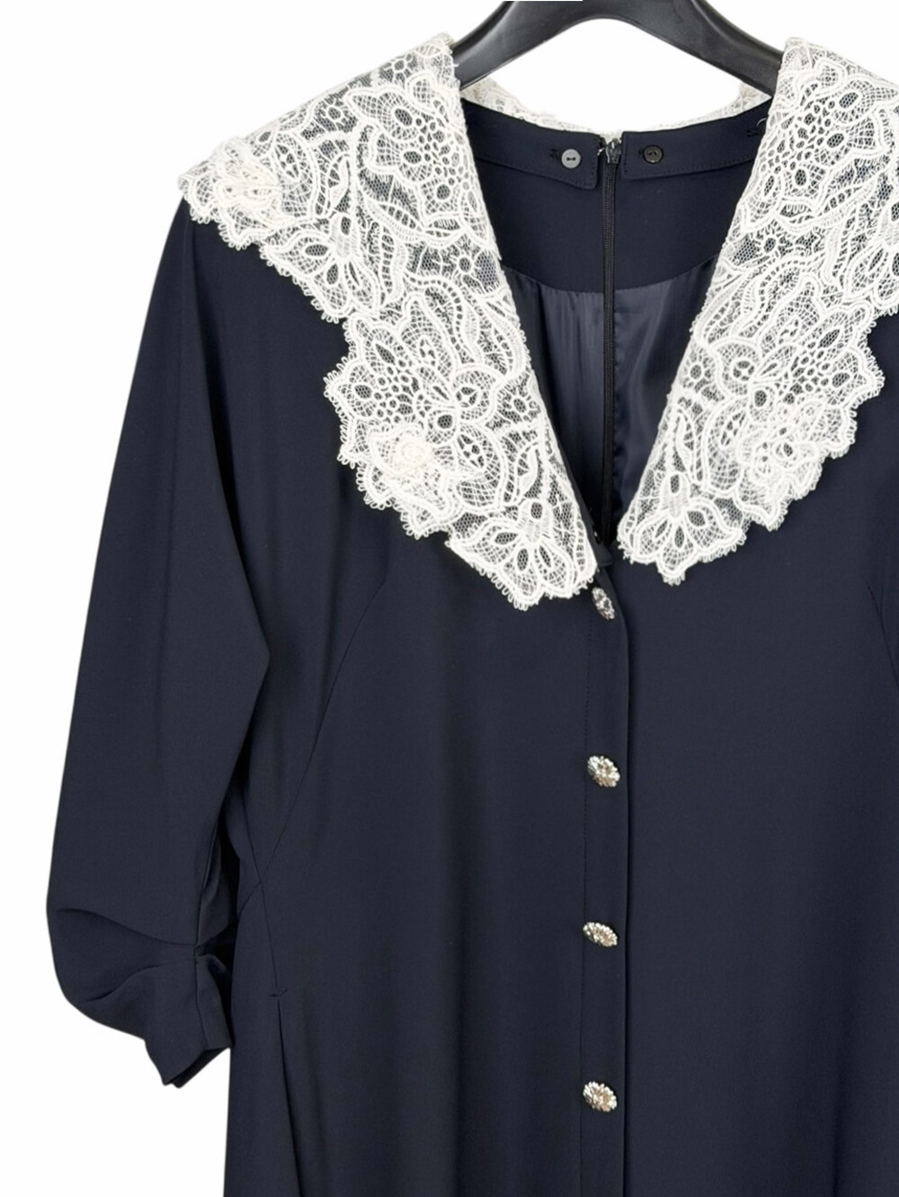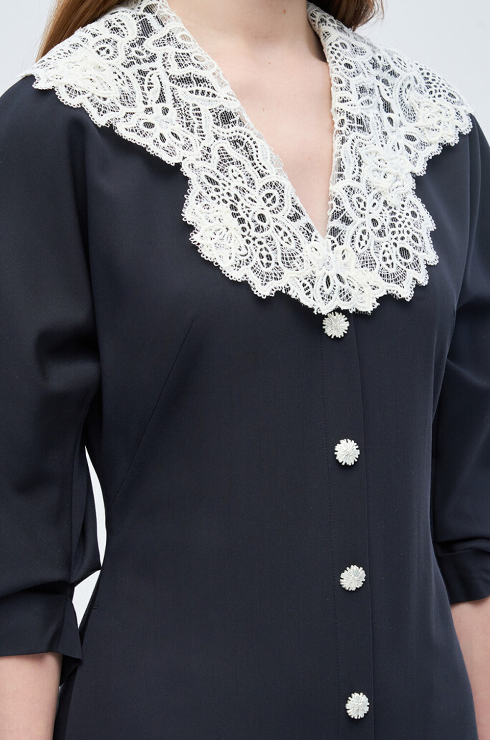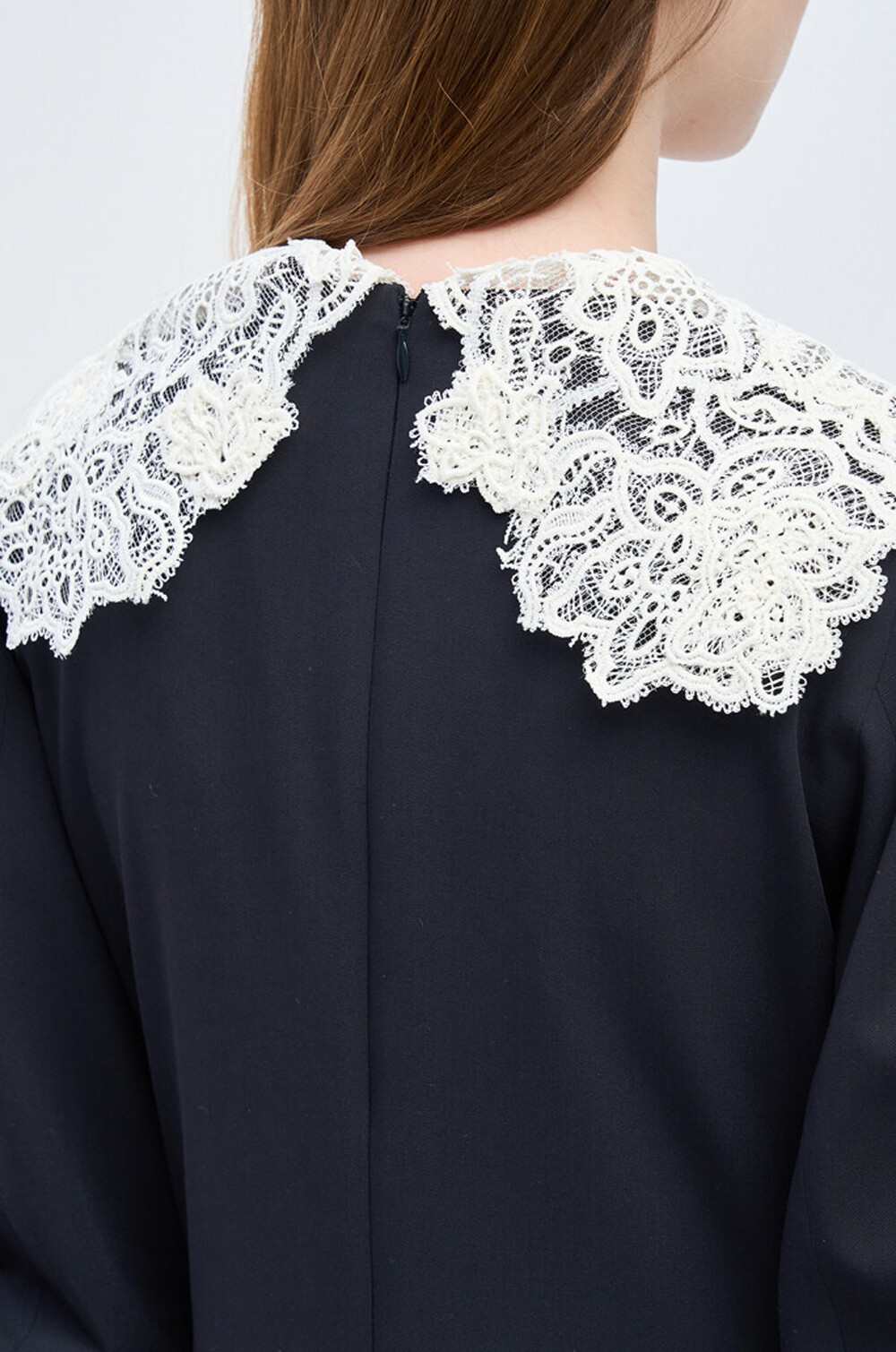 - 넥라인에 버튼으로 탈부착 가능한 레이스 칼라를 함께 구성
