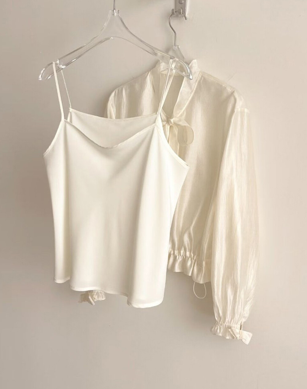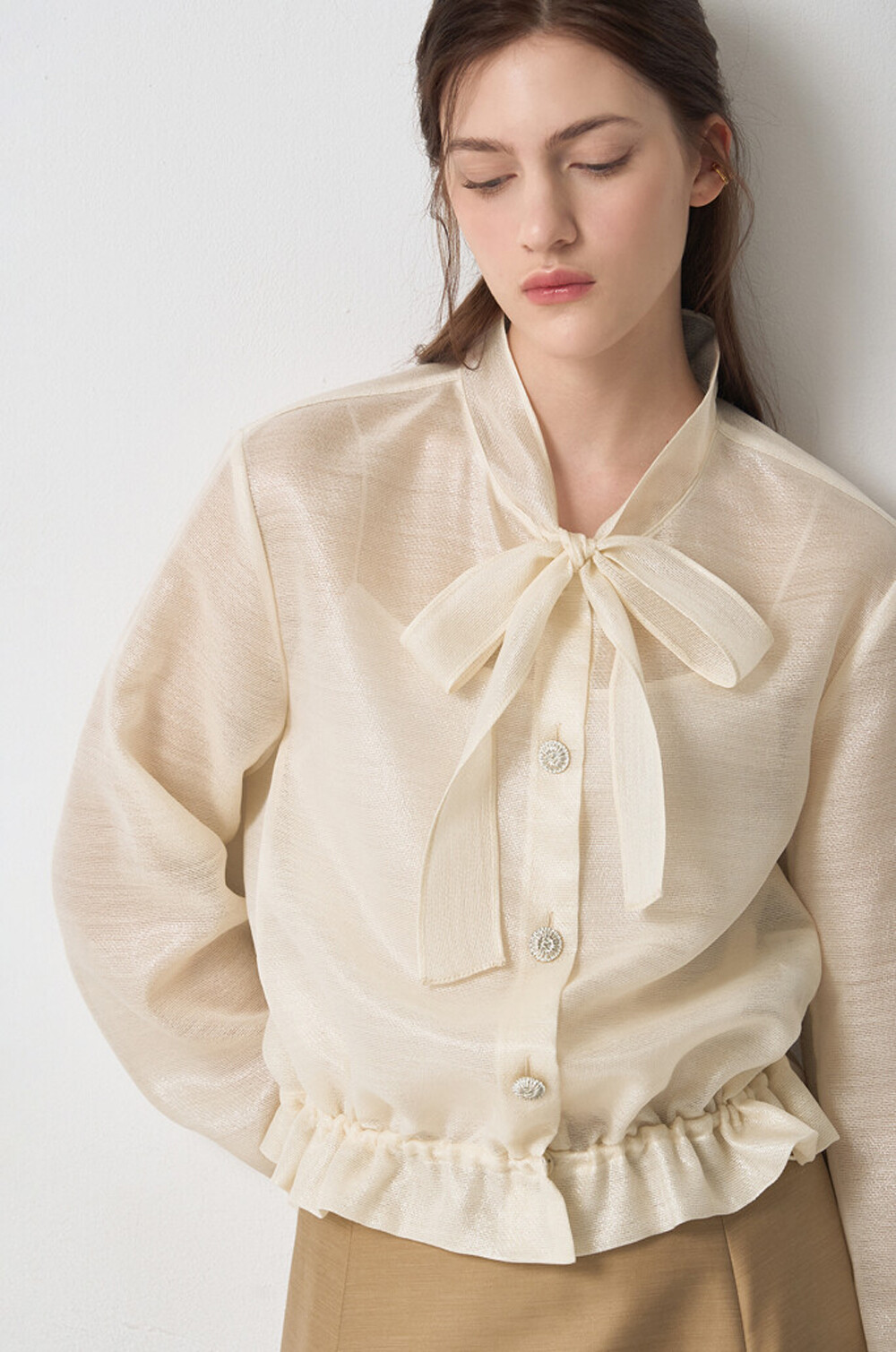 - 전체적으로 글리터 원사를 믹스한 시스루 텍스쳐