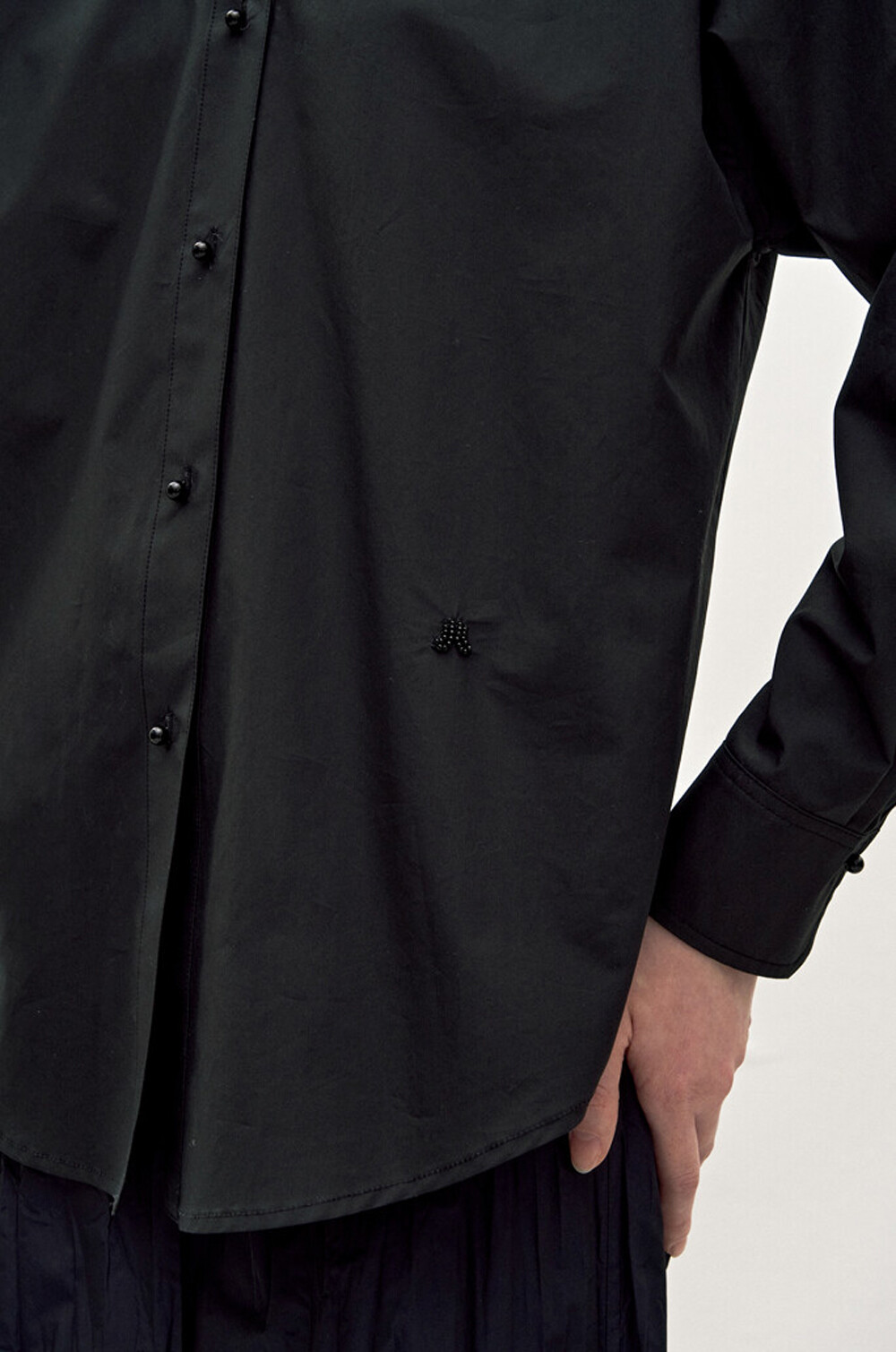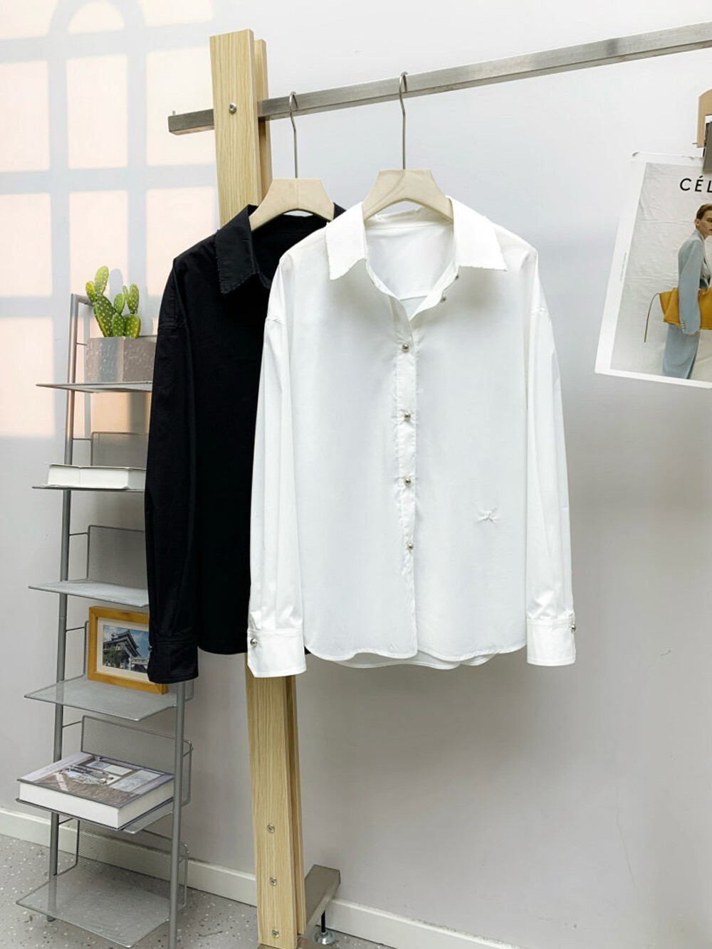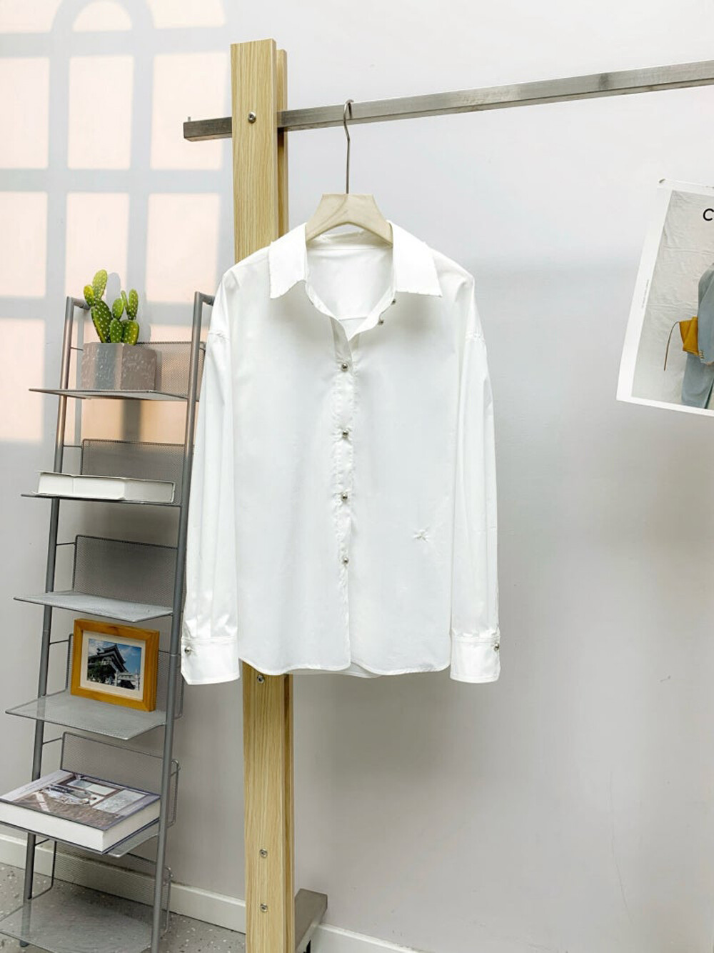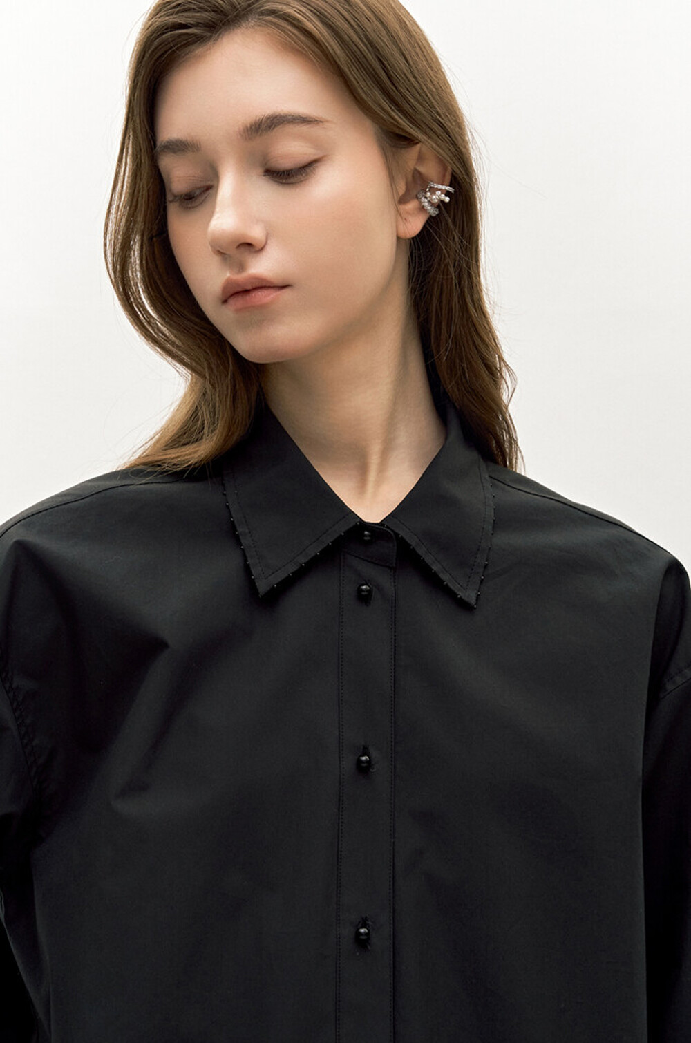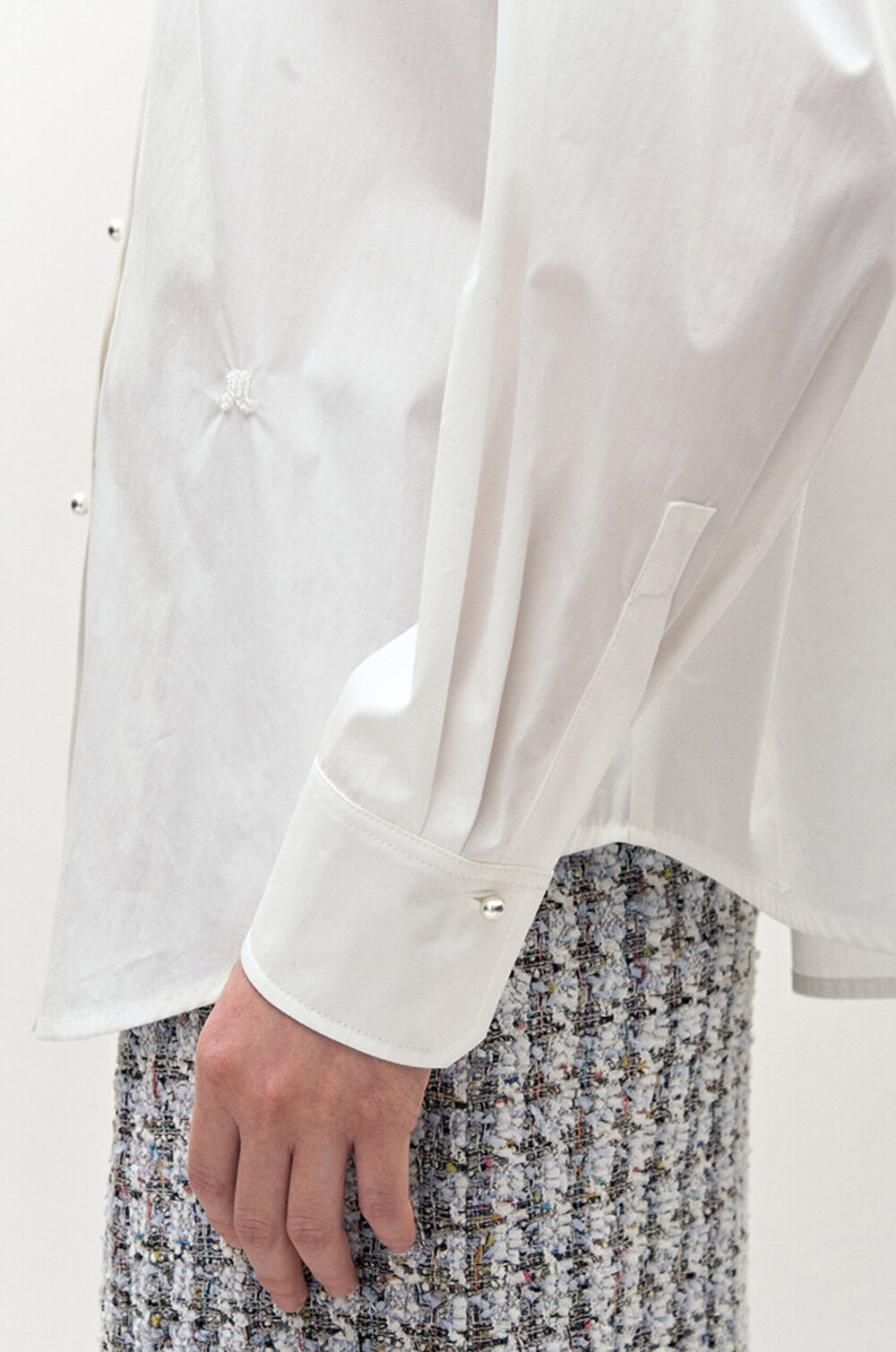 비즈 장식과 펄 버튼 디테일이