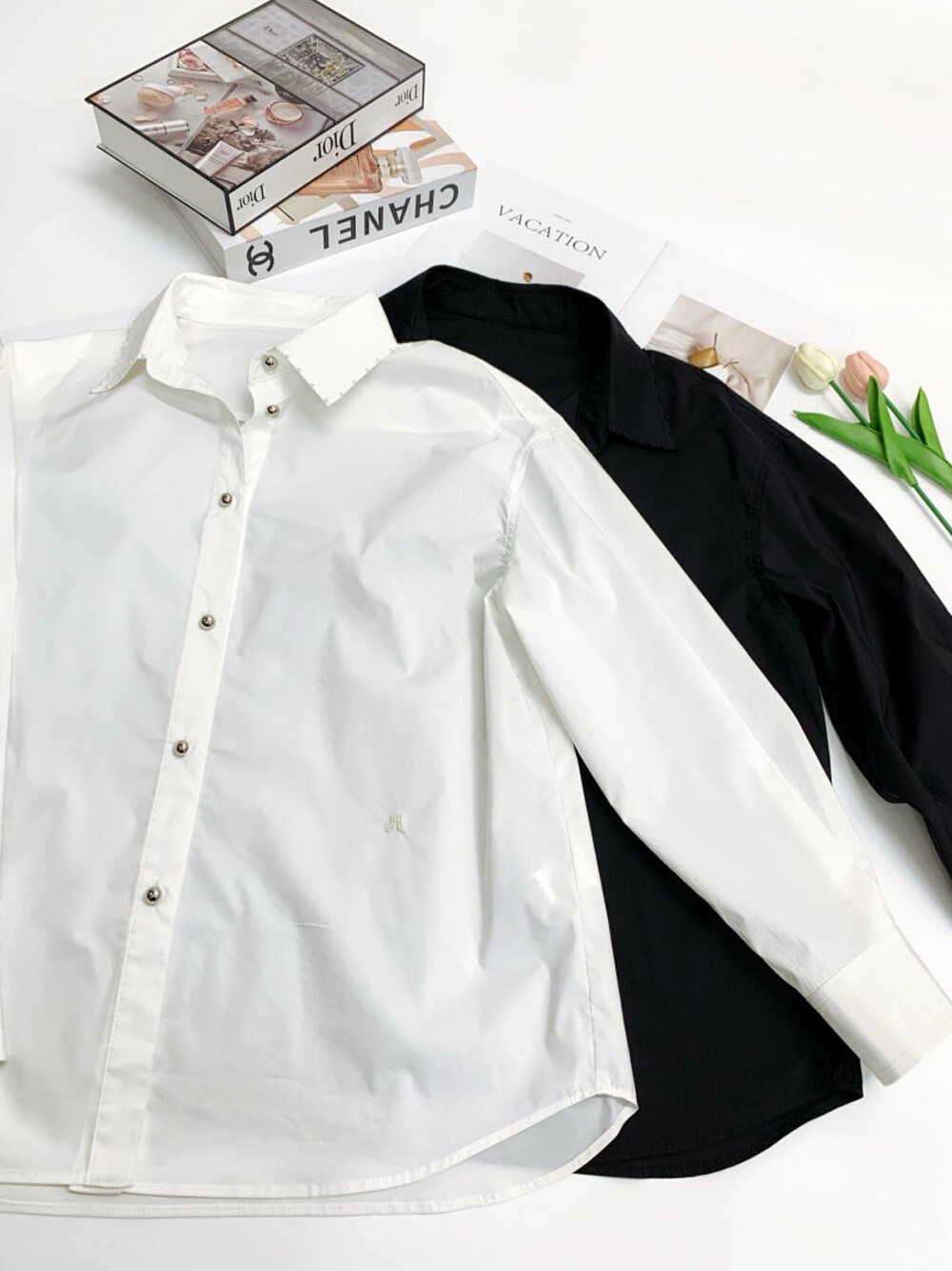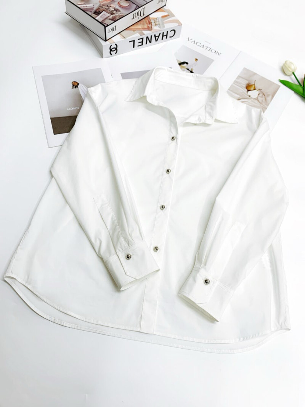 라운드 헴 라인이 특징인 셔츠로,