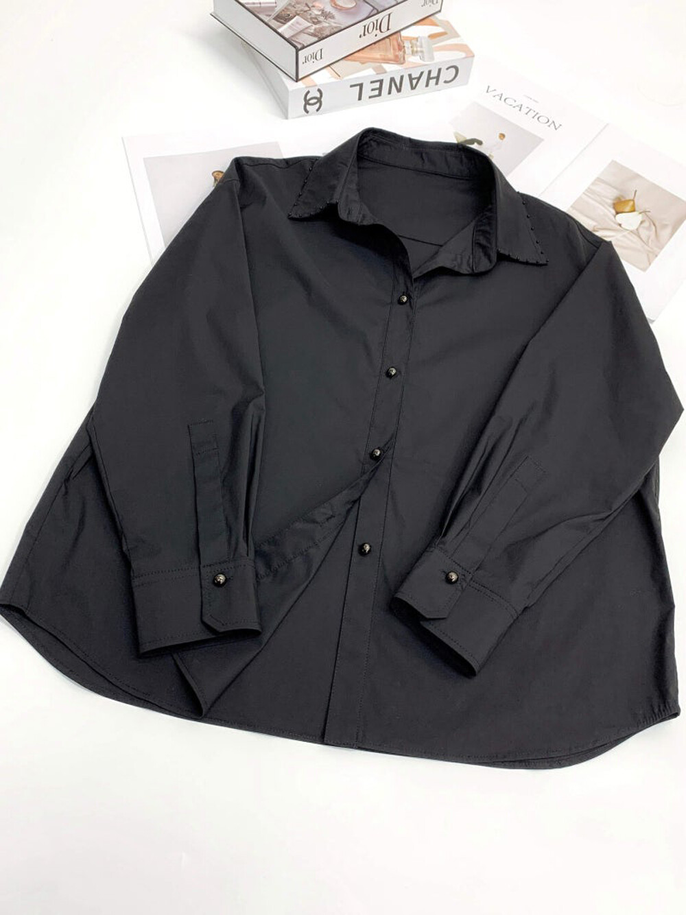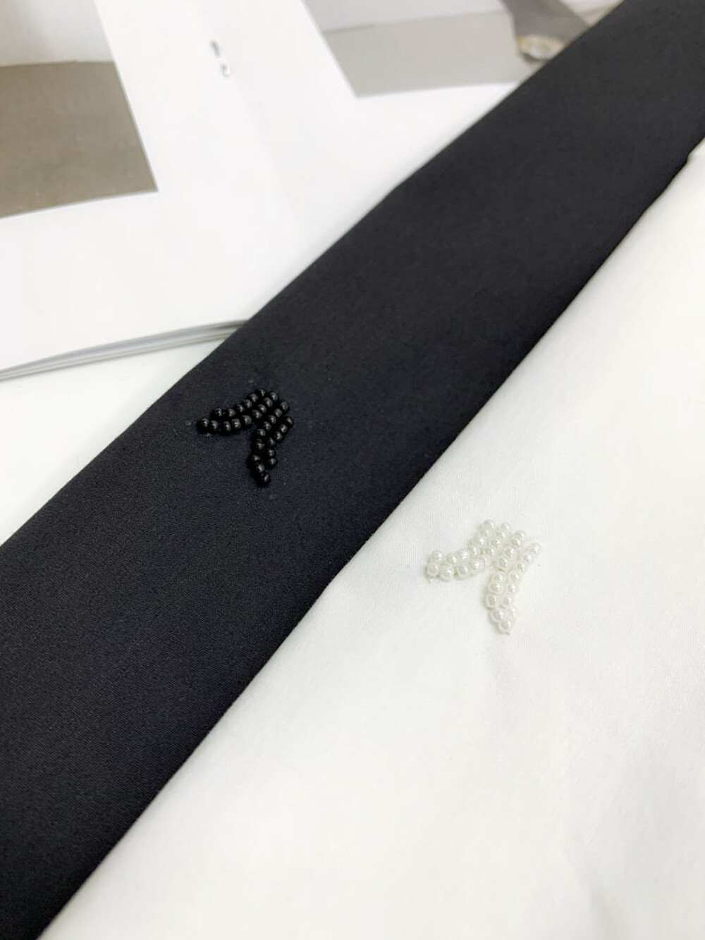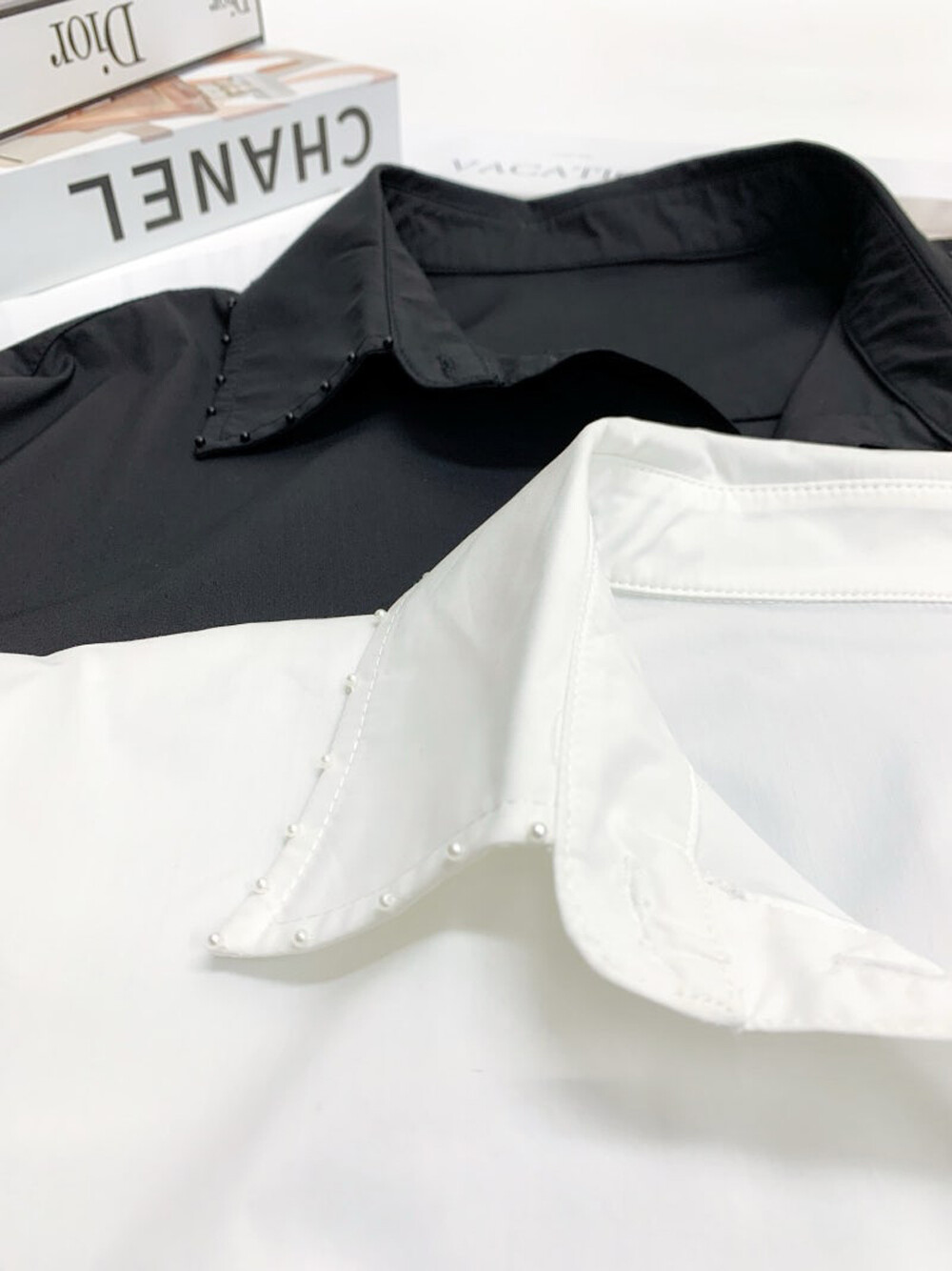 칼라에는 비즈 장식을 더해