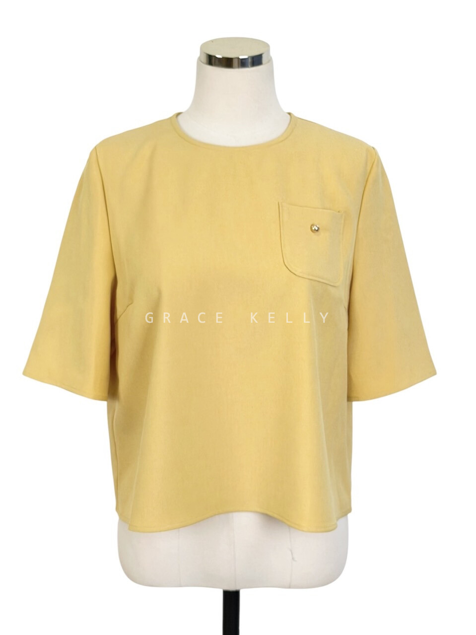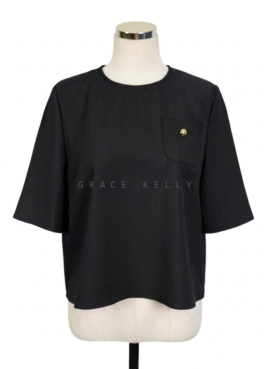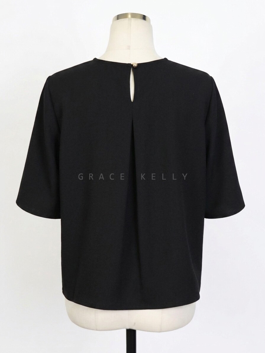 마인 라운드넥 하프 슬리브 블라우스