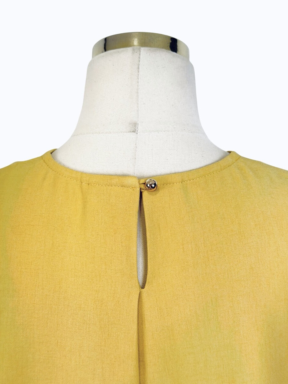 - 넥라인 뒷면에 루프 버튼 클로징과 키홀 디테일