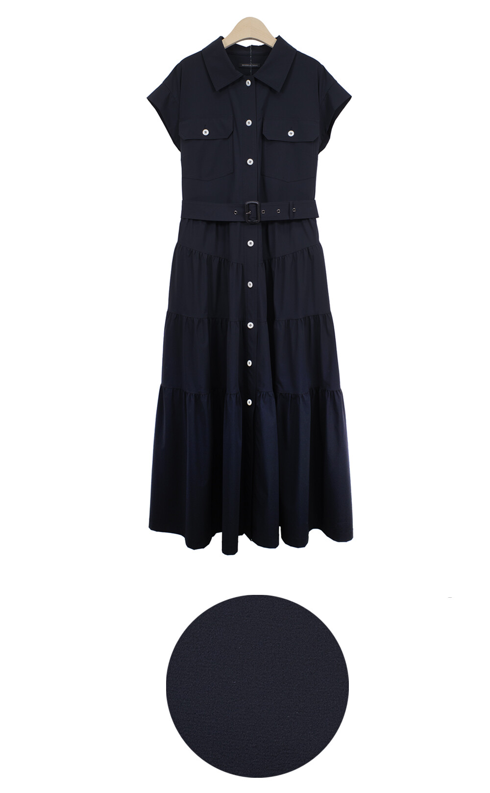 마린엣보우. 벨티드 캡 슬리브 셔츠 드레스