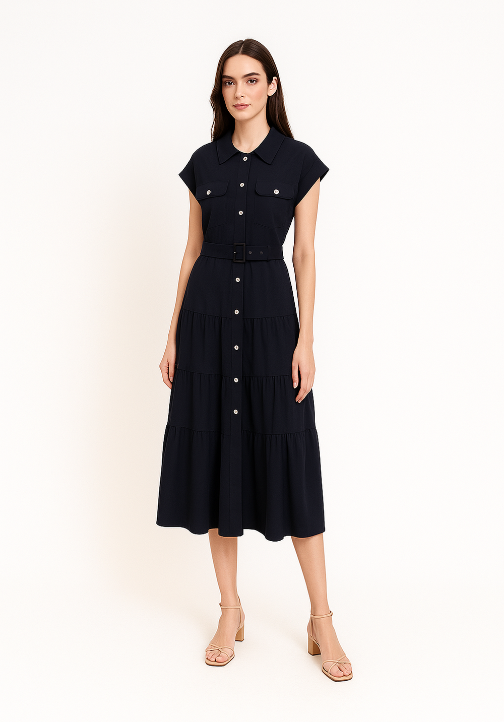 MARIN et beau. Belted Cap Sleeve Shirts Dress