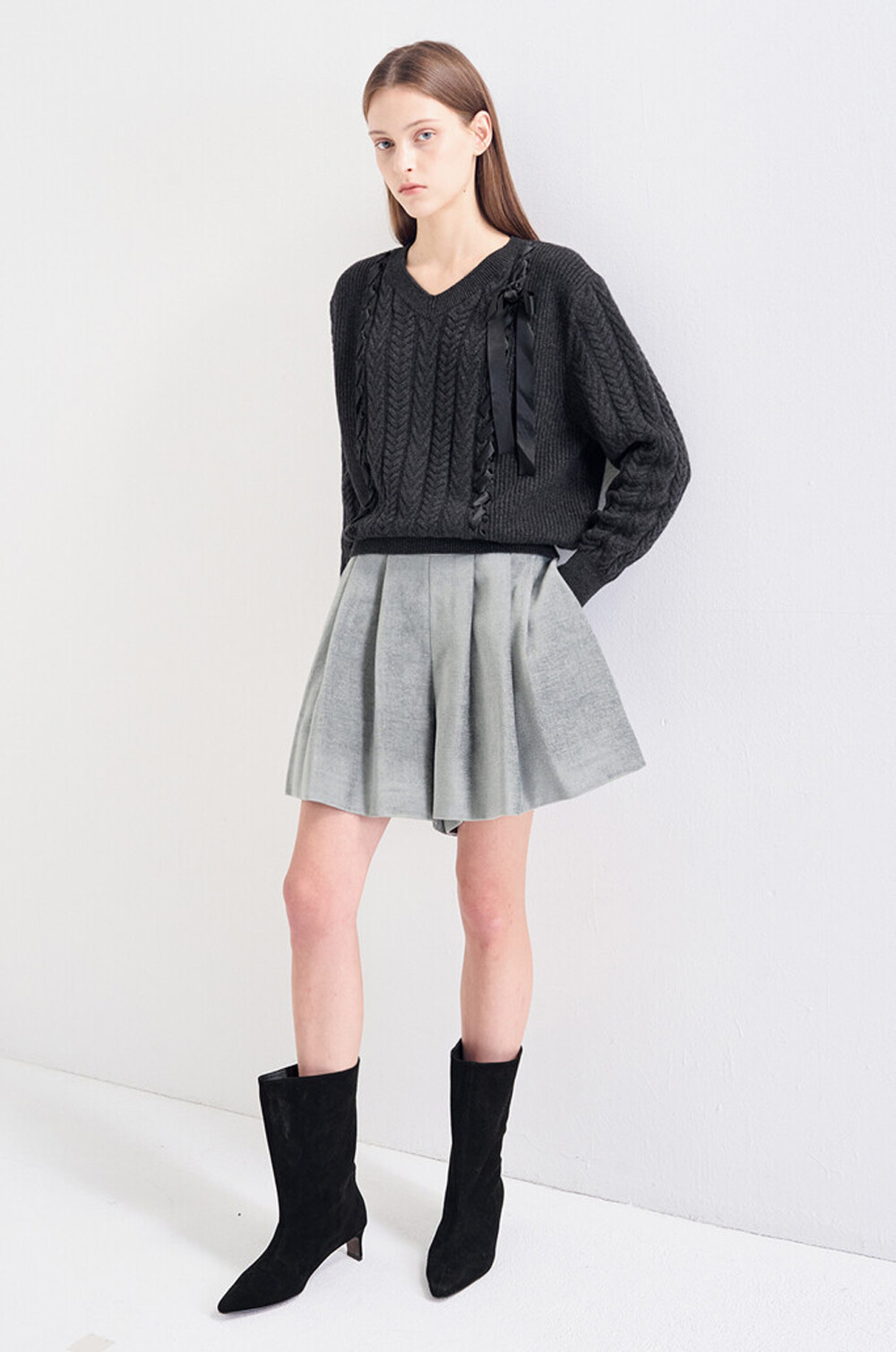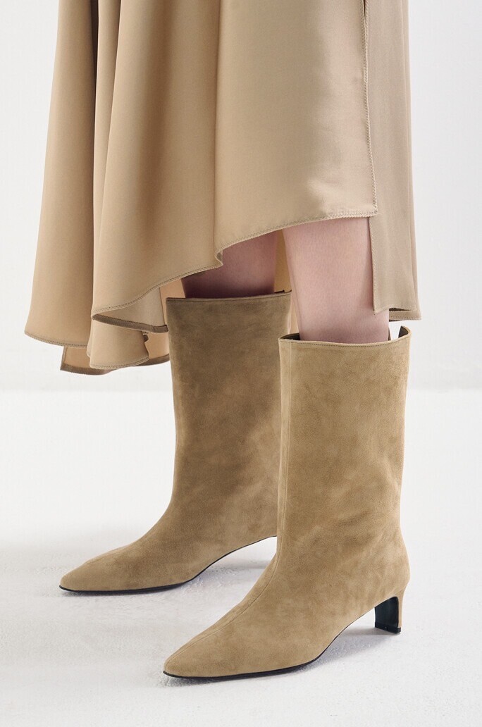 염소가죽으로 제작된 미들 부츠는