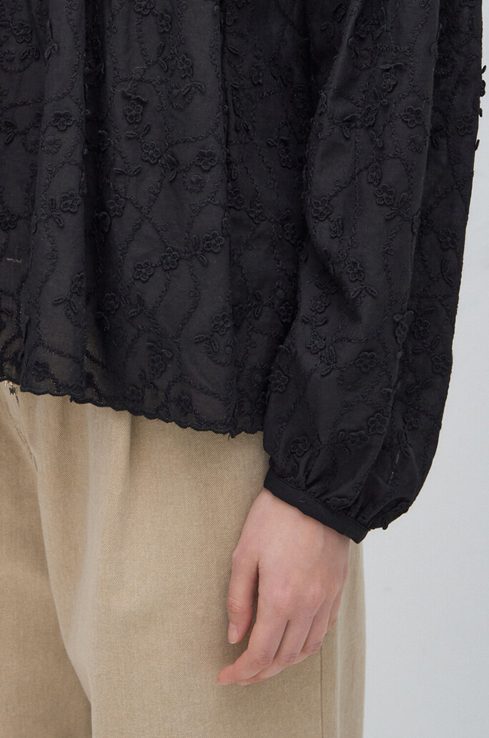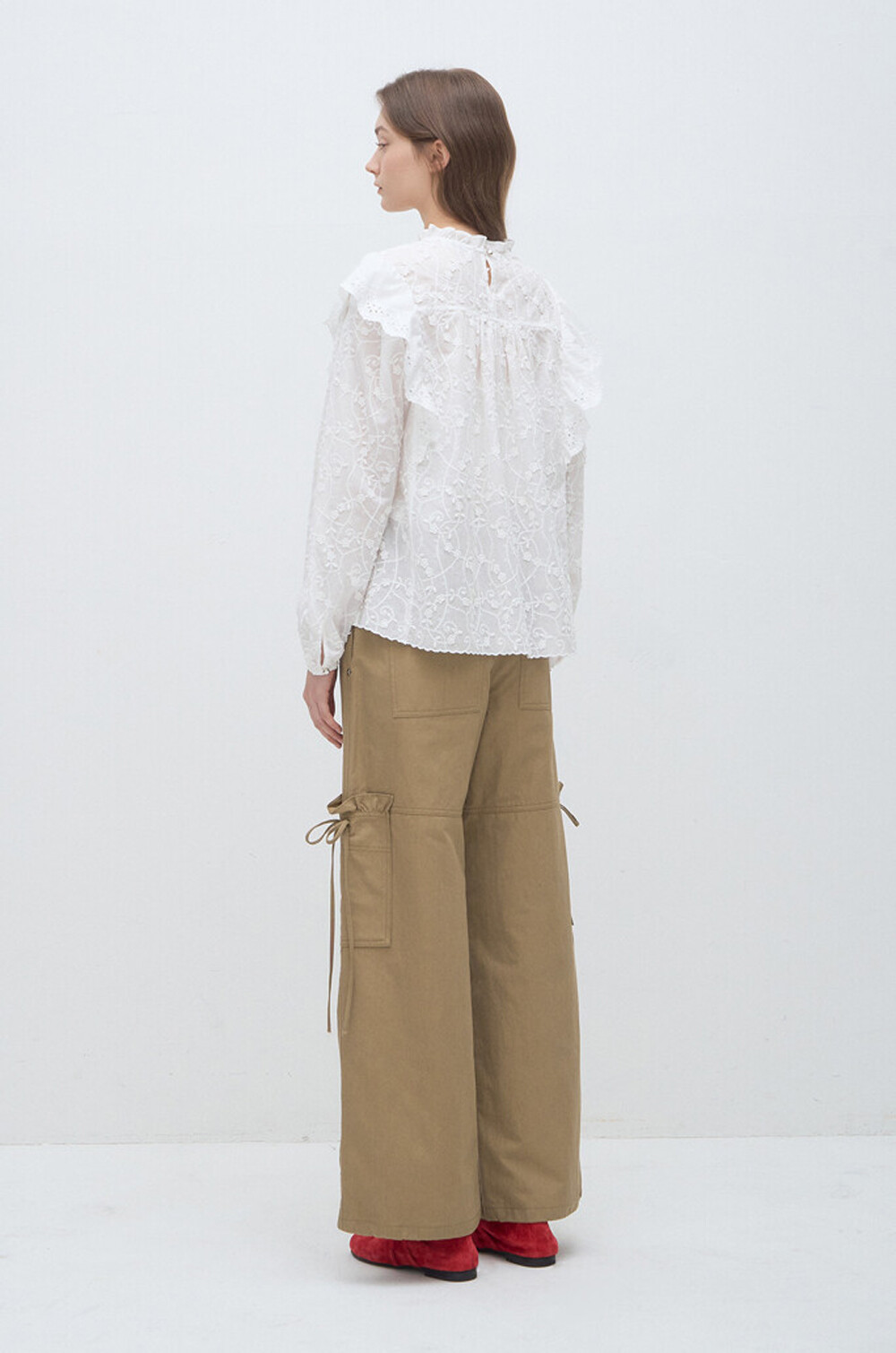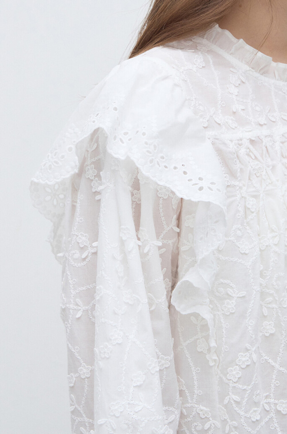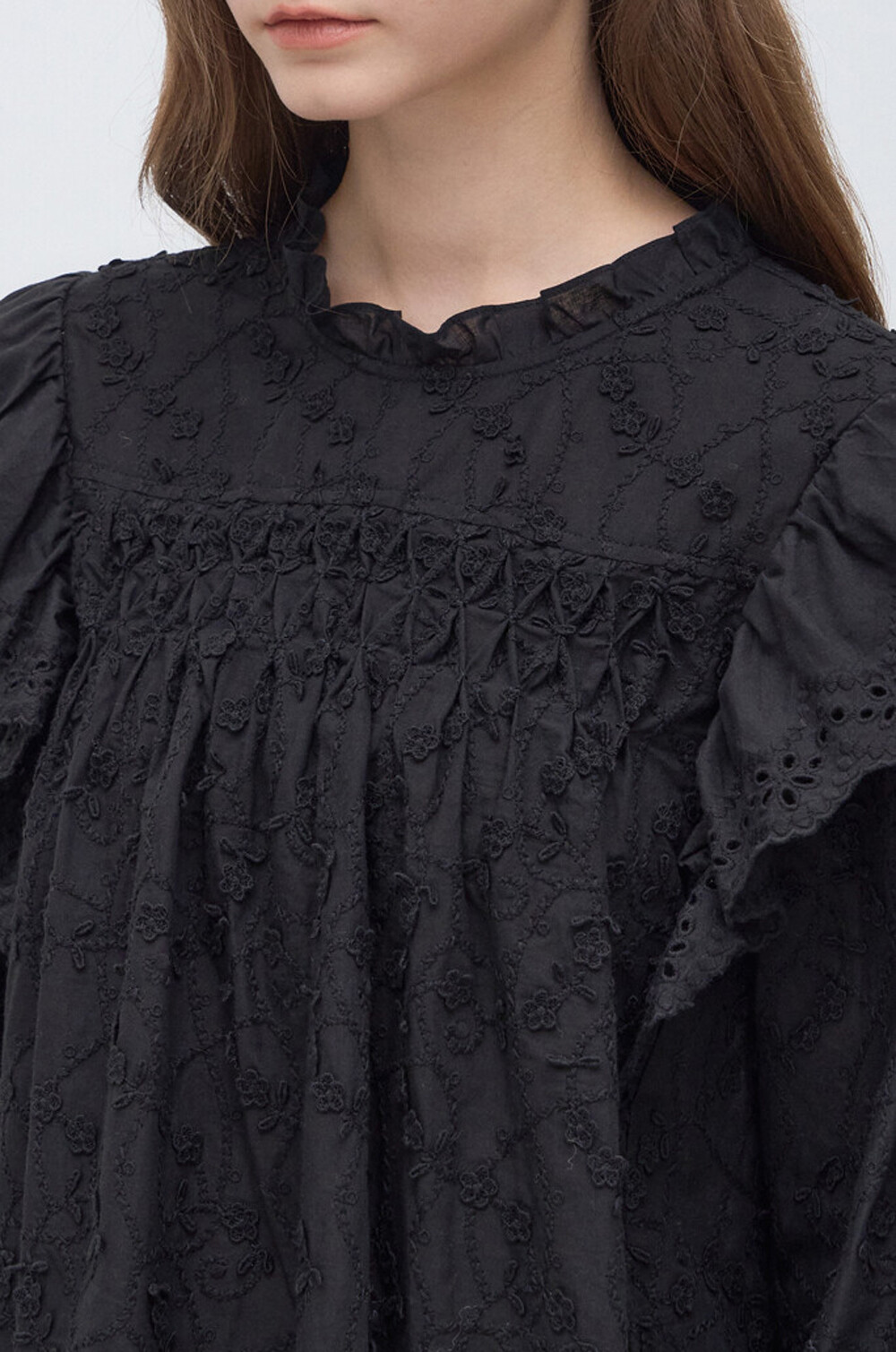 오즈세컨 러플 패널 플로럴 자수 블라우스