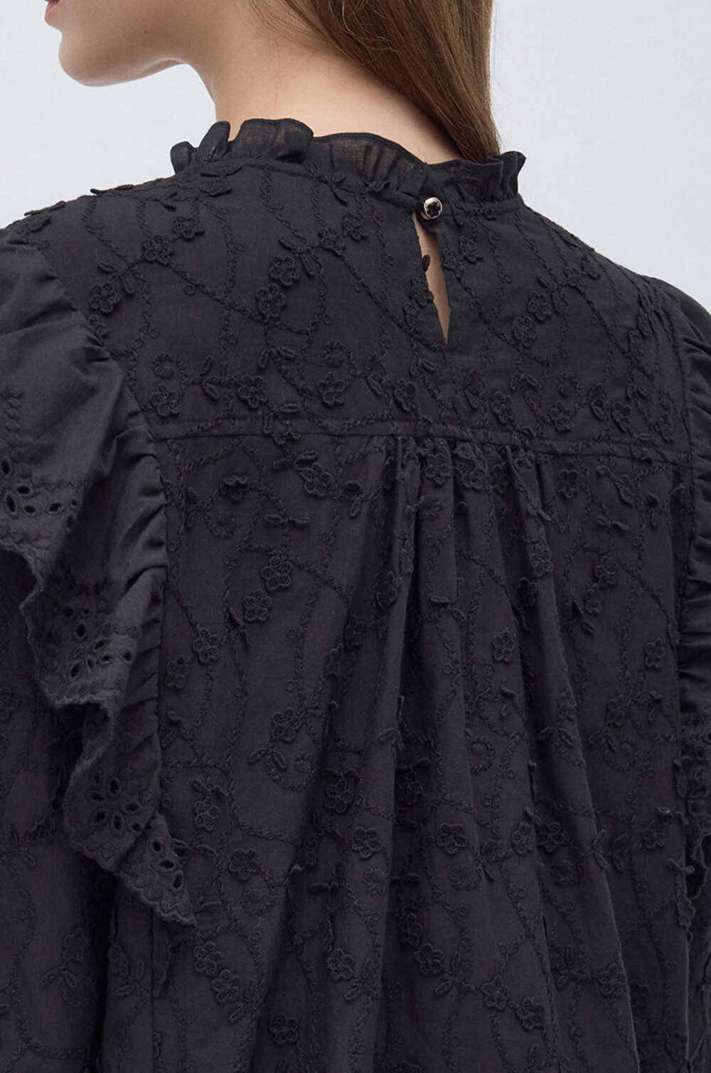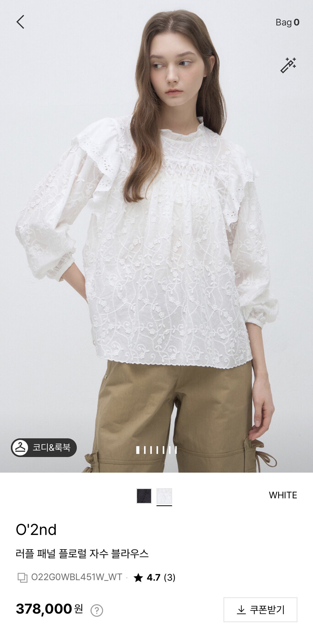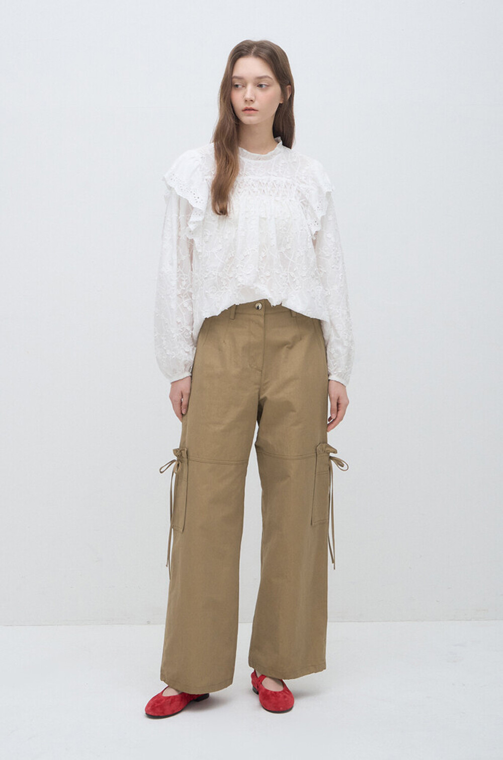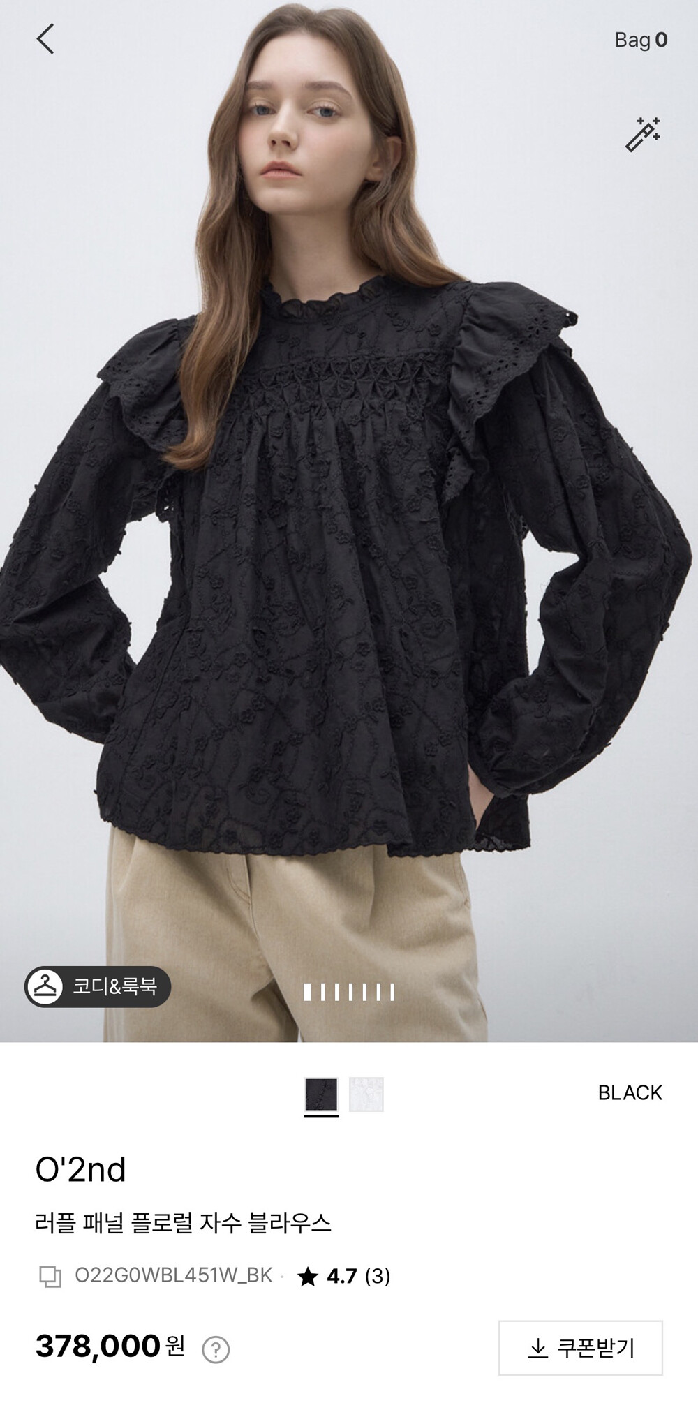 오즈세컨 러플 패널 플로럴 자수 블라우스