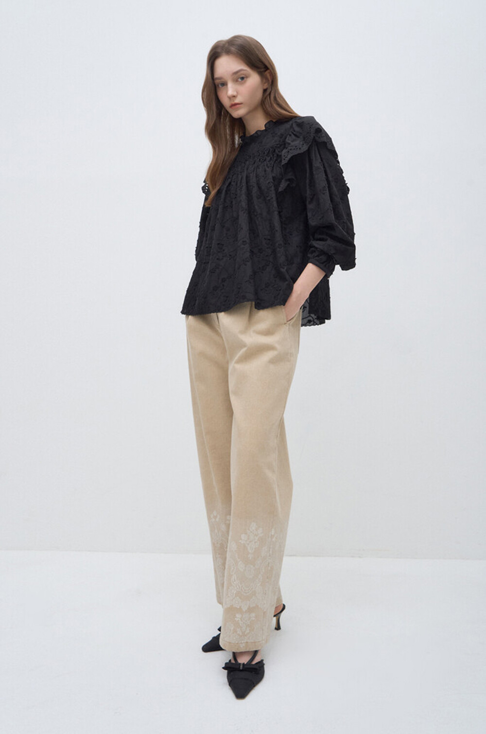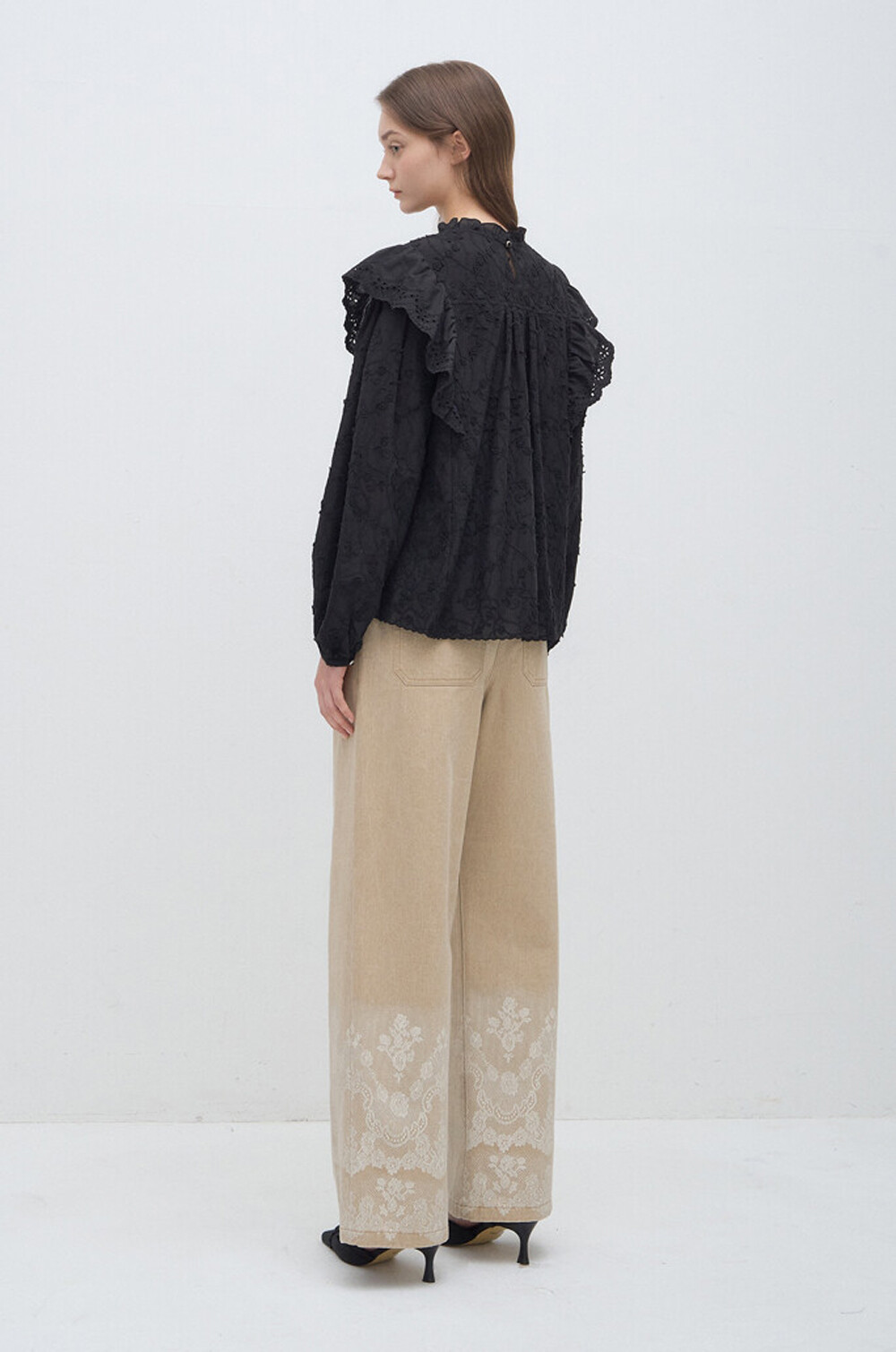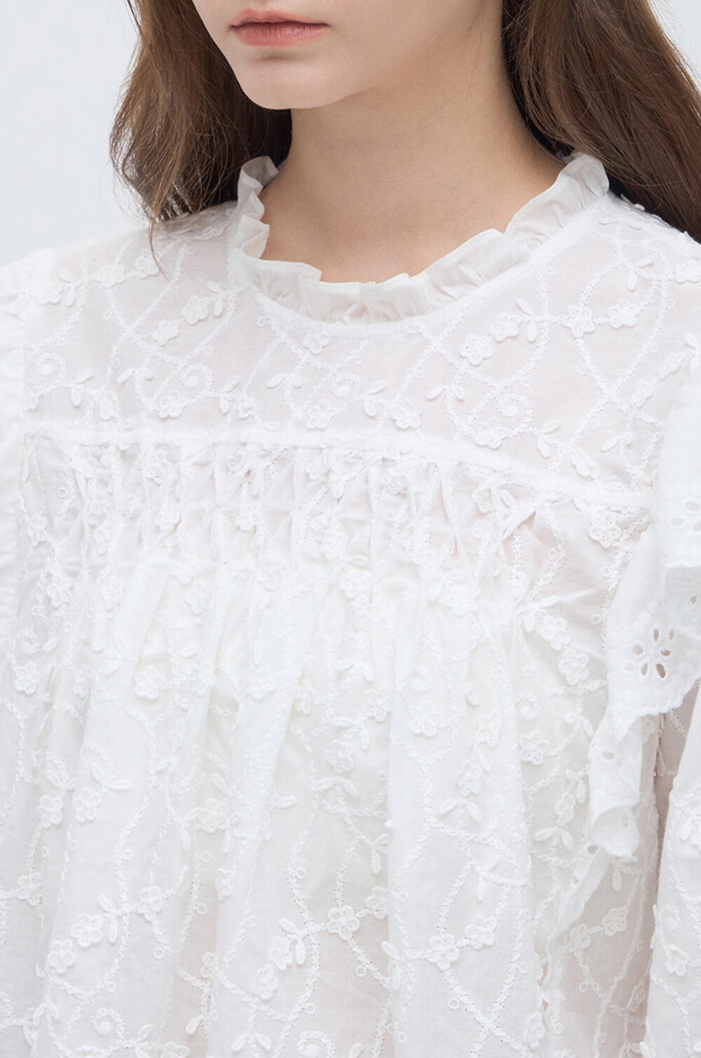 O'2nd. Ruffle Panel Floral Embroidery Blouse