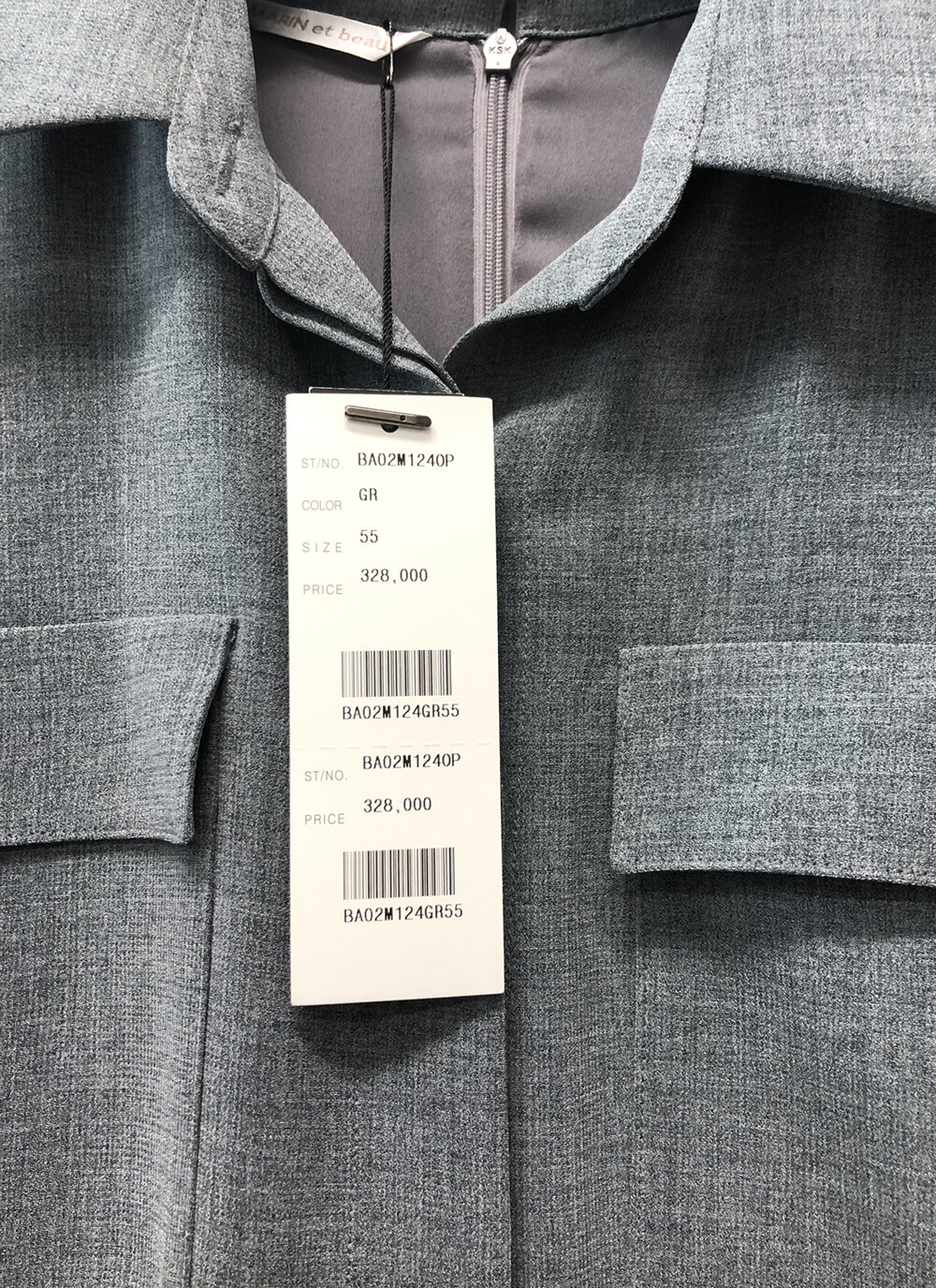 S(55) : 총장 108cm, 어깨단면 36cm, 가슴단면 46cm, 허리단면 38cm, 소매길이 25cm