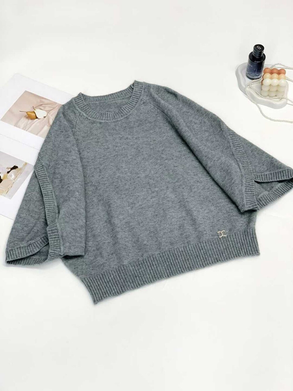 하프 슬리브 니트 탑입니다.