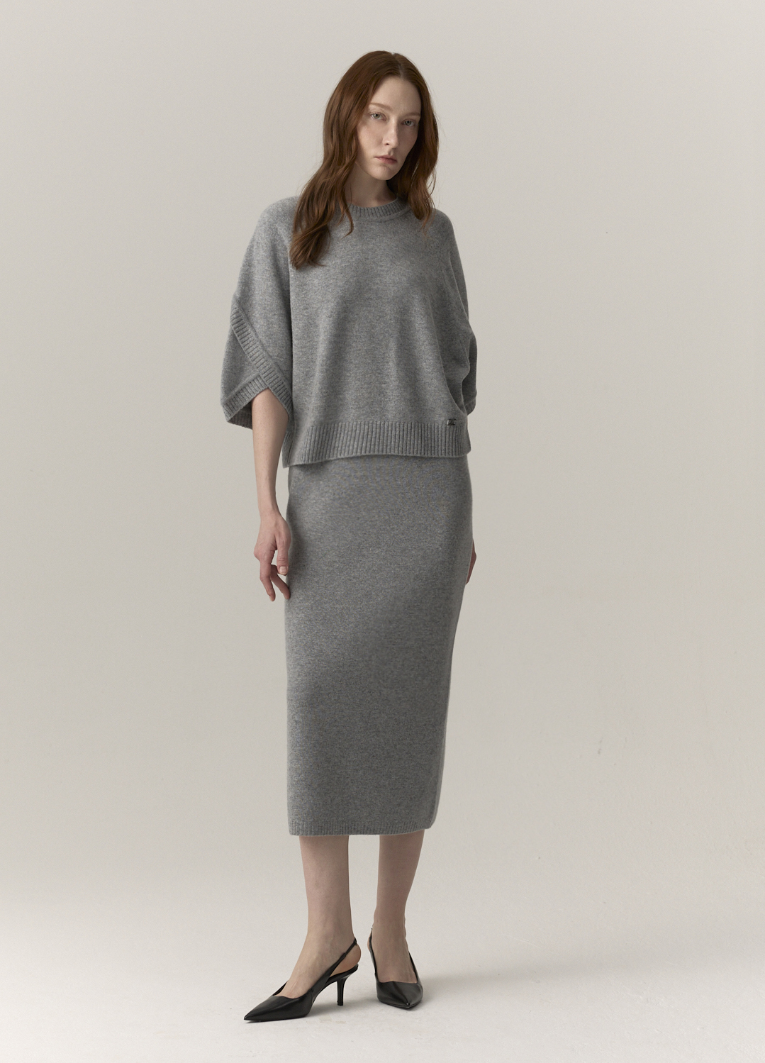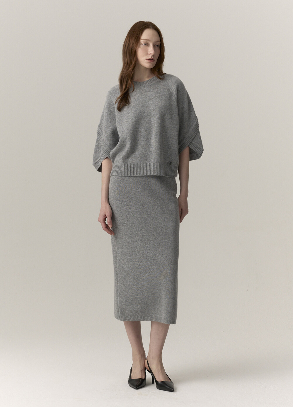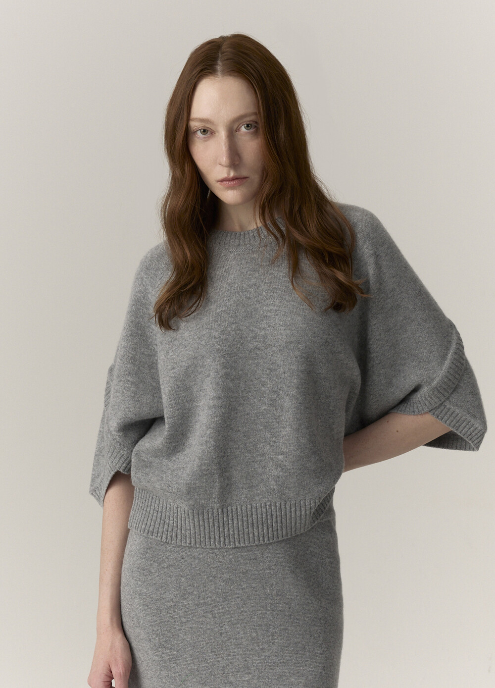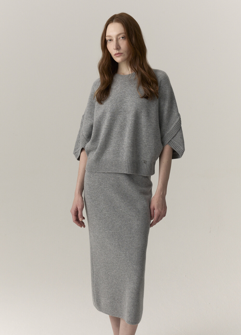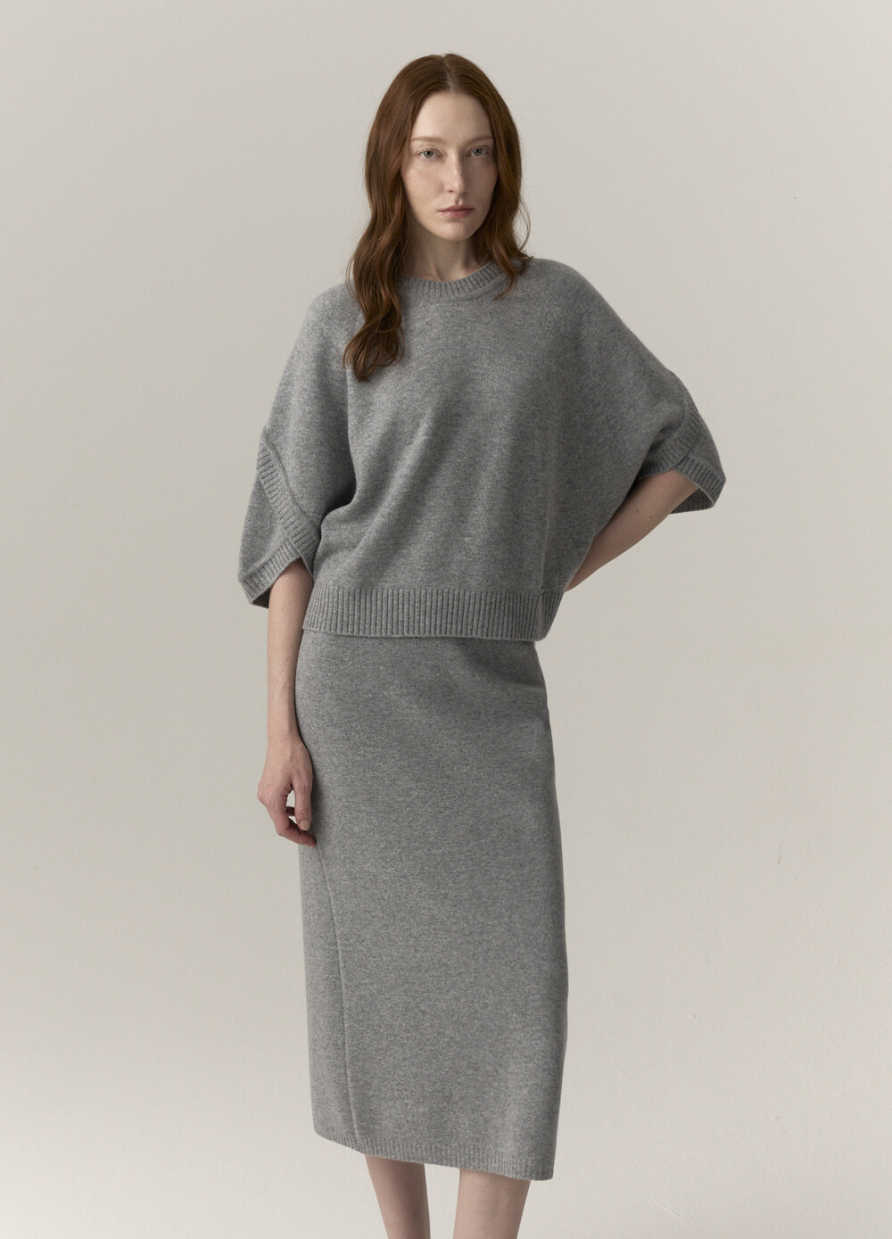 MICHAA. Cashmere Blending Half Sleeve Knit & Skirt