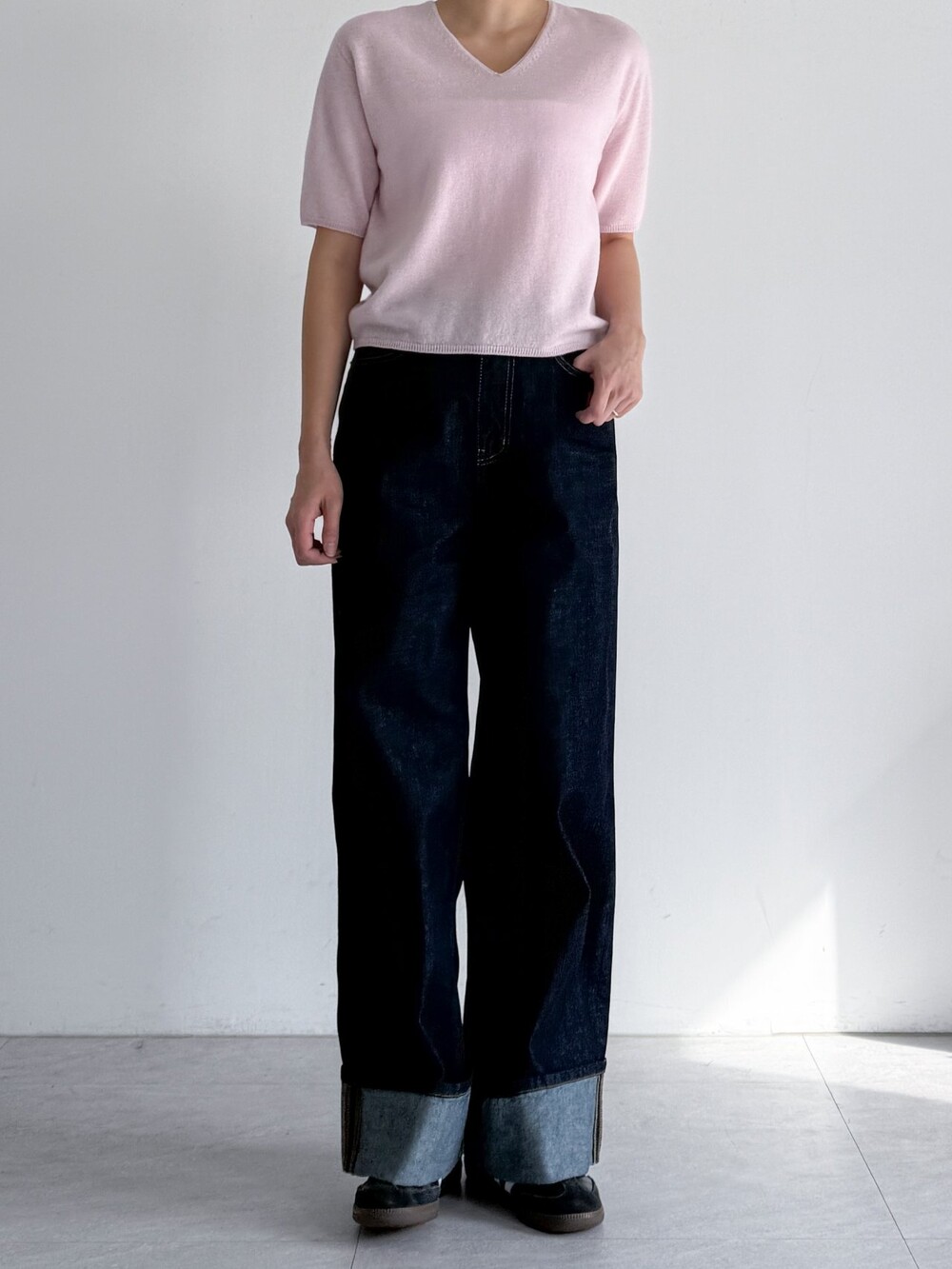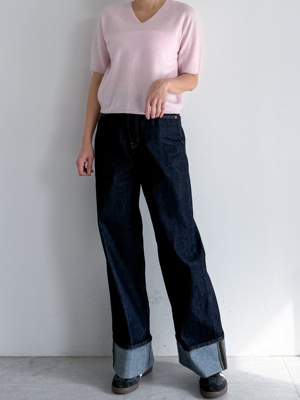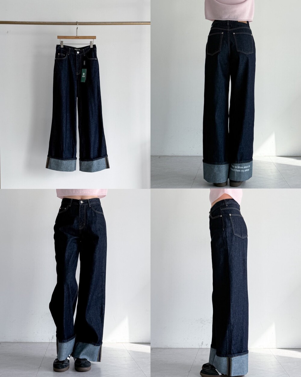 제이코코. 레터링 포인트 와이드 데님 팬츠