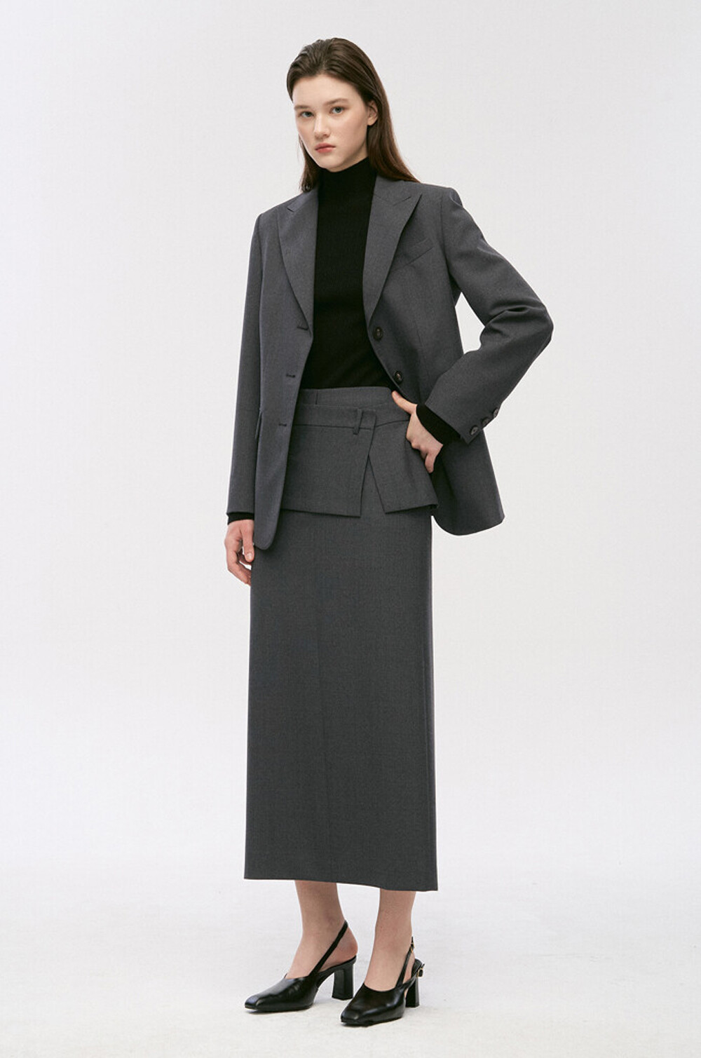 - 양옆에 플랩 포켓과 가슴 한쪽의 웰트 포켓