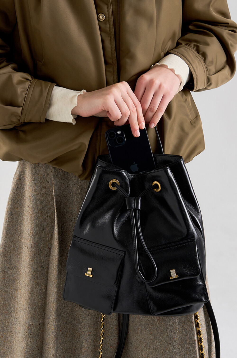 드로우스트링과 플랩 포켓을 더해