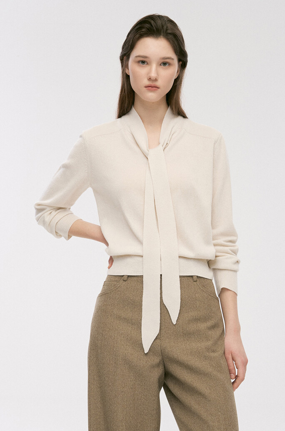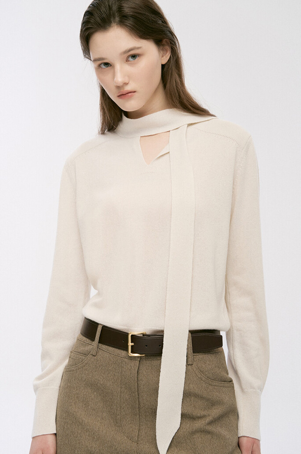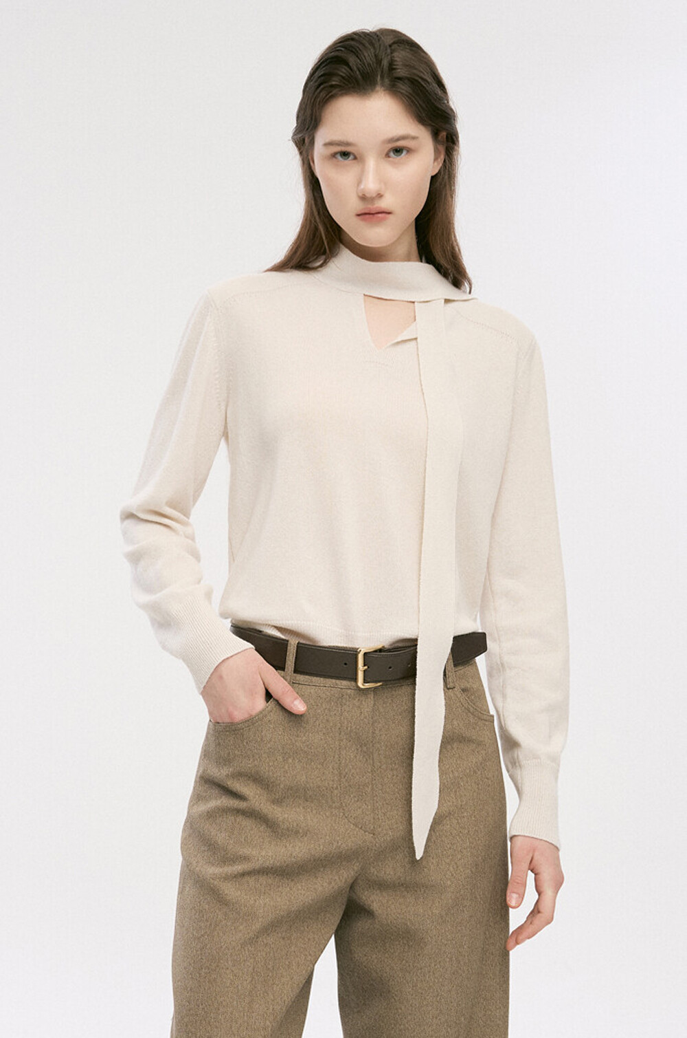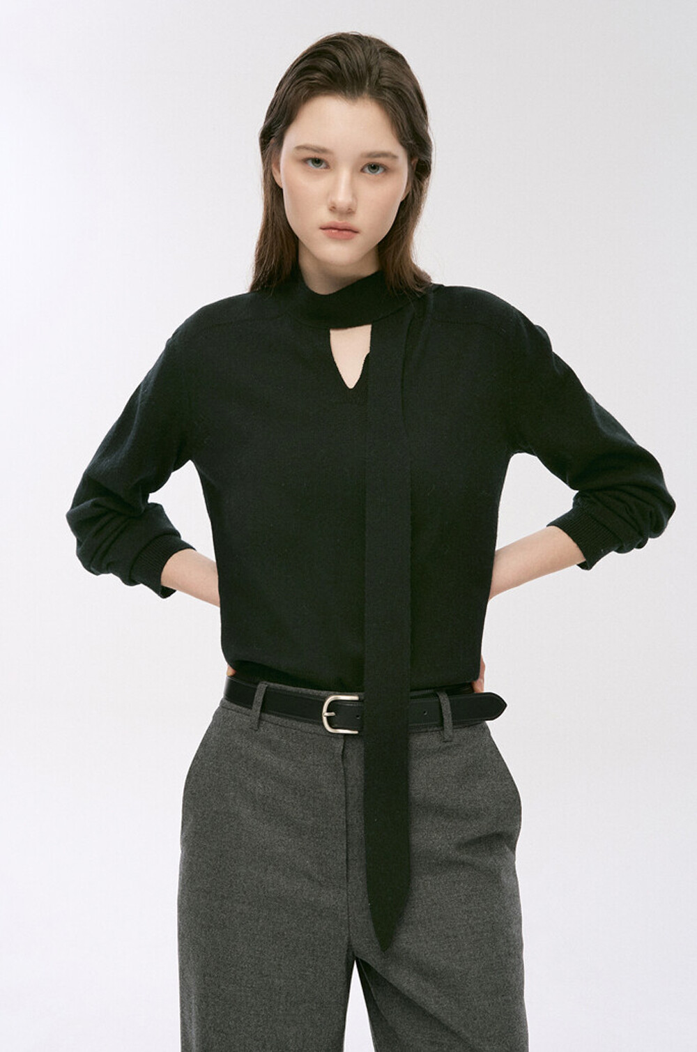 타임 캐시미어 블렌드 타이넥 니트 탑